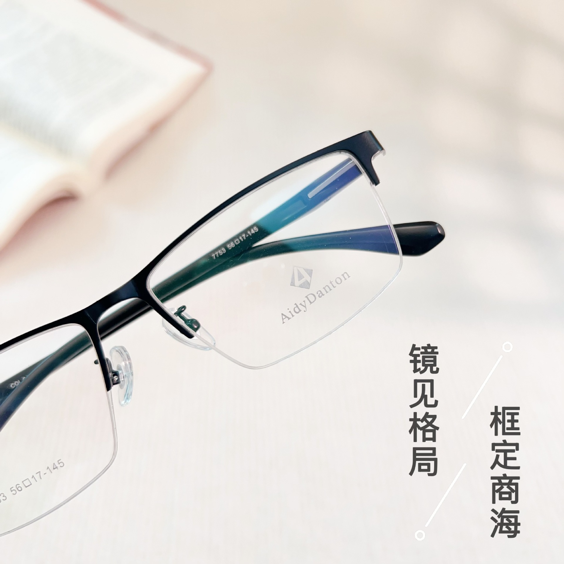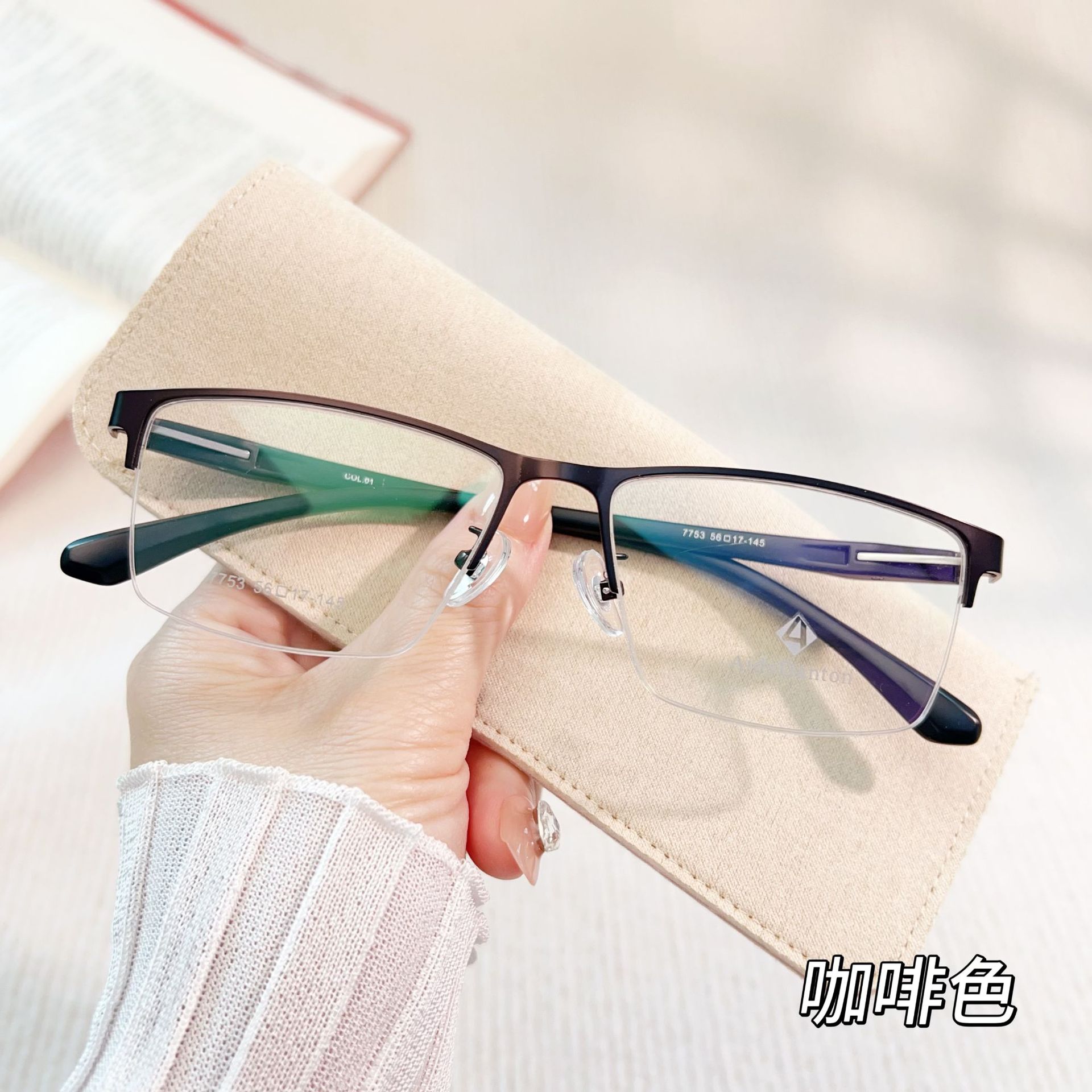 丹阳工厂钢皮眼镜框架跨境7753超韧塑钢腿金属商务休闲半框眼镜男