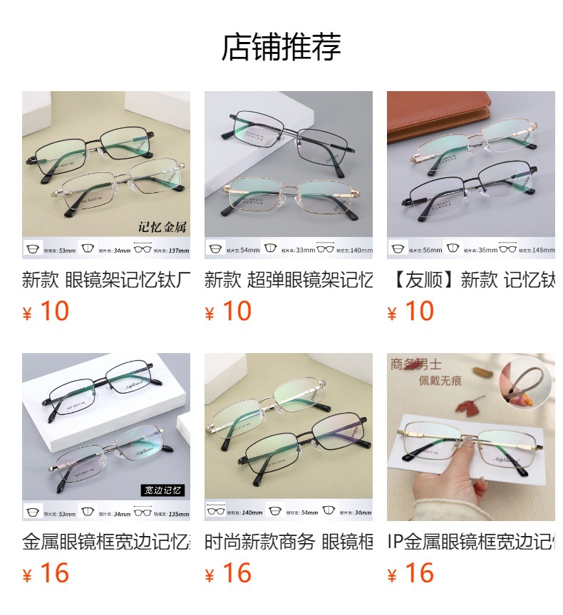 友顺超弹记忆钛镜框批发668全框光学近视眼镜男金属中号方框眼镜