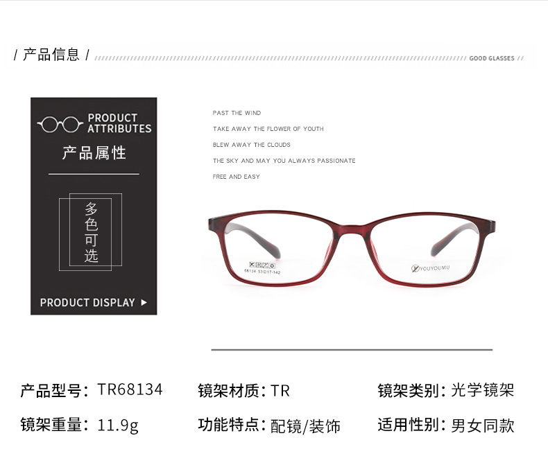 方框中号近视眼镜女全框tr镜框男批发68134丹阳超轻tr90眼镜架