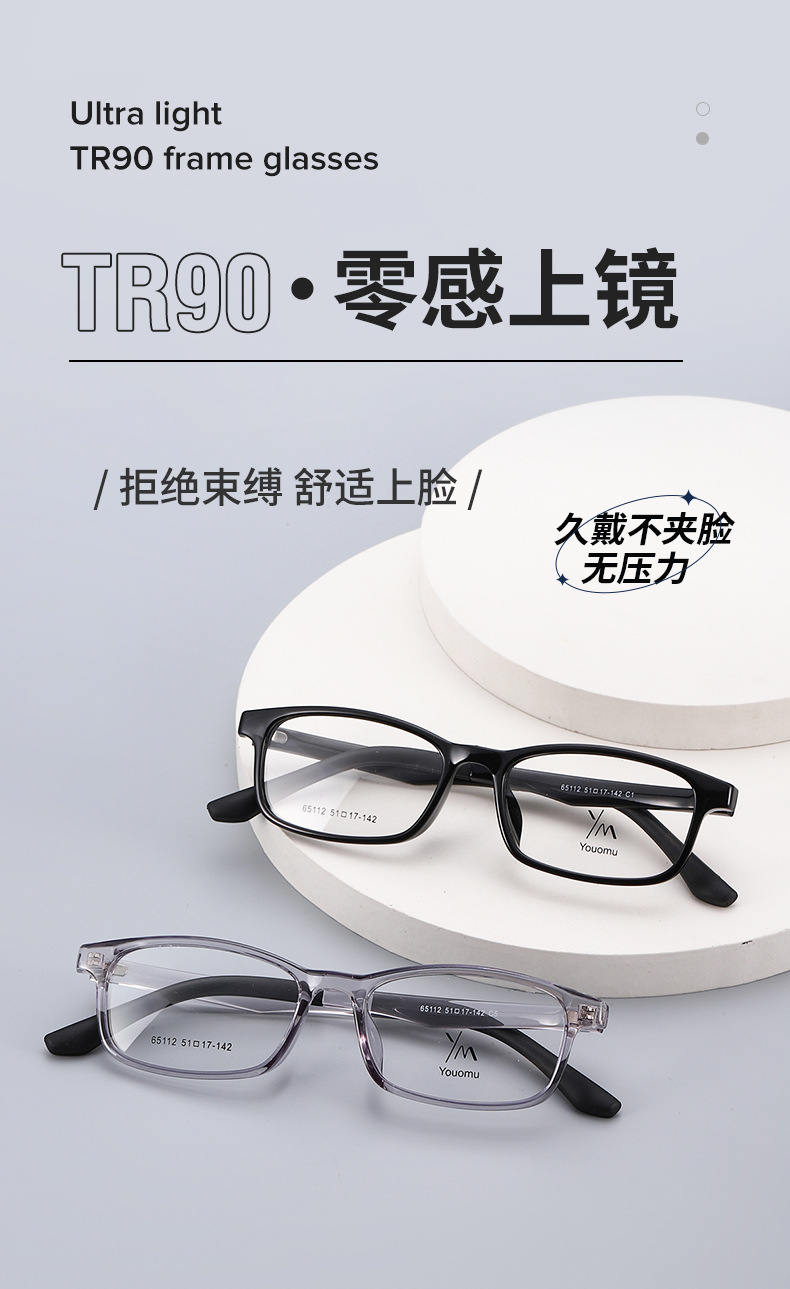 金属铰链TR90批发65112男女同款中号方形近视镜架丹阳tr镜框