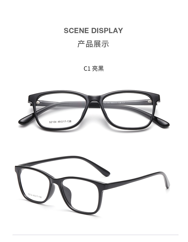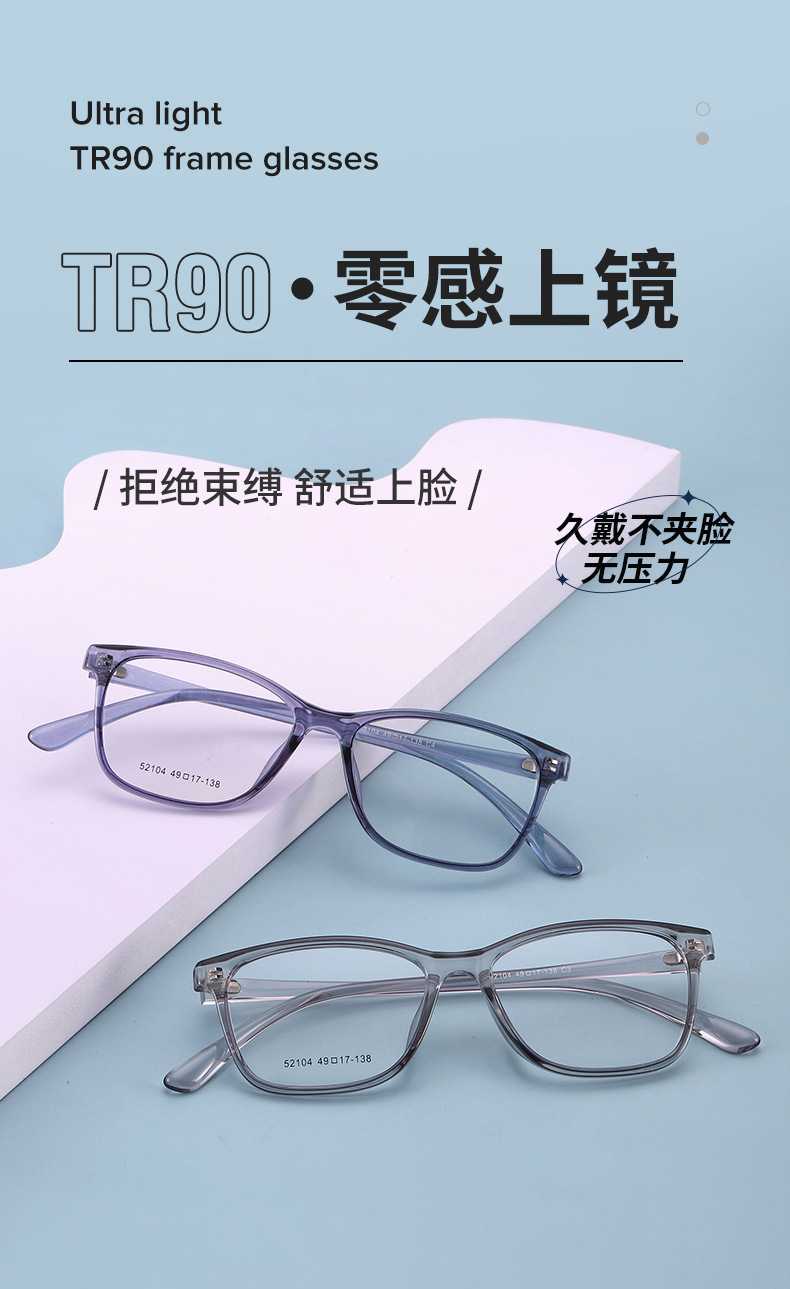 丹阳方形近视眼镜tr男女款小号52104全框架眼镜 TR90镜架金属铰链