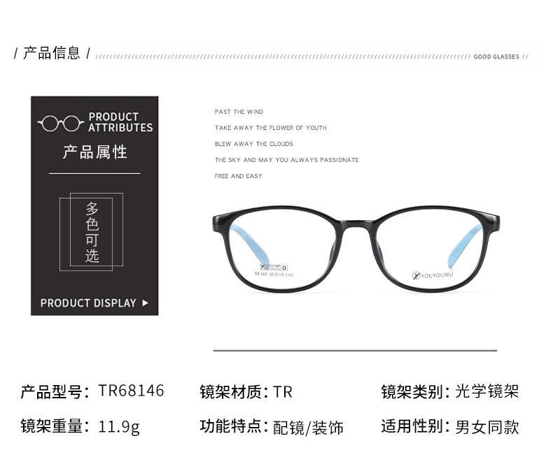 丹阳tr90近视眼镜批发68146男女士小脸全框架眼镜 友顺眼镜架TR