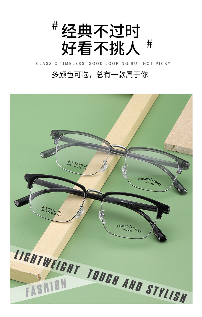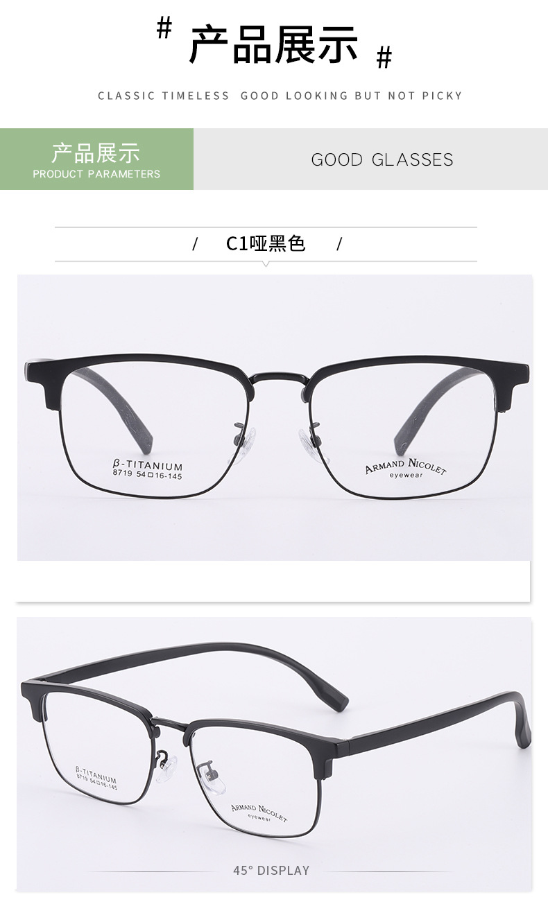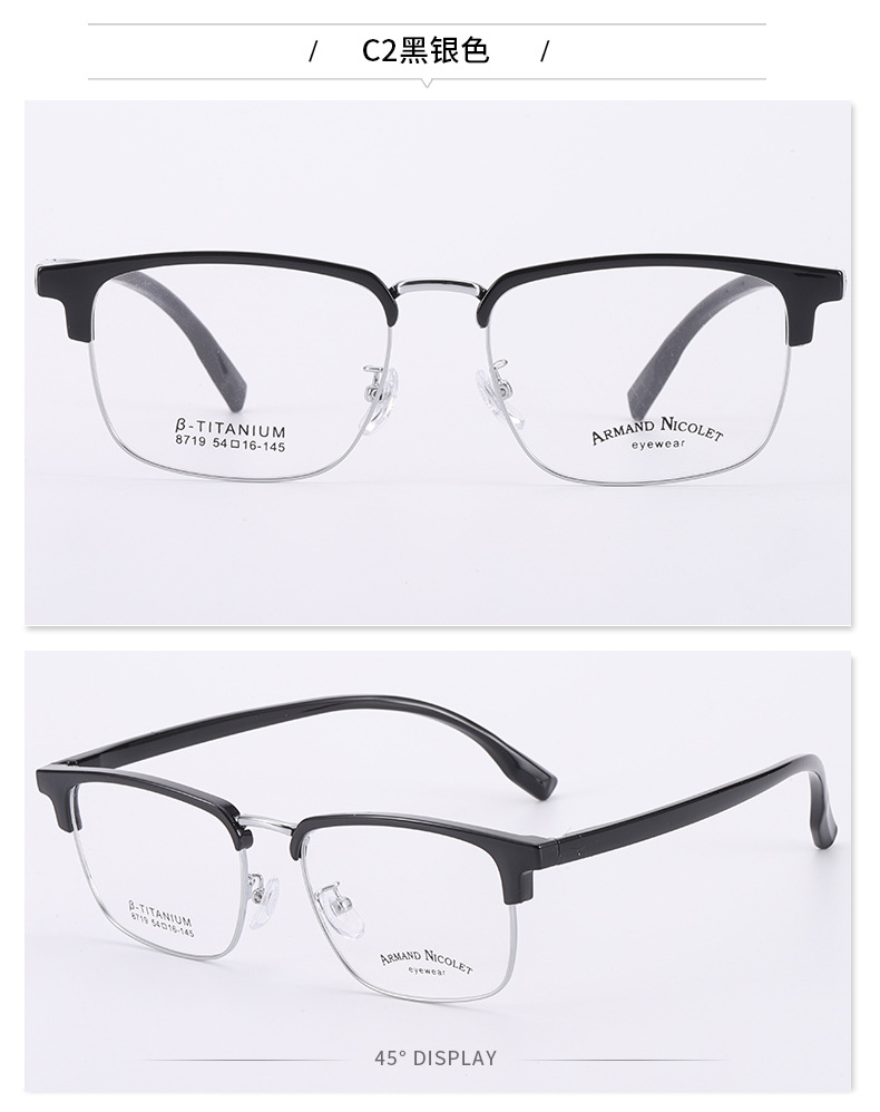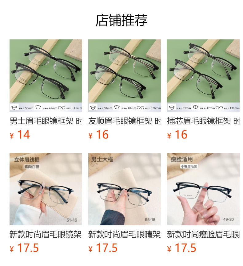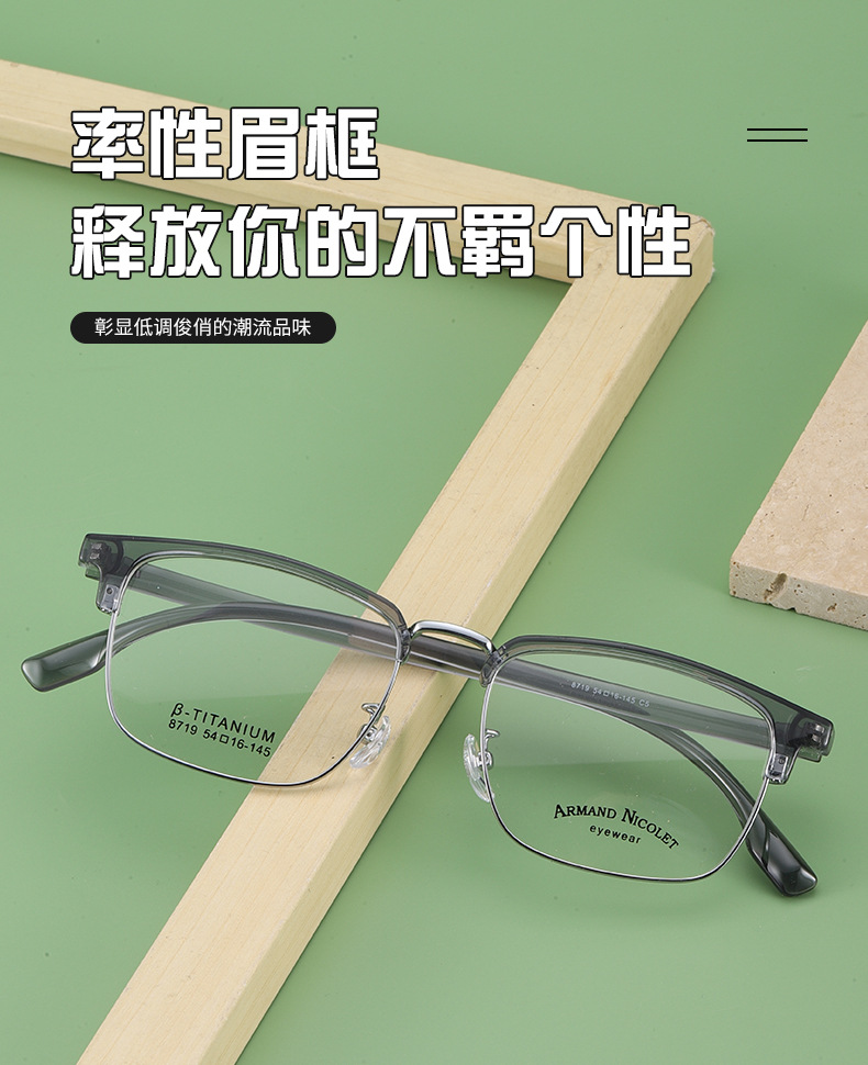 男女眉毛眼镜框架时尚小红书同款8719TR90眉线潮款黑框复古眼镜