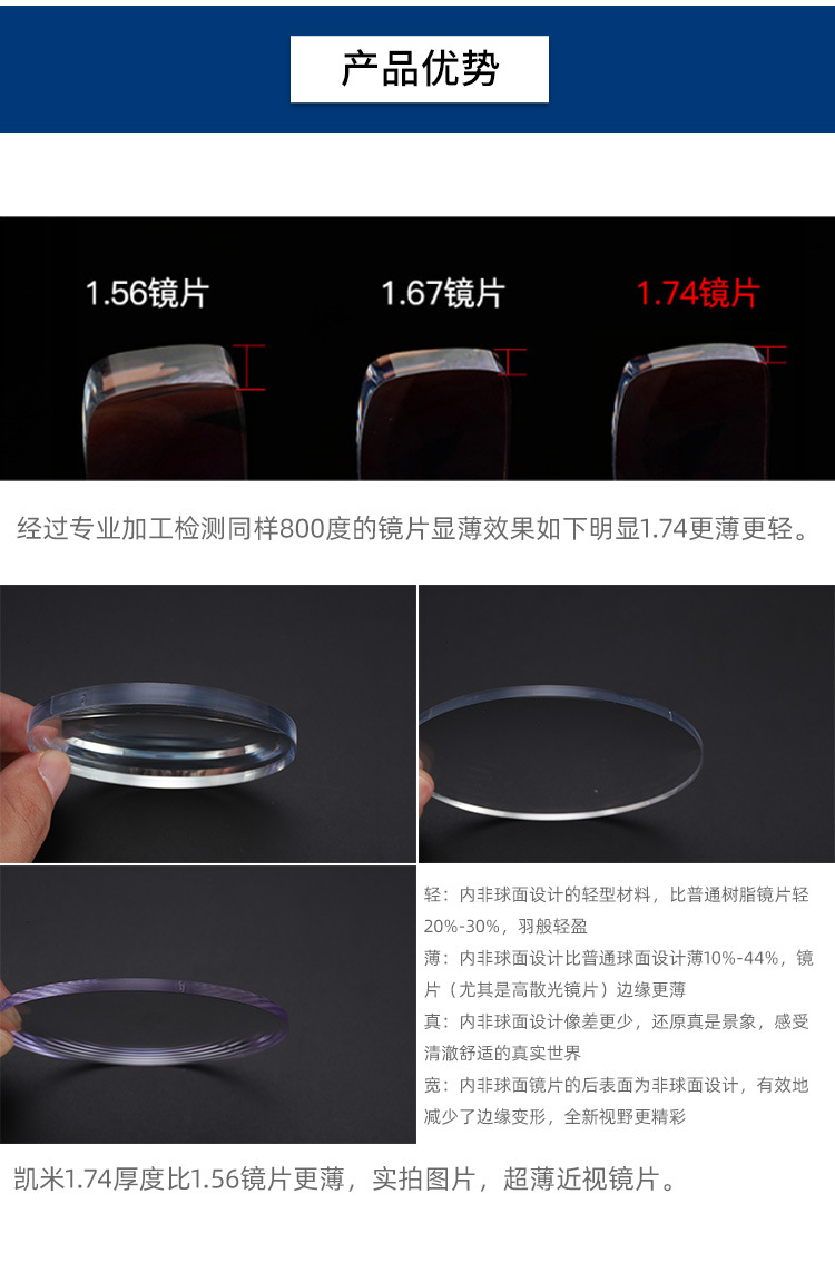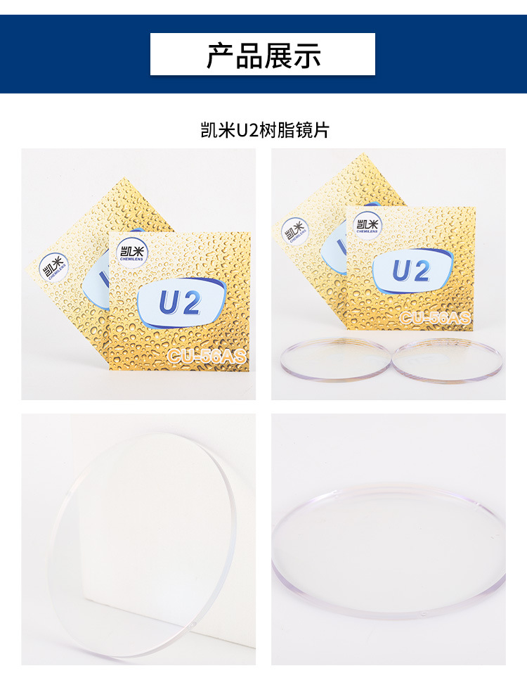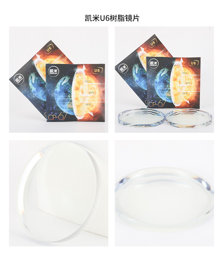 凯米U6眼镜片1.56U21.74高度近视非球面正品可配镜1.60防蓝光镜片