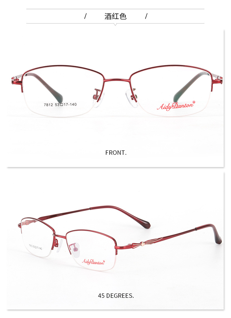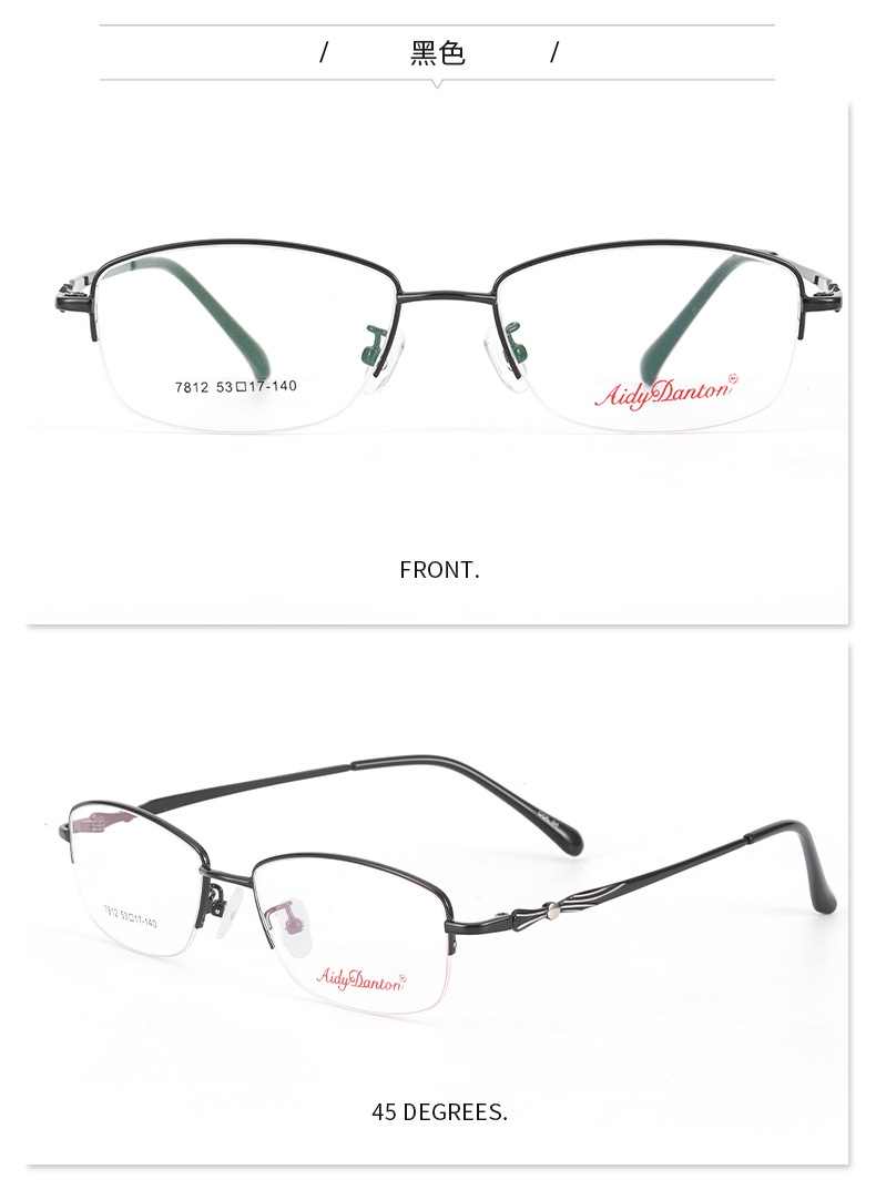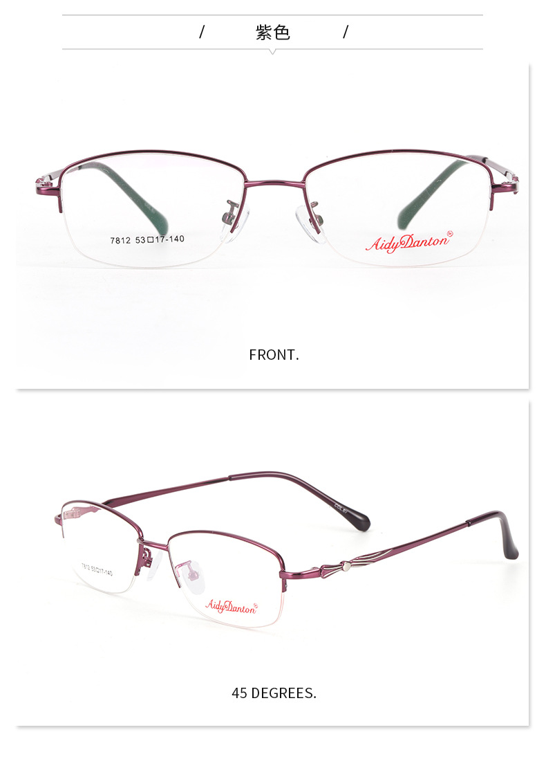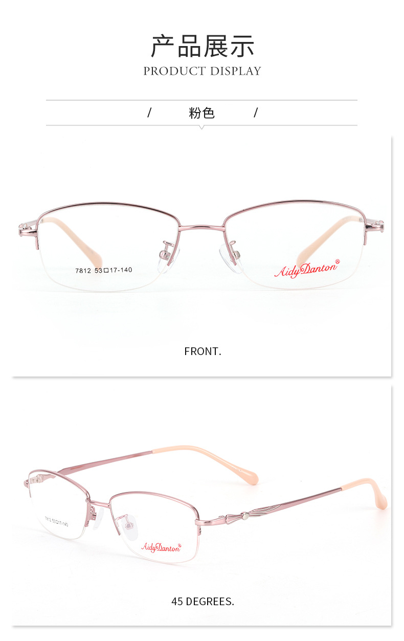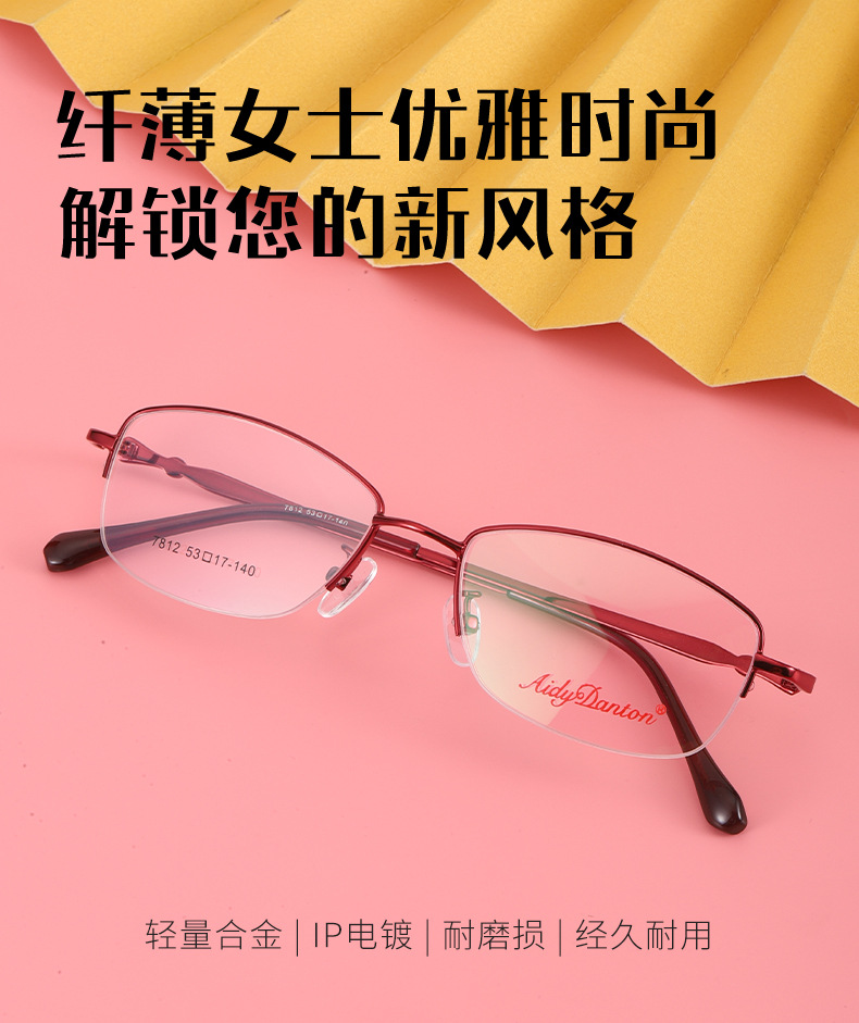 时尚双色新款近视眼镜框7812丹阳厂家批发半框商务女士金属镜架