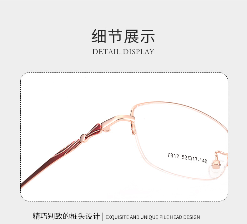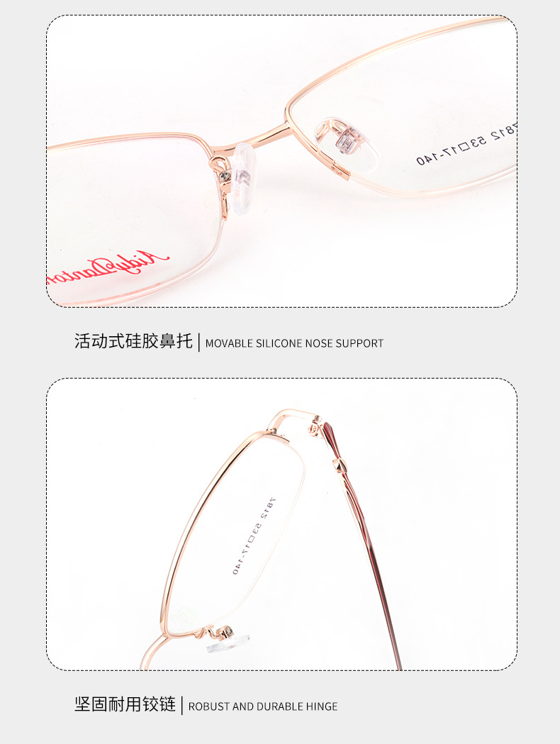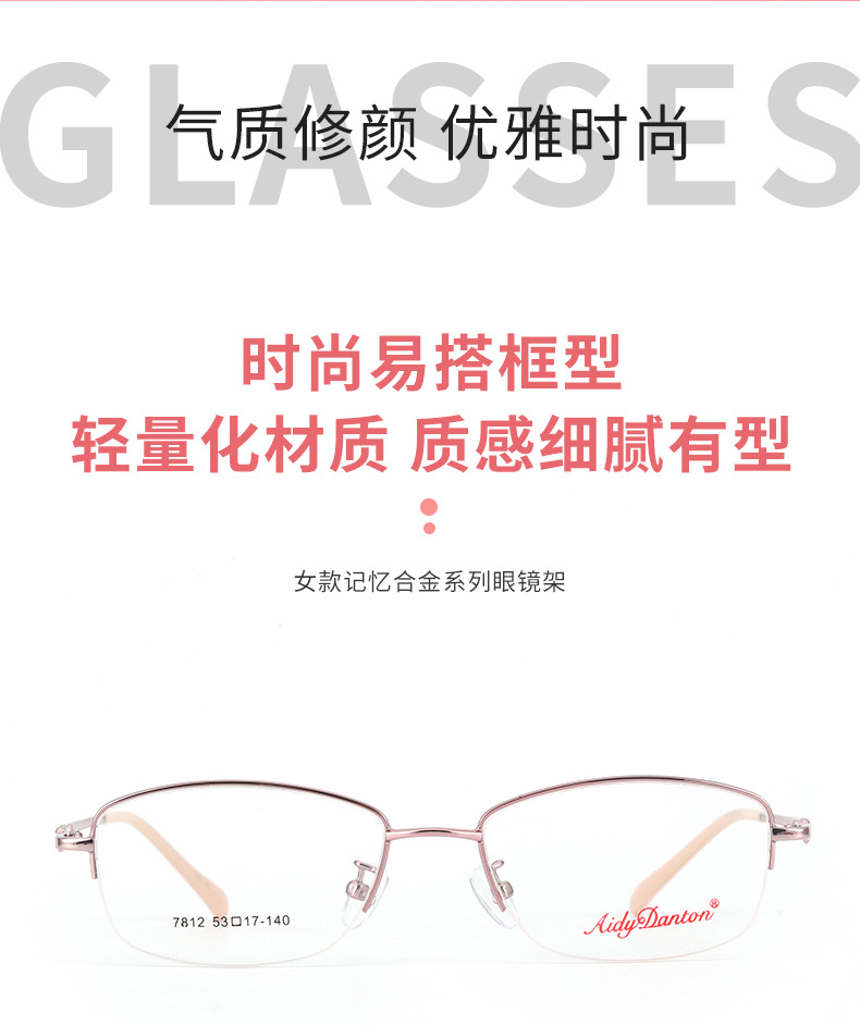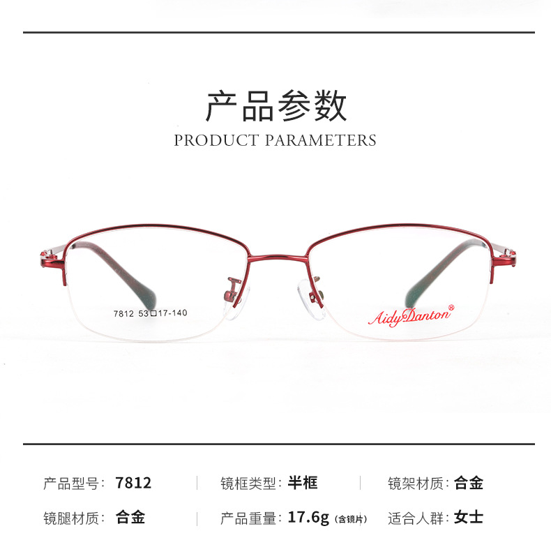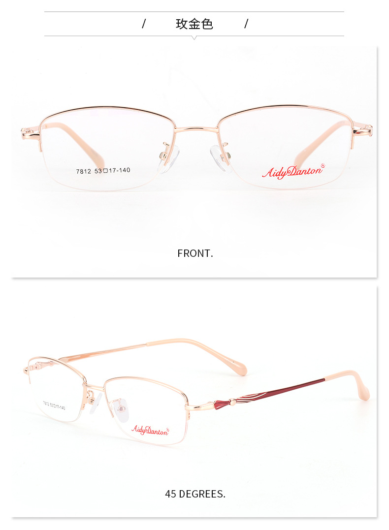 时尚双色新款近视眼镜框7812丹阳厂家批发半框商务女士金属镜架