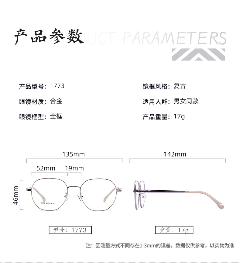超轻复古多边形近视眼镜框文艺潮男女金属眼镜架批发全框素颜眼镜