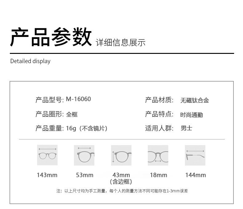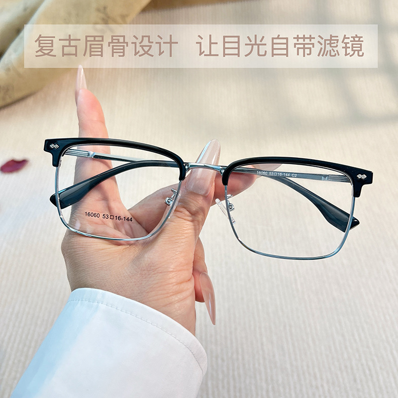 新款无磁钛眼镜架时尚透明眉线框16060小红书潮复古眉毛架眼镜框