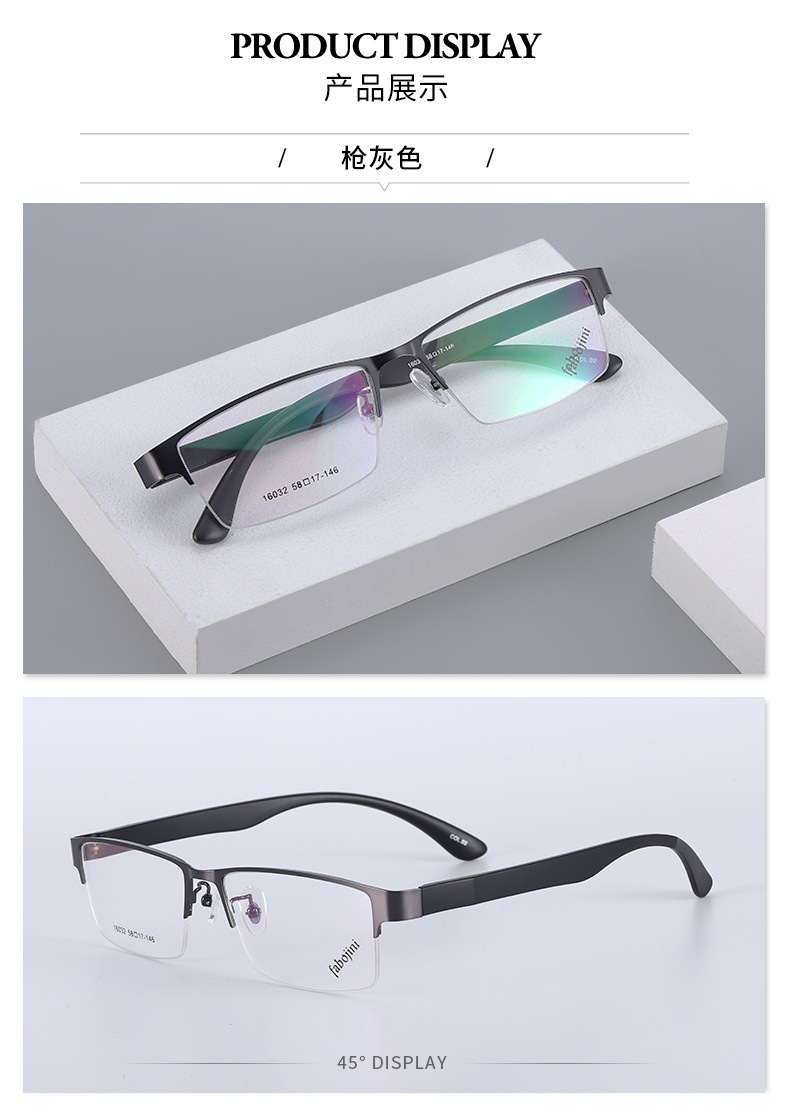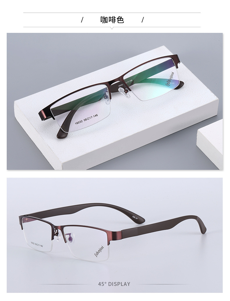 丹阳友顺新款钢板金属合金眼镜架半框男款眼镜16032 近视眼镜框