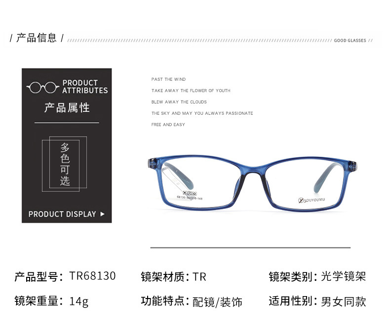常规方框tr90眼镜架批发68130丹阳工厂全框超轻大脸男士镜框