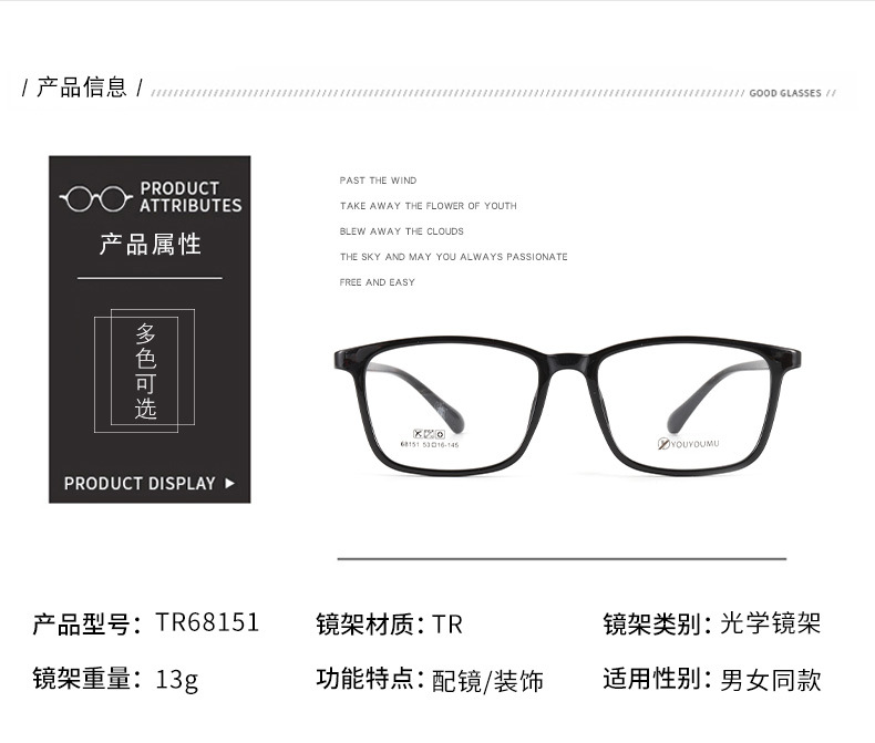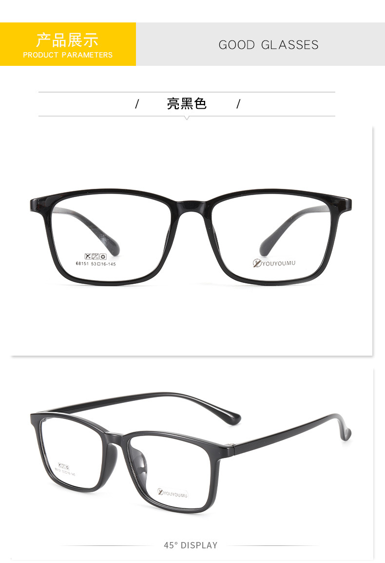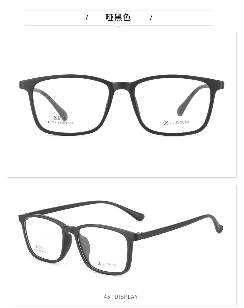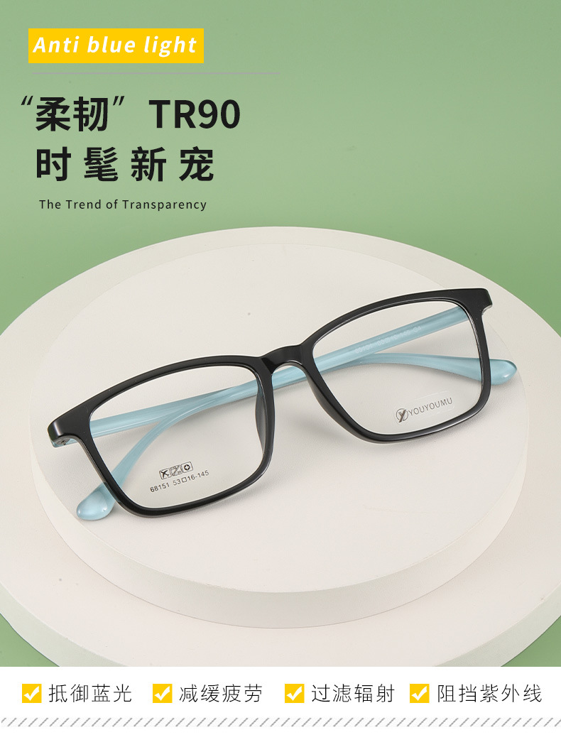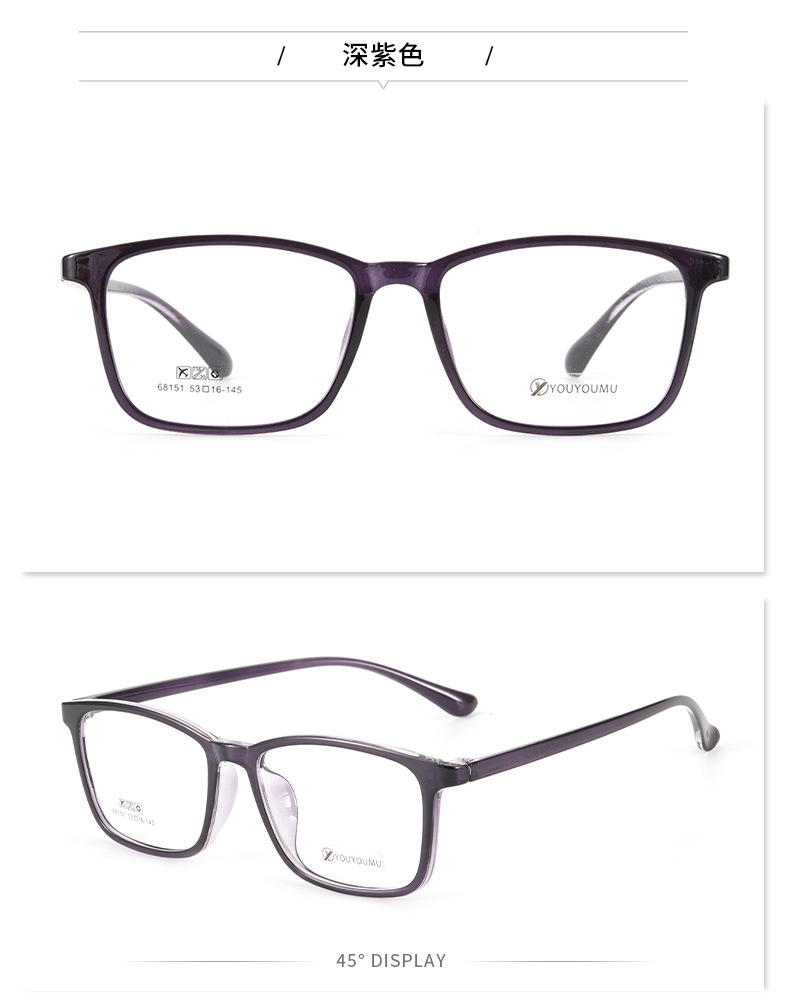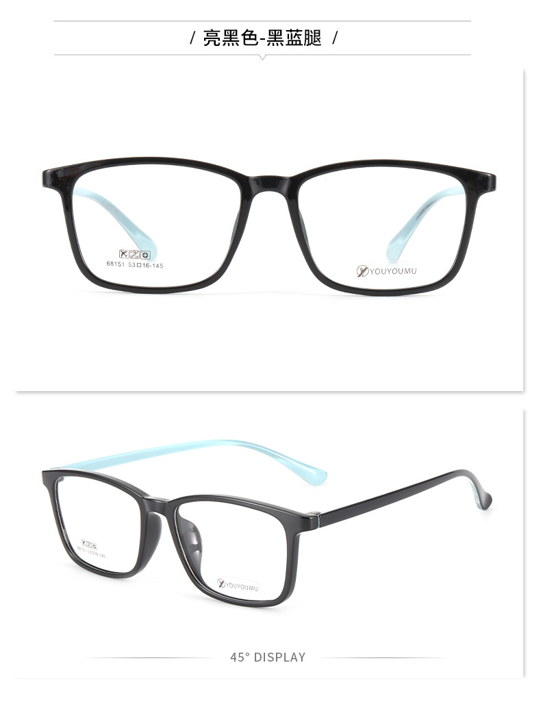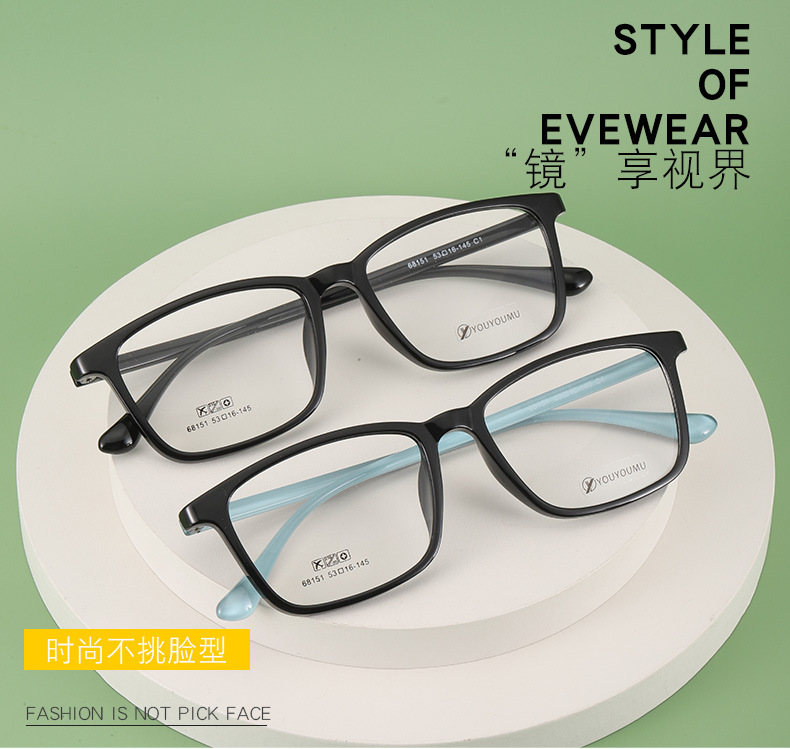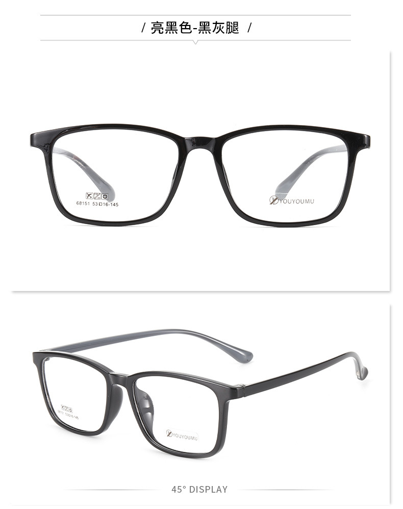 丹阳tr90方框眼镜男近视眼镜女工厂批发68151休闲全框超轻眼镜框