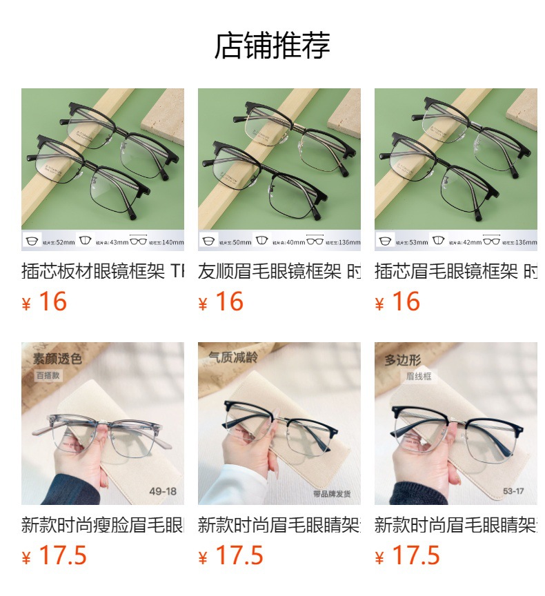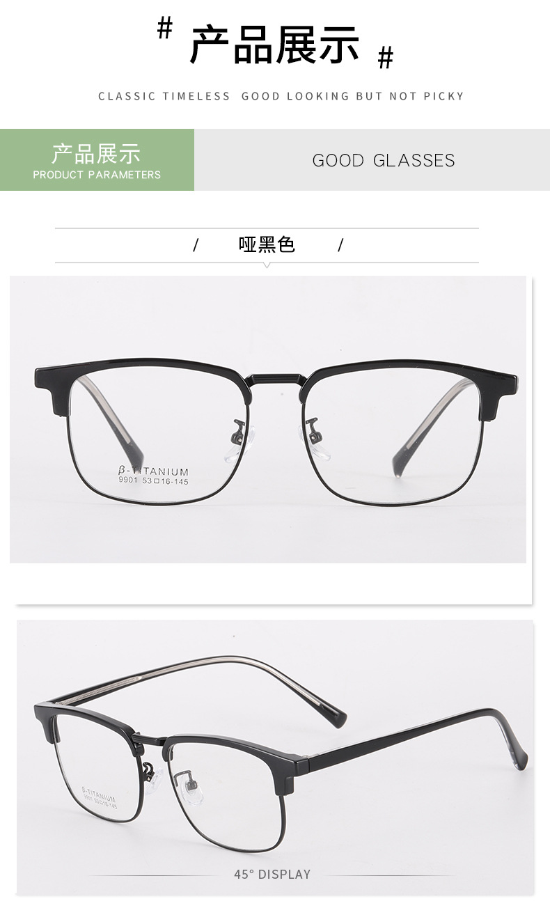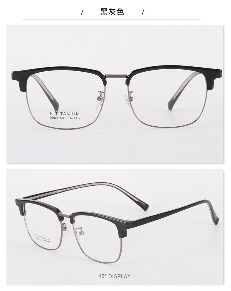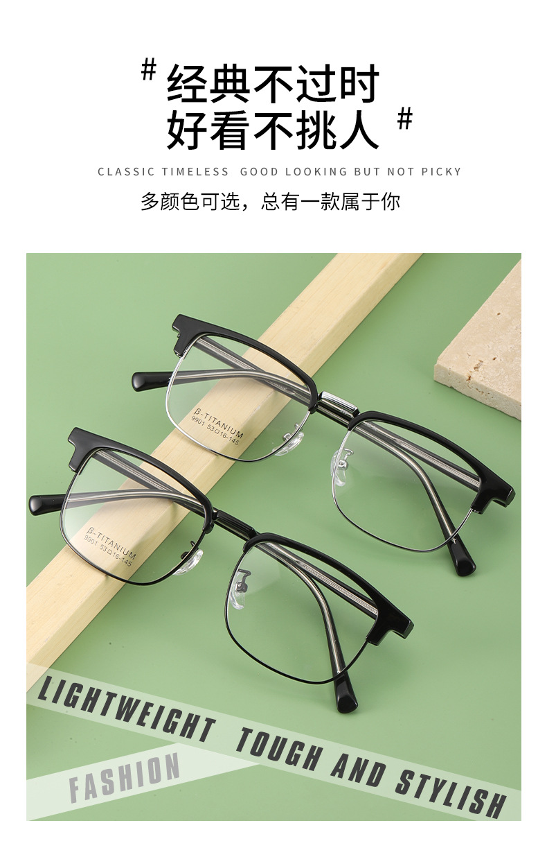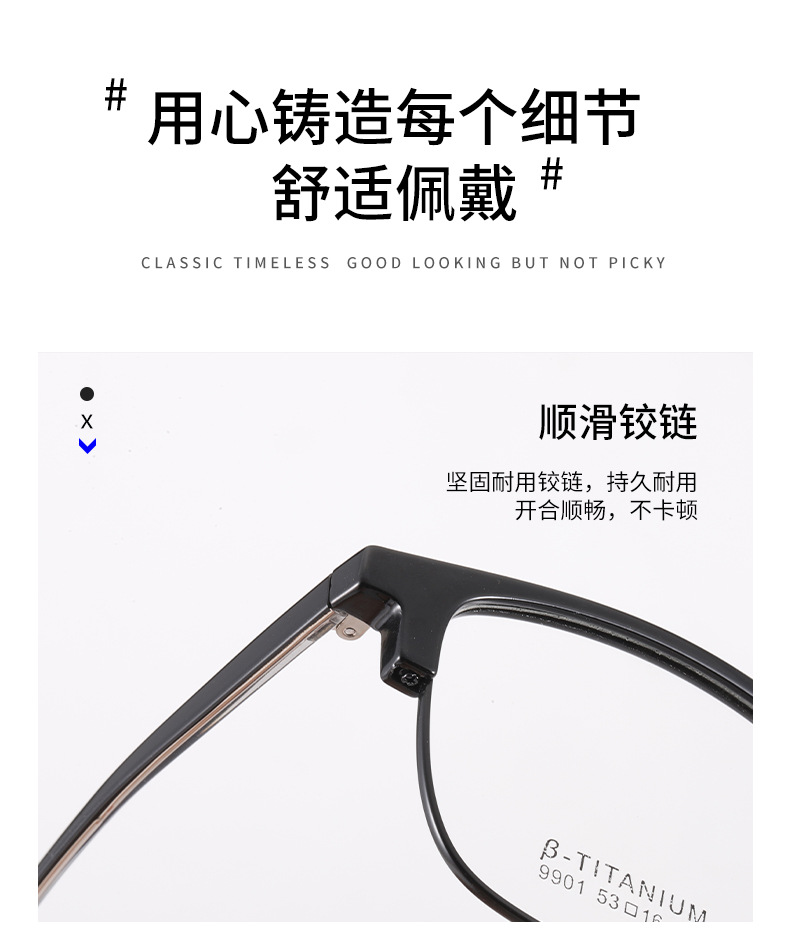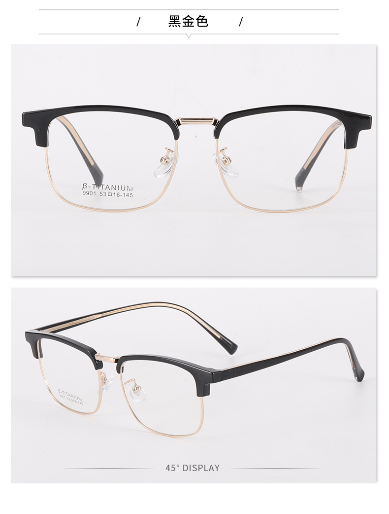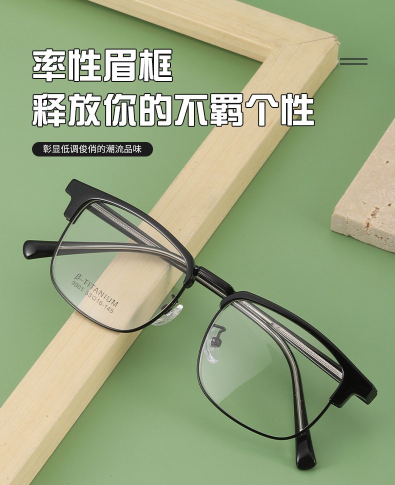 插芯眉毛眼镜框架时尚工厂直营9901板材眉线潮款黑框复古眼镜
