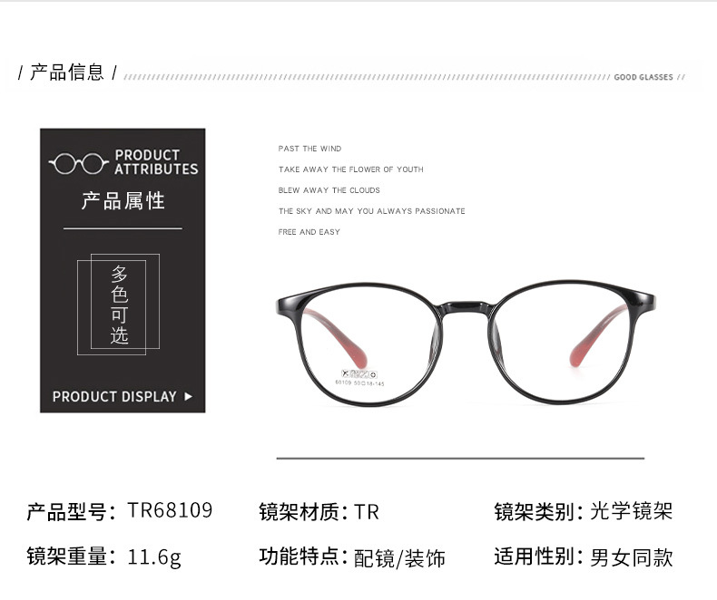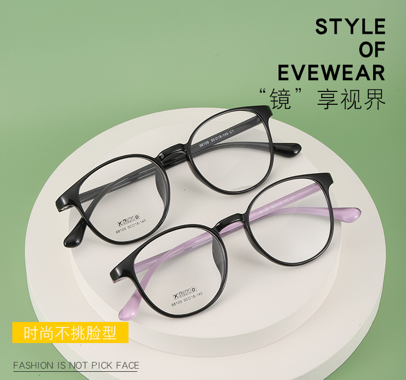 丹阳tr90眼镜圆框批发68109男女款中号全框架超轻眼镜架 TR工厂