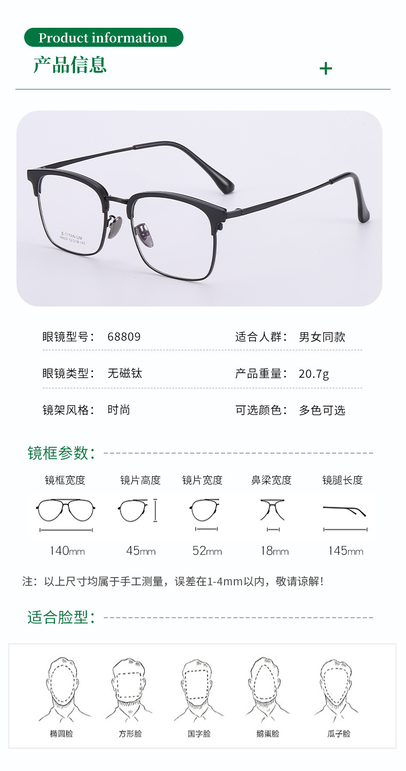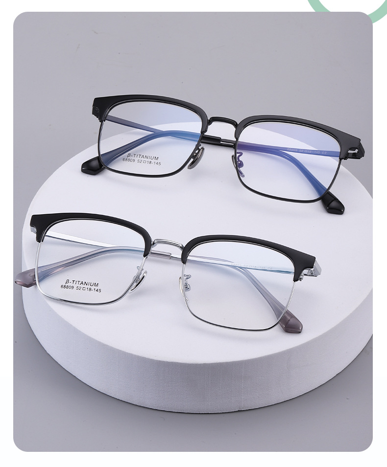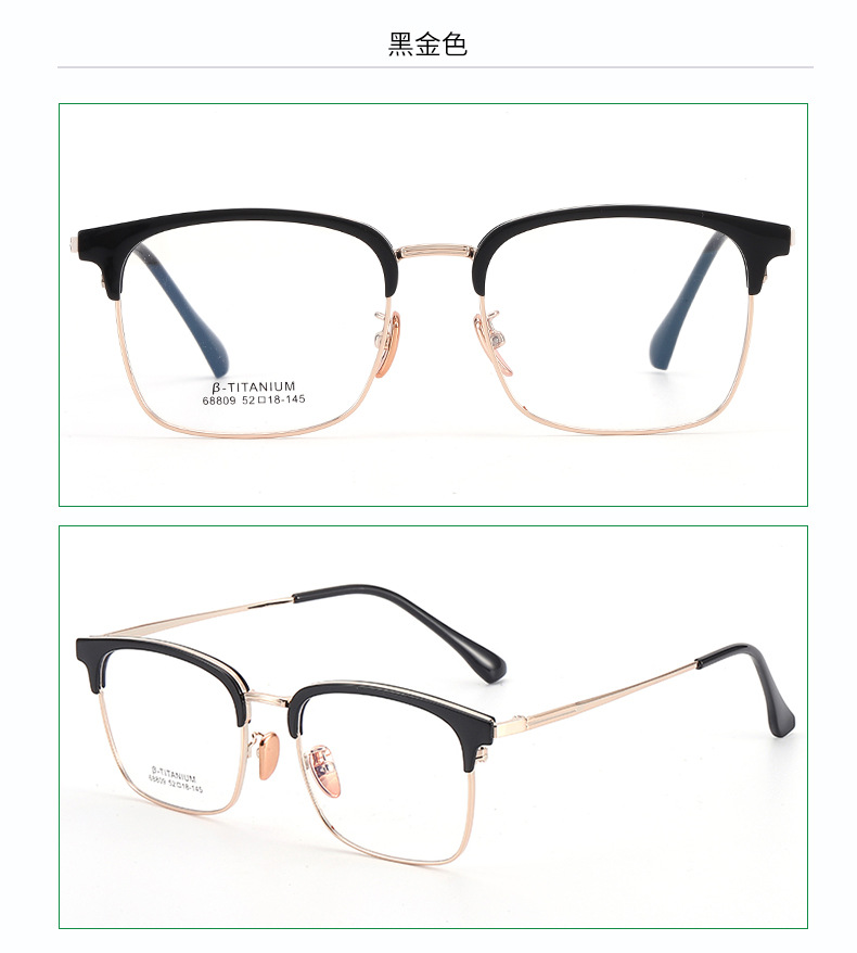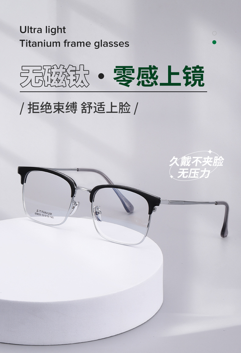 无磁钛眉毛眼镜架 时尚丹阳工厂68809眉线框小红书潮复古黑框眼镜