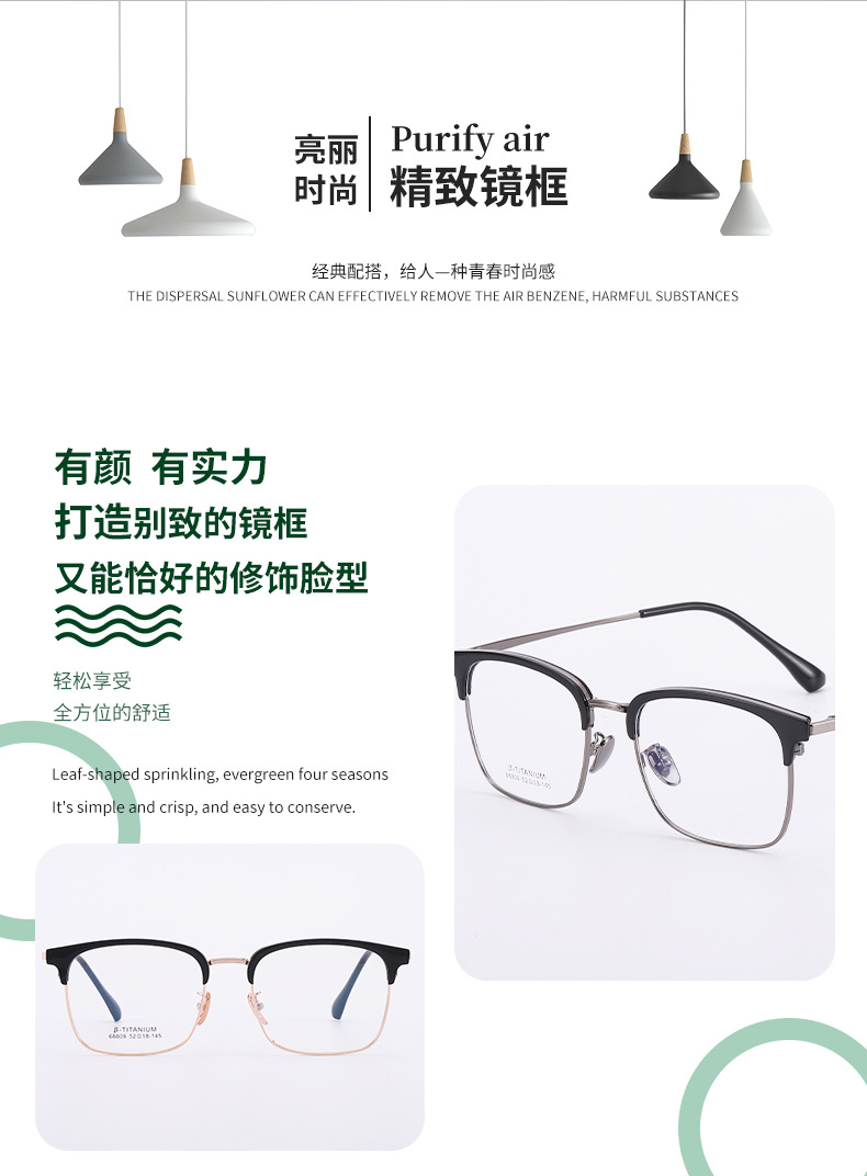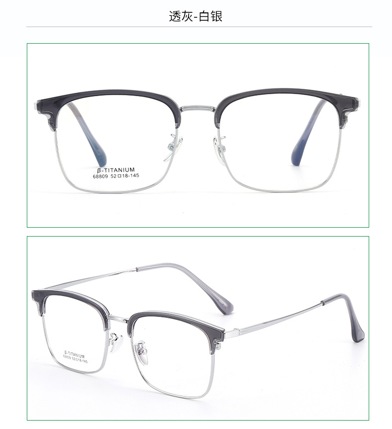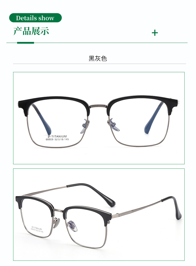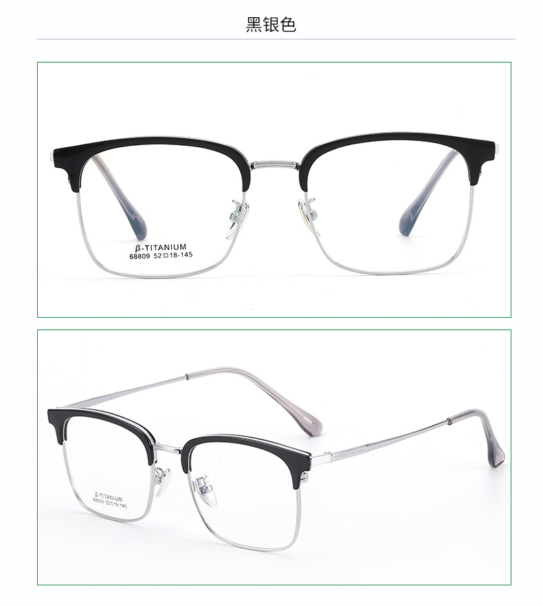 无磁钛眉毛眼镜架 时尚丹阳工厂68809眉线框小红书潮复古黑框眼镜