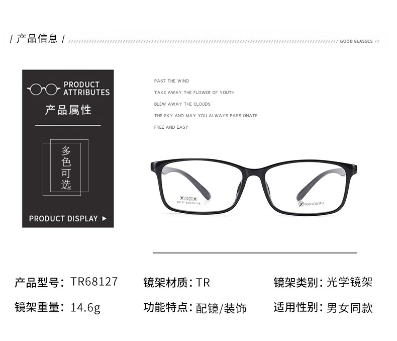 方形大胖脸tr90眼镜框批发68127男士款特大号全框架超轻眼镜架 TR
