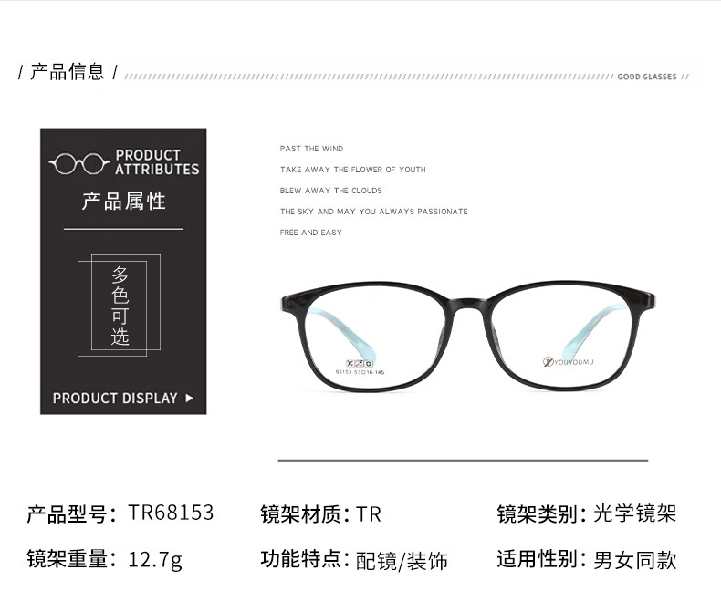正品tr90近视眼镜批发68153男款全框眼镜架 友顺超轻眼镜架TR女士