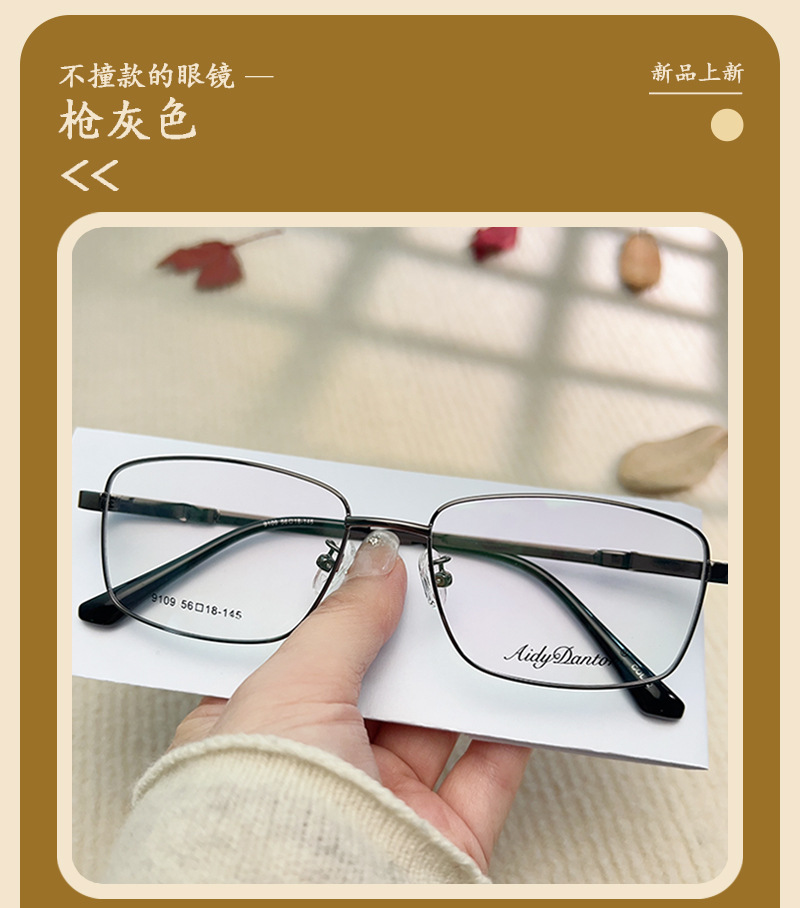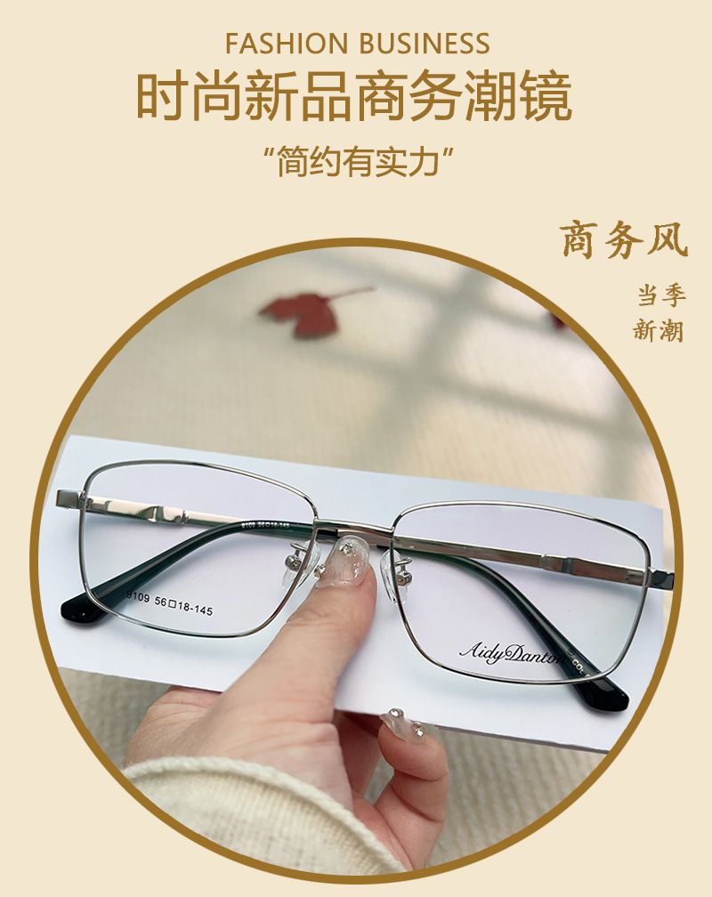 时尚大号商务 眼镜框批发9109男士360度腿弯曲眼镜 金属宽边记忆