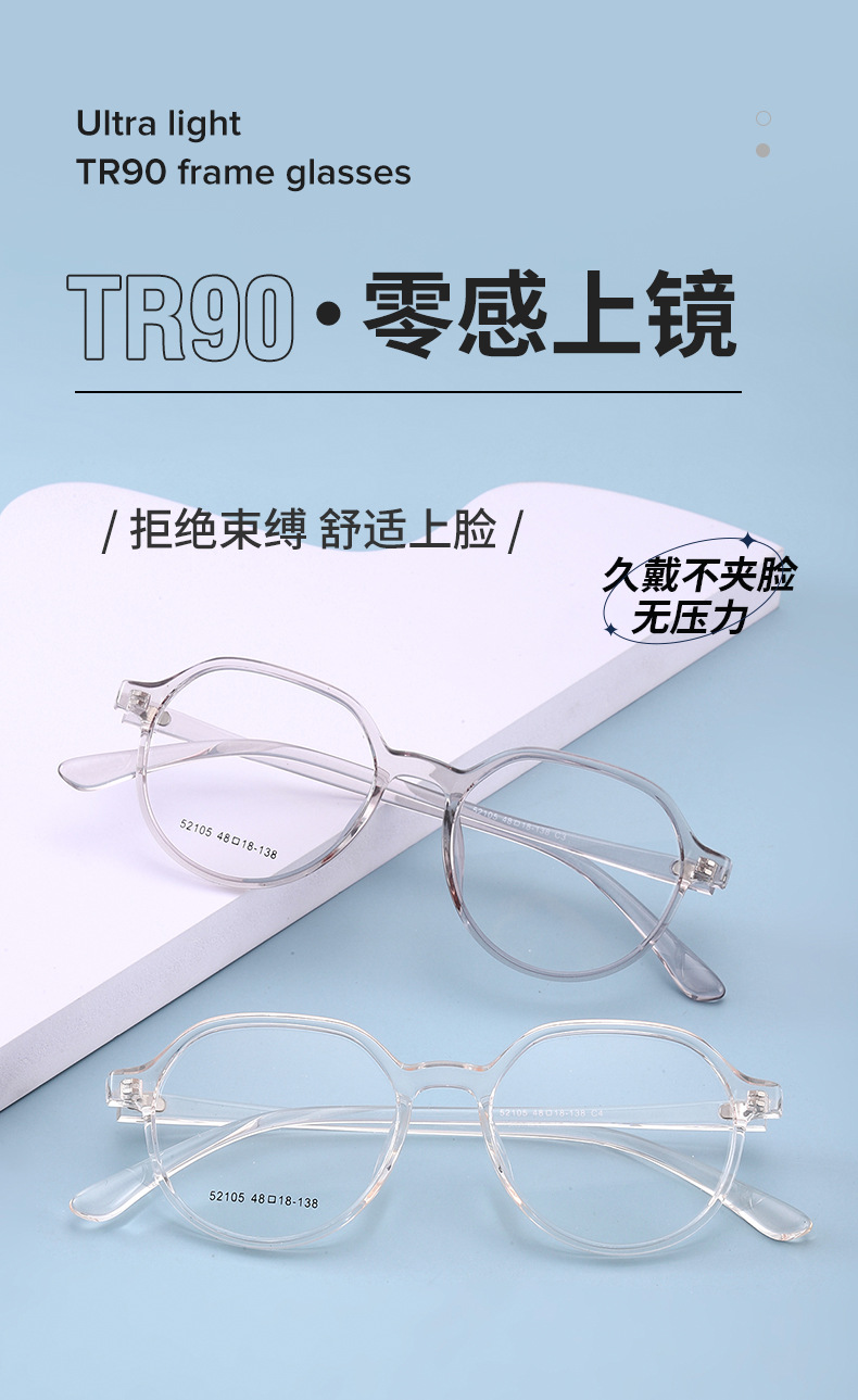 学生tr90眼镜框男女士小红书种草款52105全框架眼镜 TR镜架批发