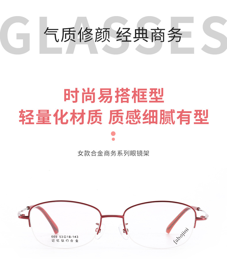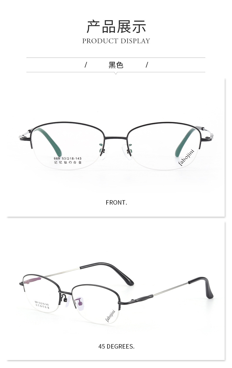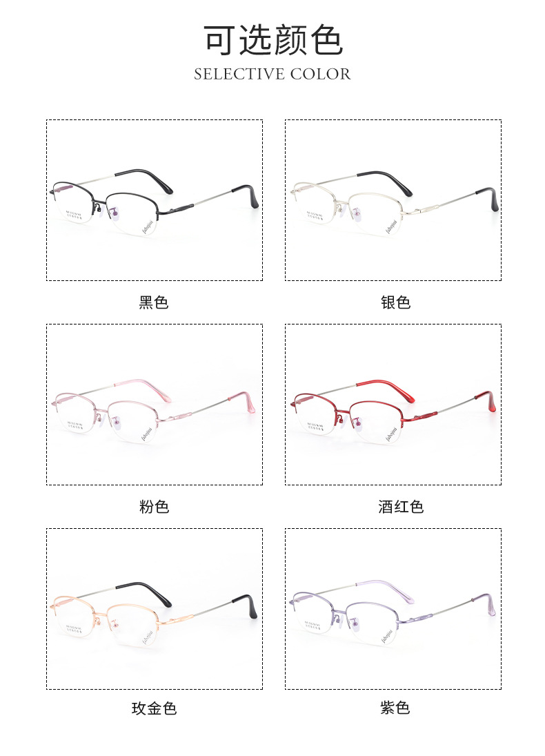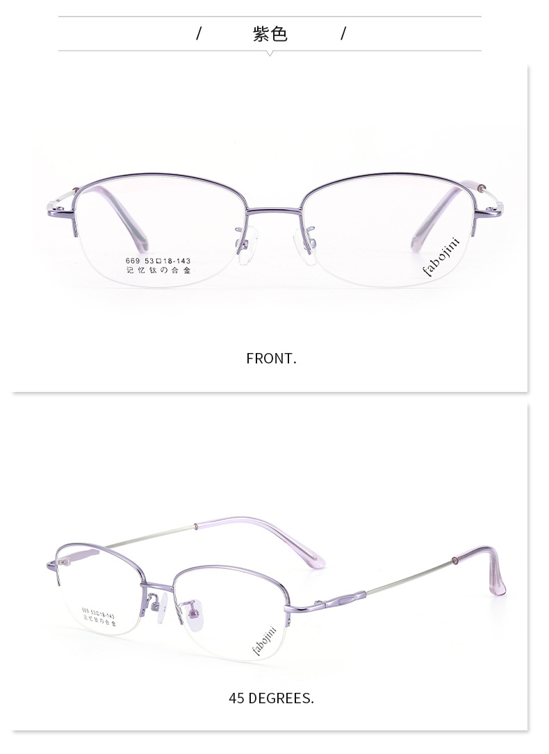 新款眼镜架记忆钛镜架 669半框金属光学丹阳眼镜渐进老花眼镜框女
