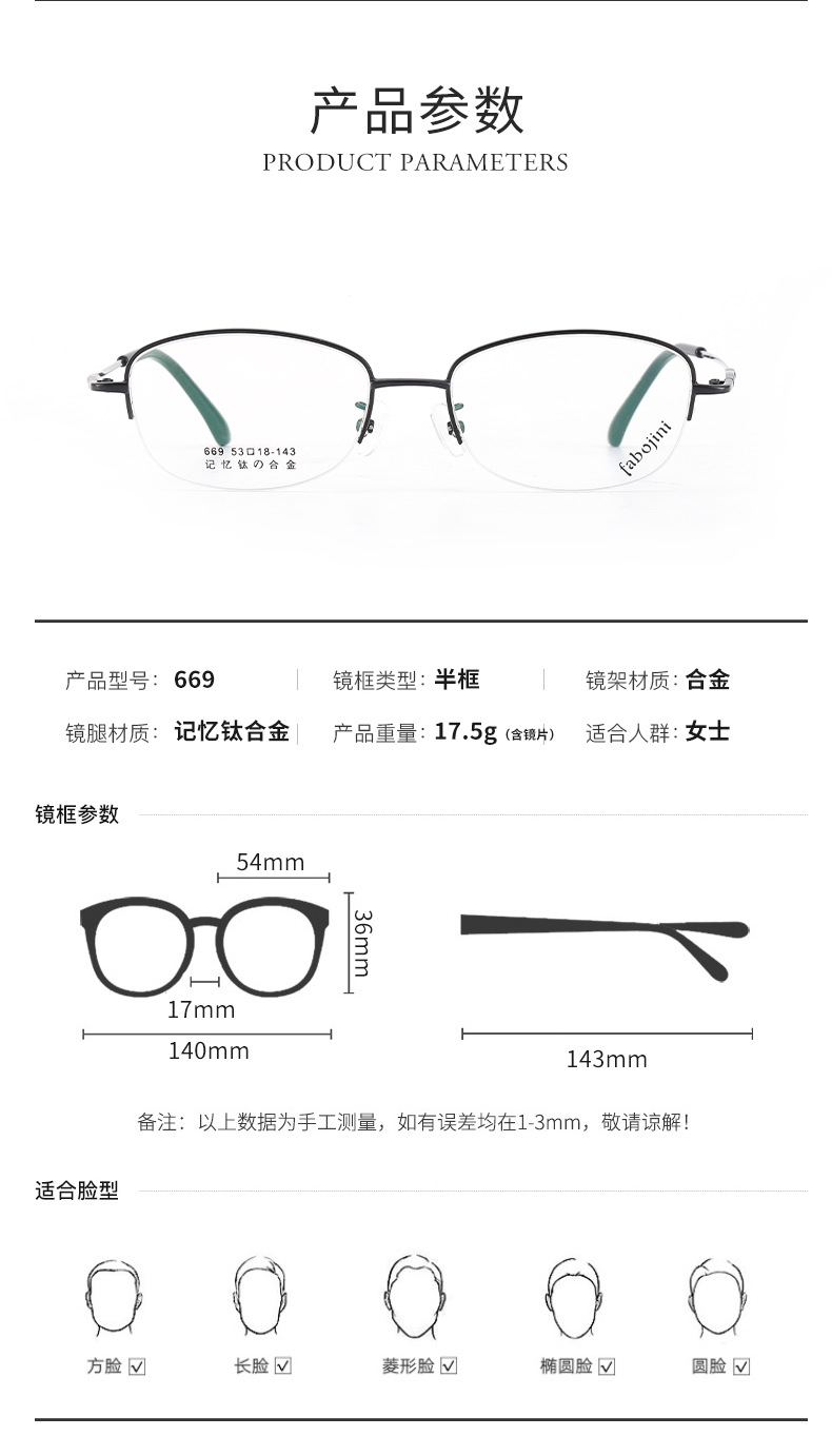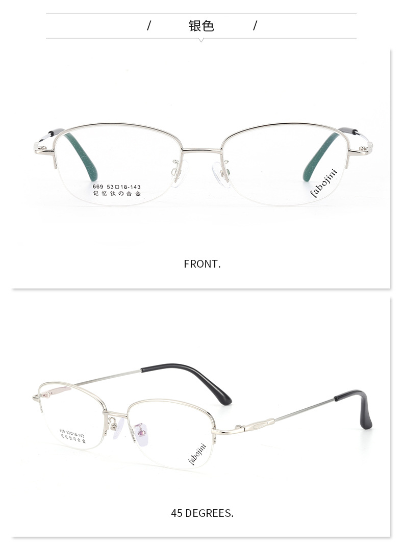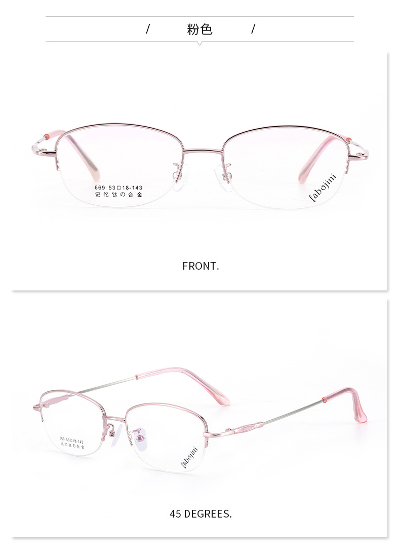 新款眼镜架记忆钛镜架 669半框金属光学丹阳眼镜渐进老花眼镜框女