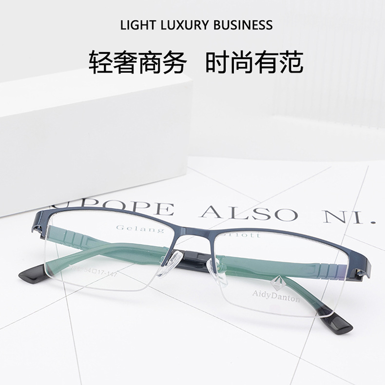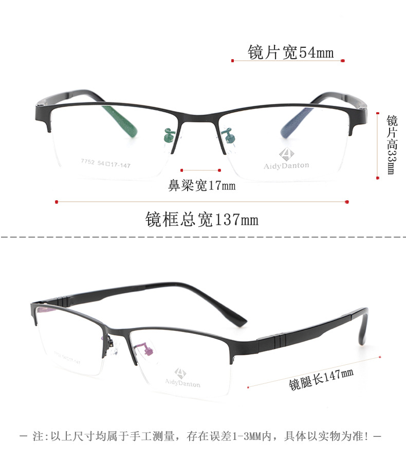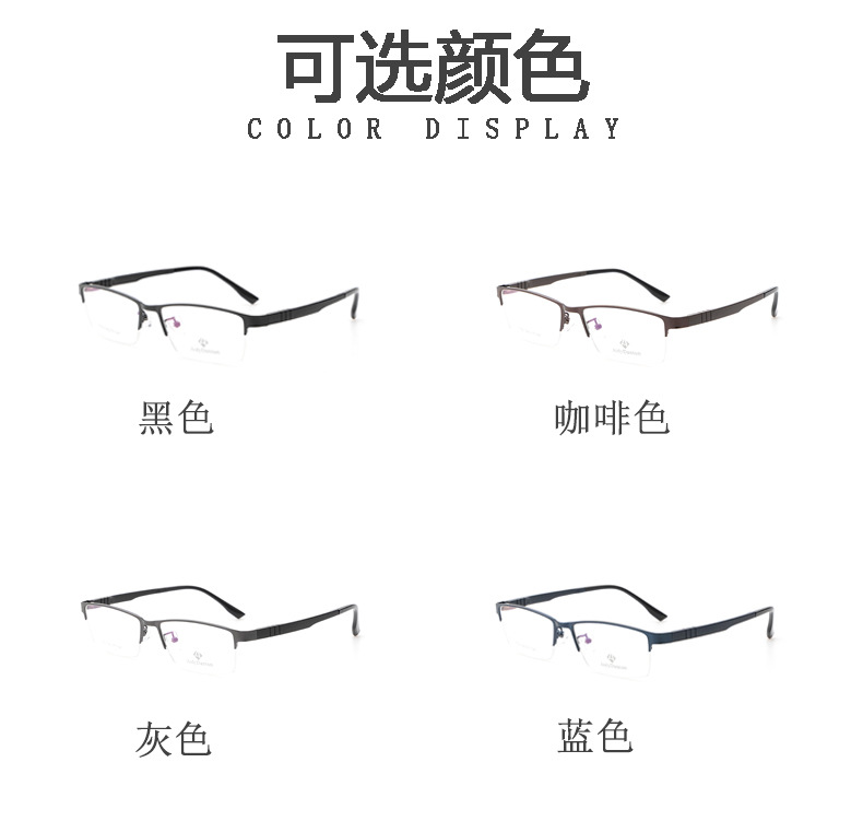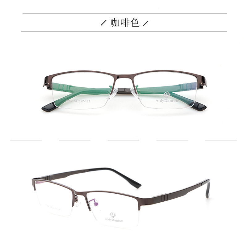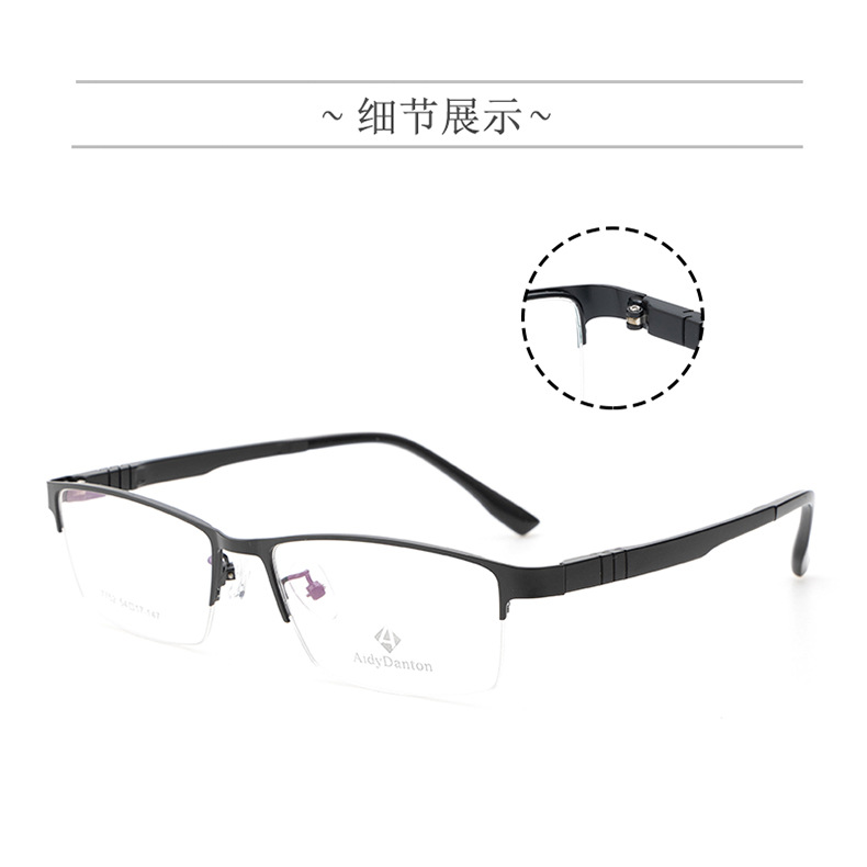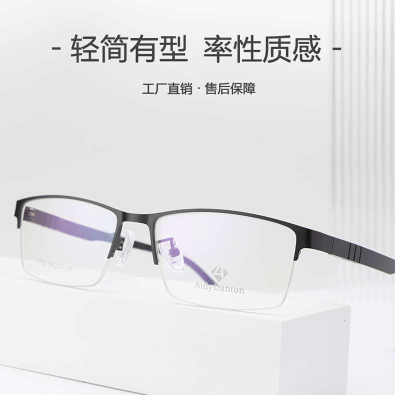 新款不夹脸金属眼镜框丹阳商务男款钢板近视镜架超弹塑钢腿7752