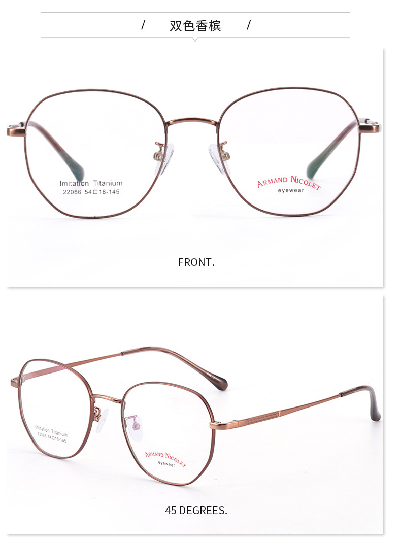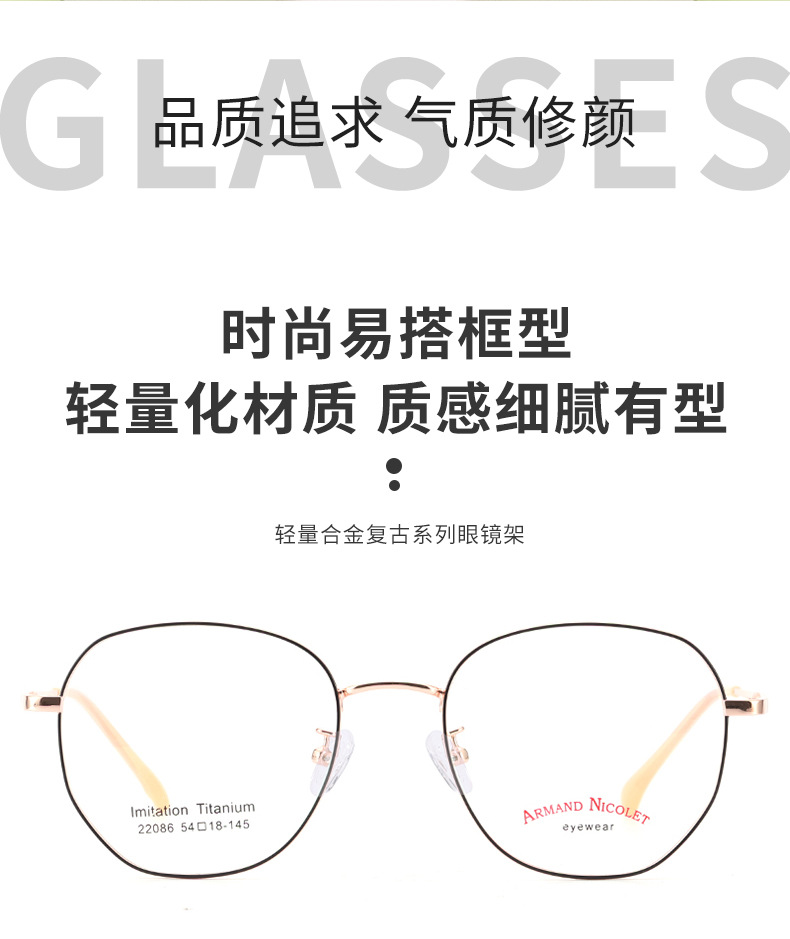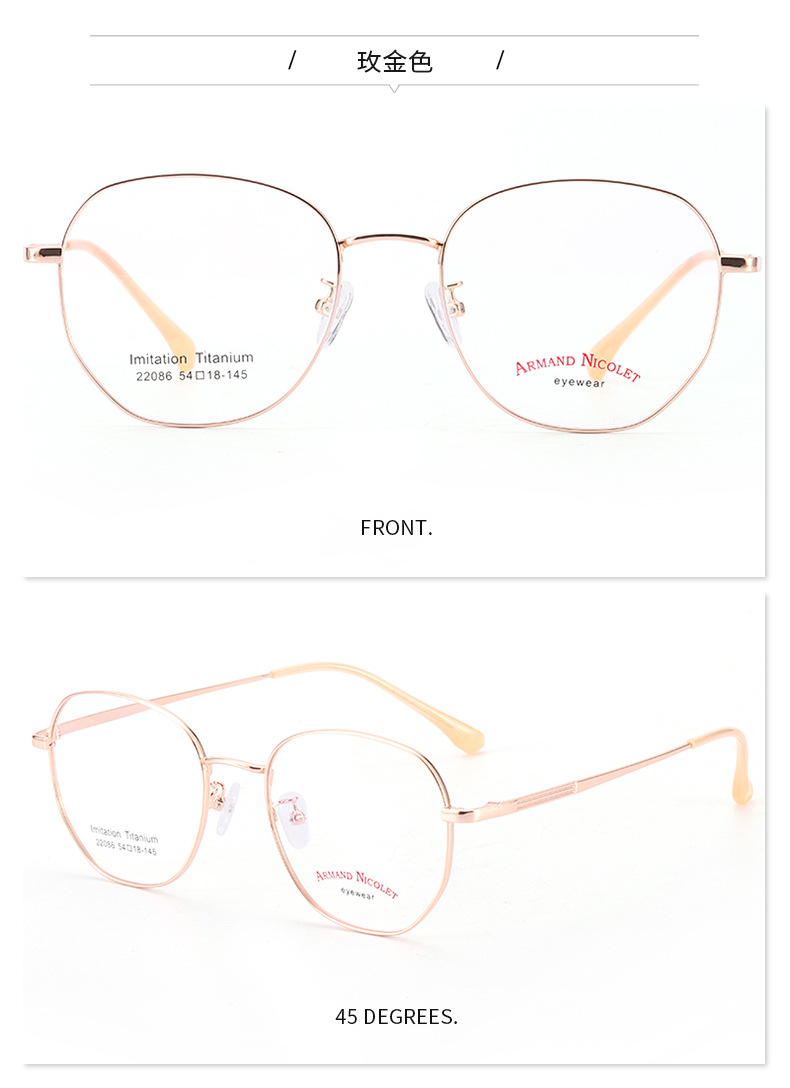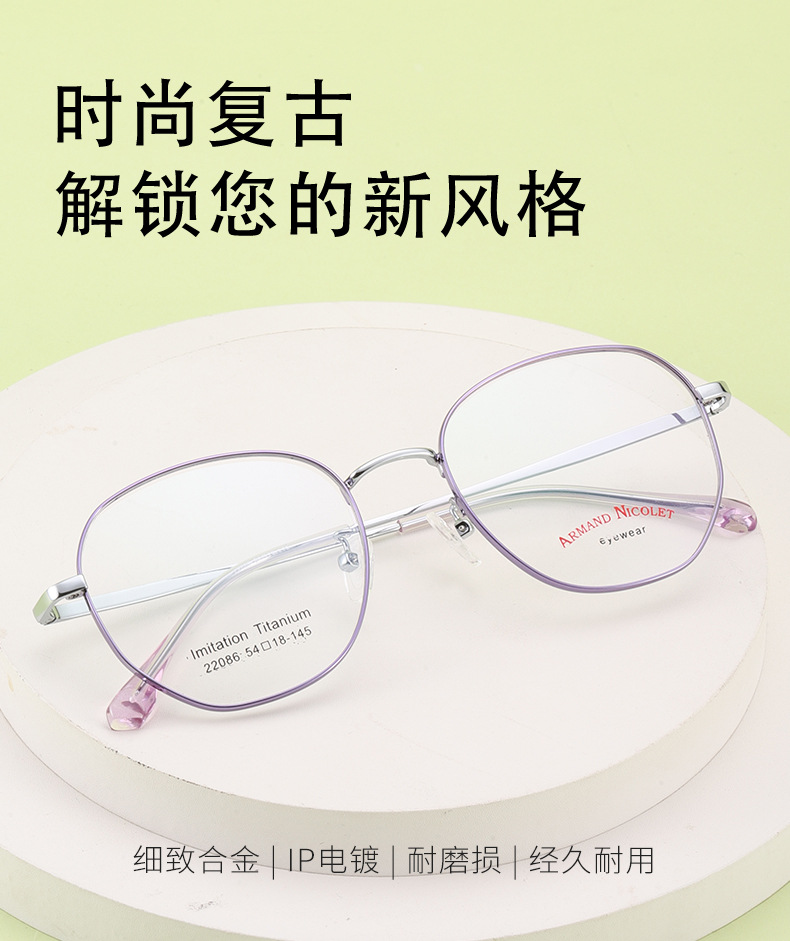 IP电镀多边形配镜宽边显薄镜架 男女款复古全框眼镜工厂批发22086