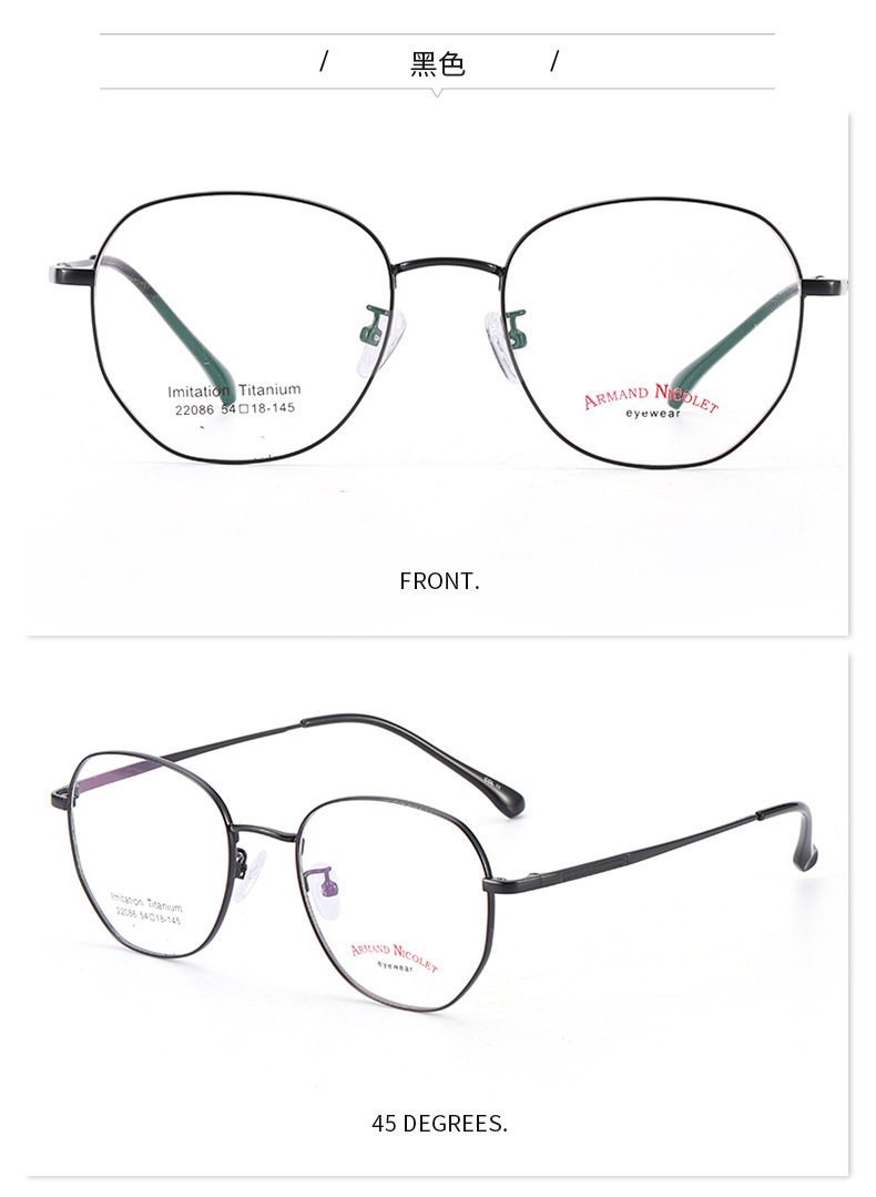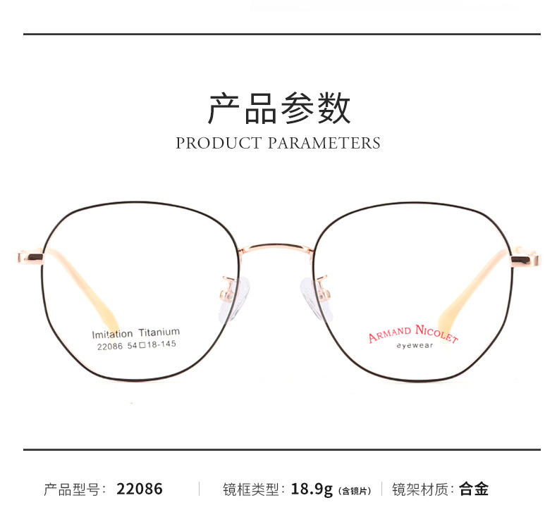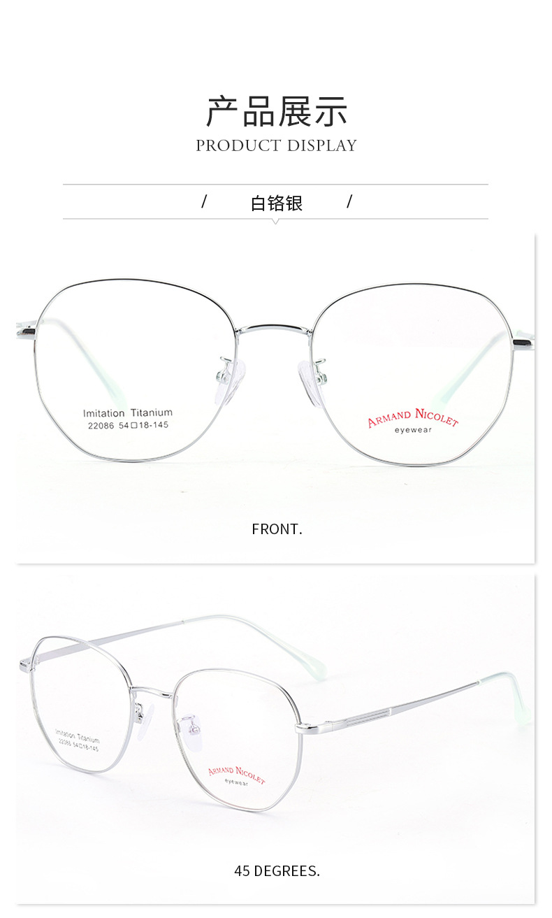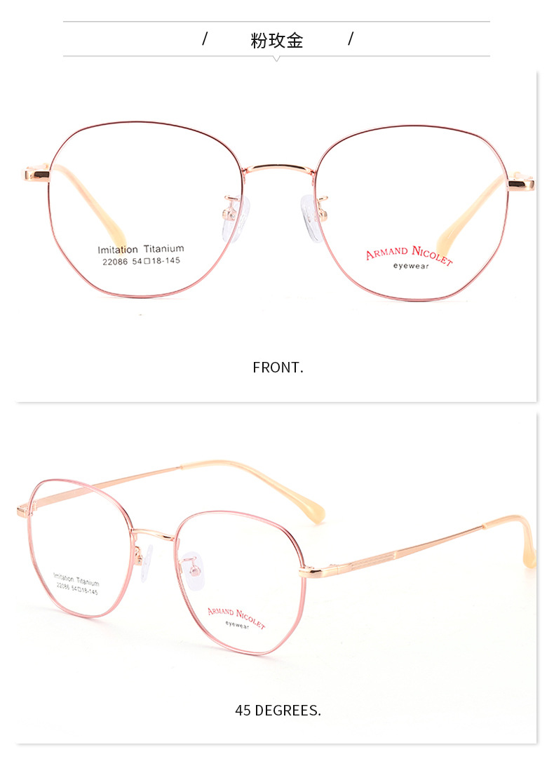 IP电镀多边形配镜宽边显薄镜架 男女款复古全框眼镜工厂批发22086