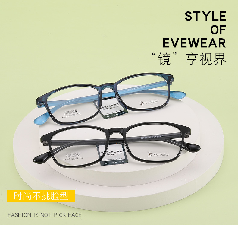 工厂直营tr眼镜框批发68106男女款中小号全框架超轻眼镜架 TR90