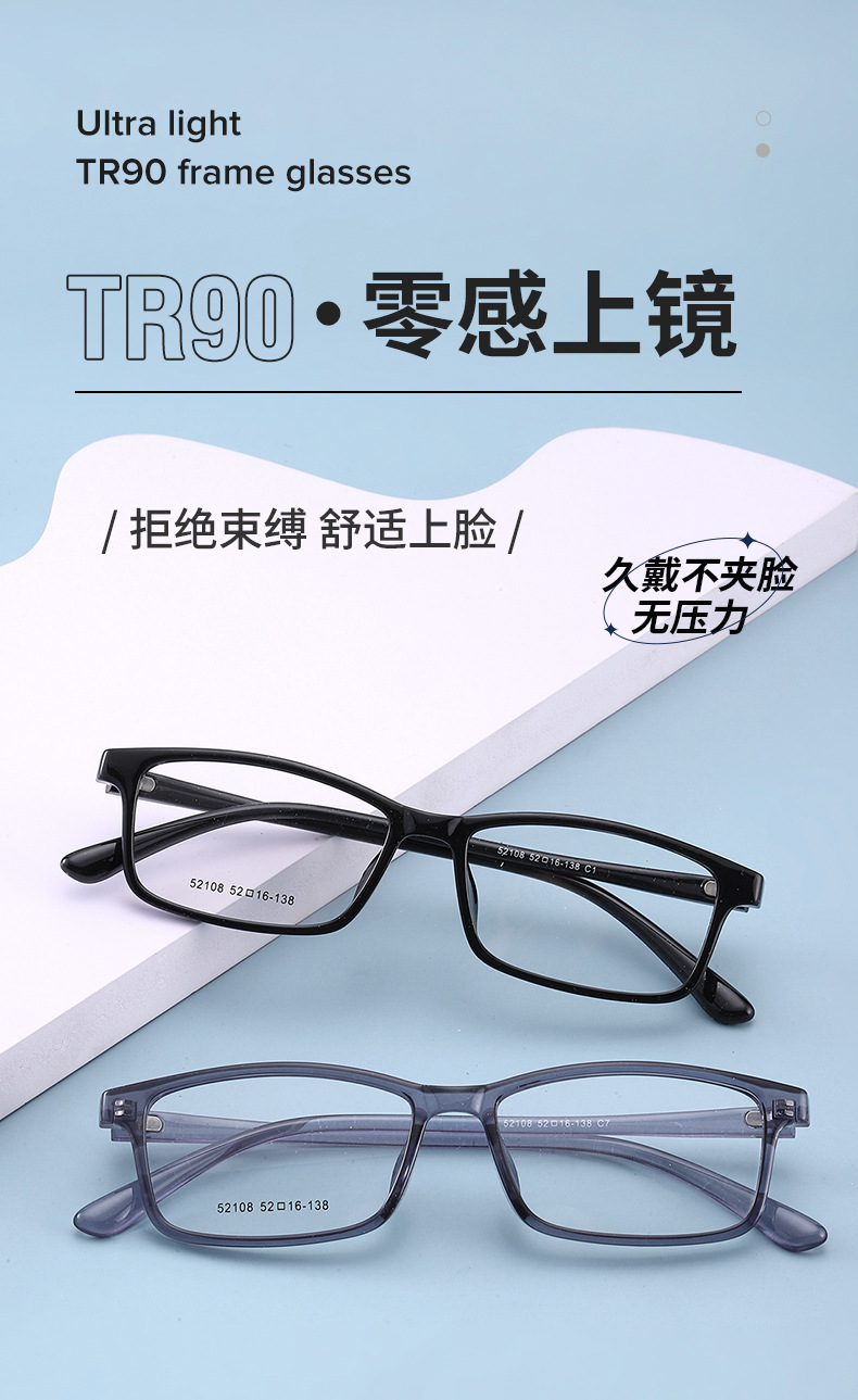 近视眼镜批发tr男女士中号52108全框架眼镜 TR90学生镜架金属铰链