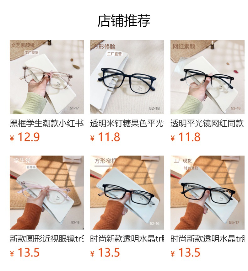 时尚新款透明水晶tr腿眼镜批发2210小红书近视眼镜框TR90眼镜架