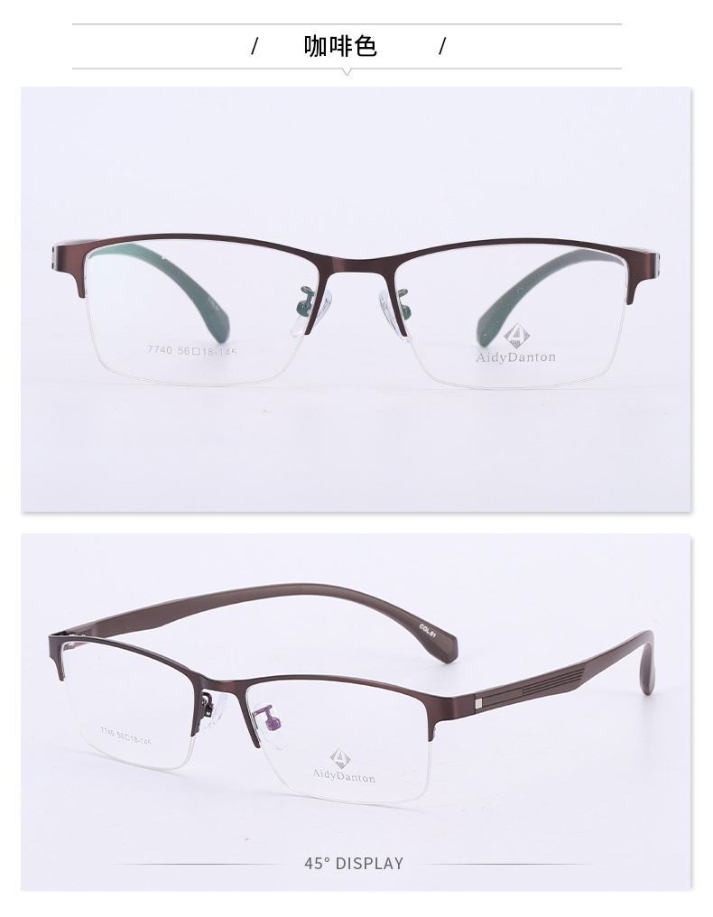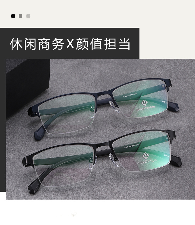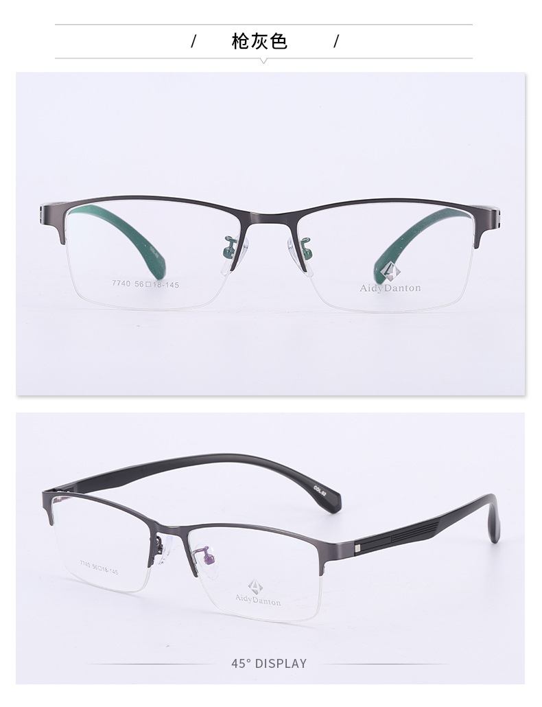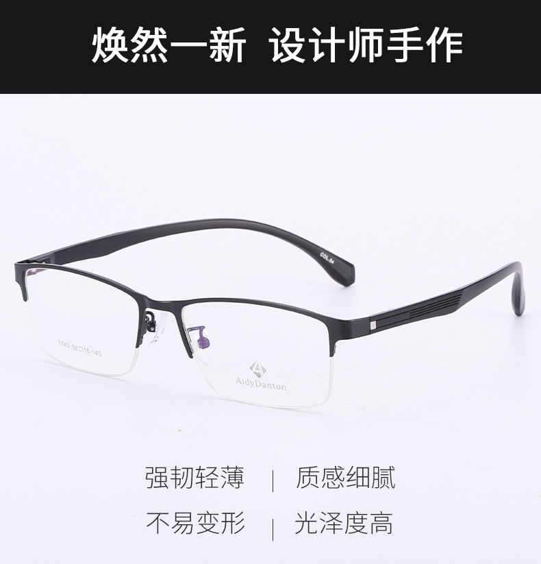 新款金属眼镜框批发丹阳半框 商务男款钢板镜架近视塑钢腿7740