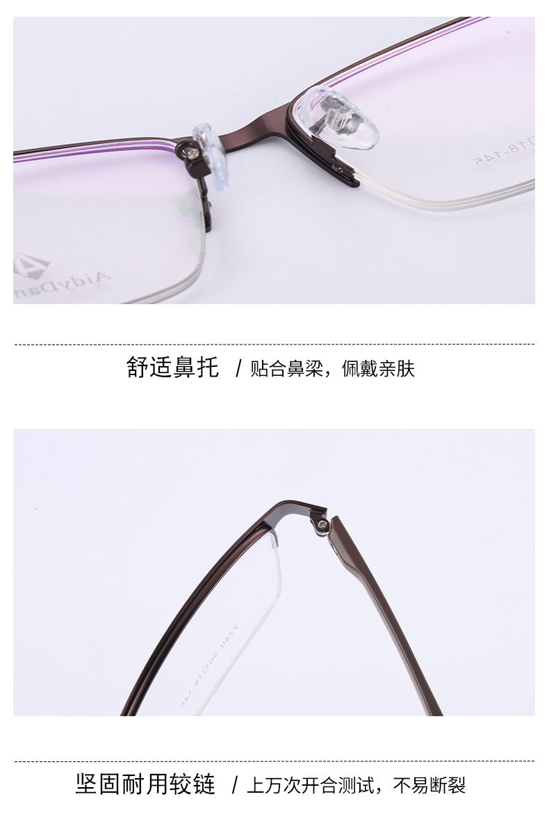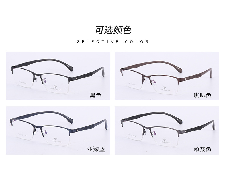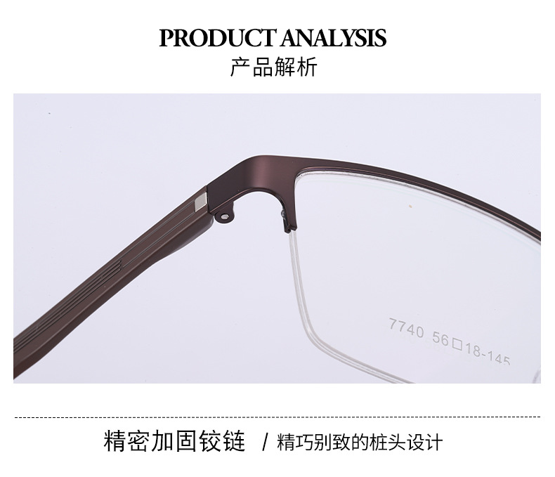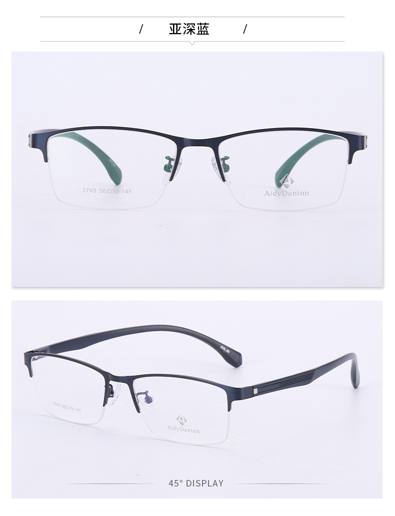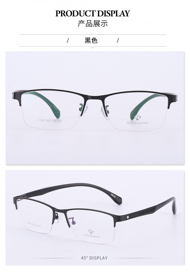 新款金属眼镜框批发丹阳半框 商务男款钢板镜架近视塑钢腿7740