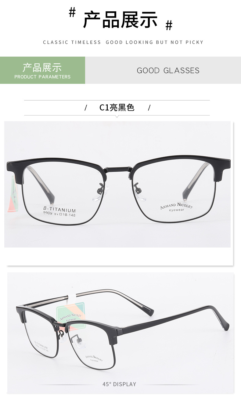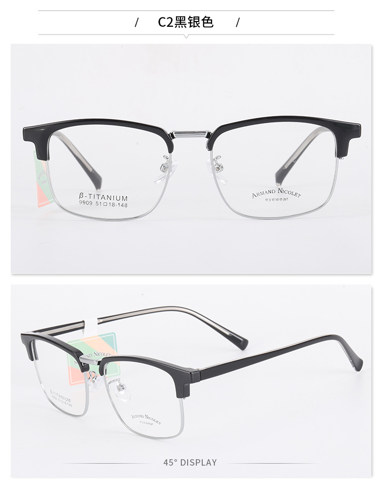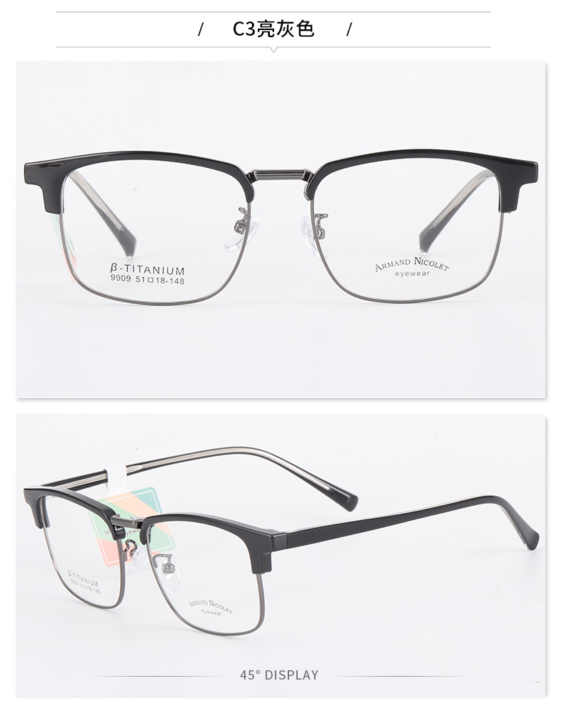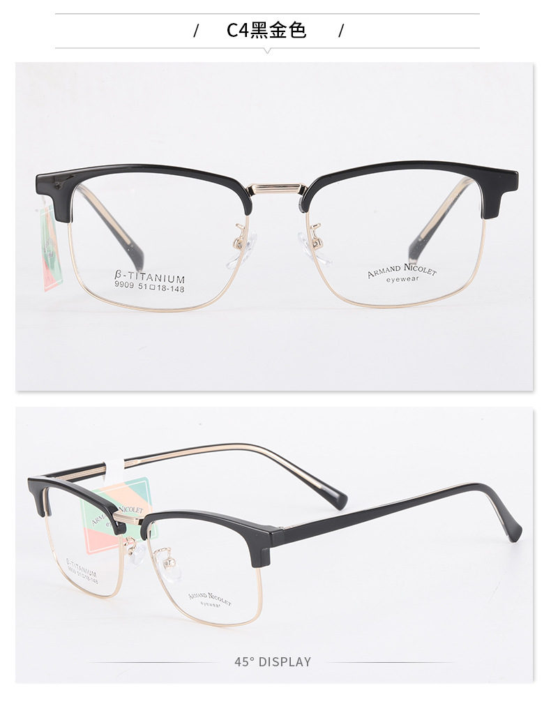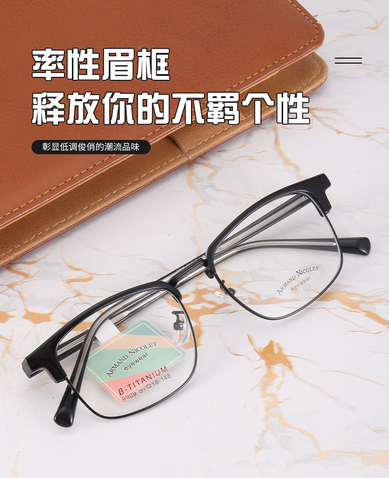 丹阳工厂黑框眼镜时尚复古眉毛框眼镜9909潮款眉线架板材小框