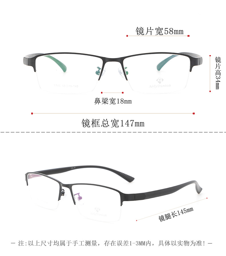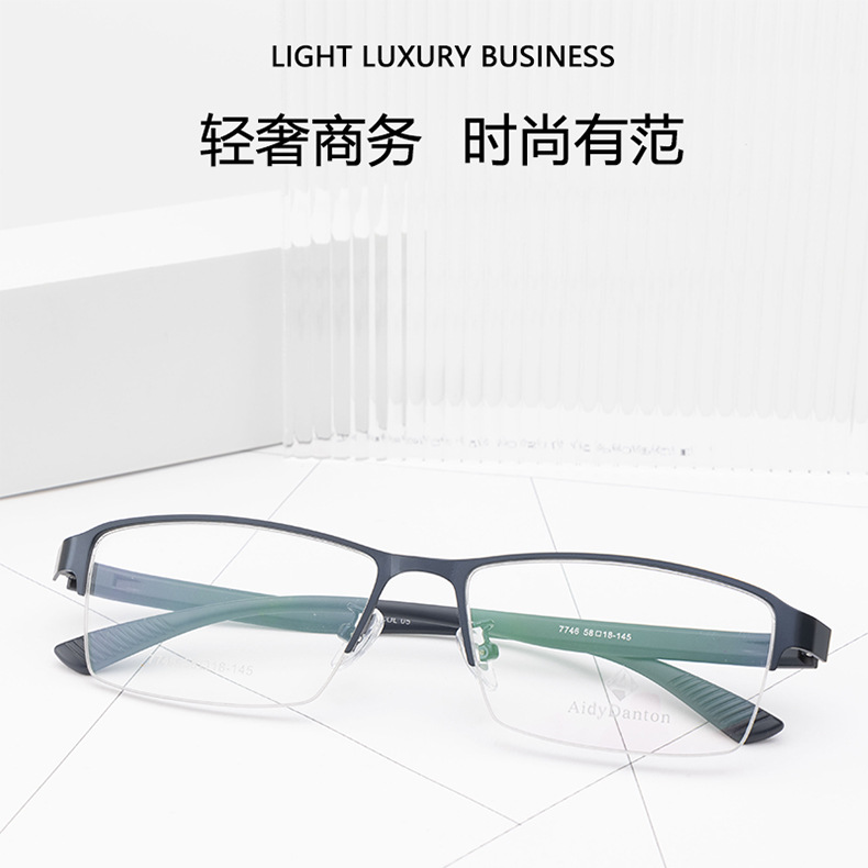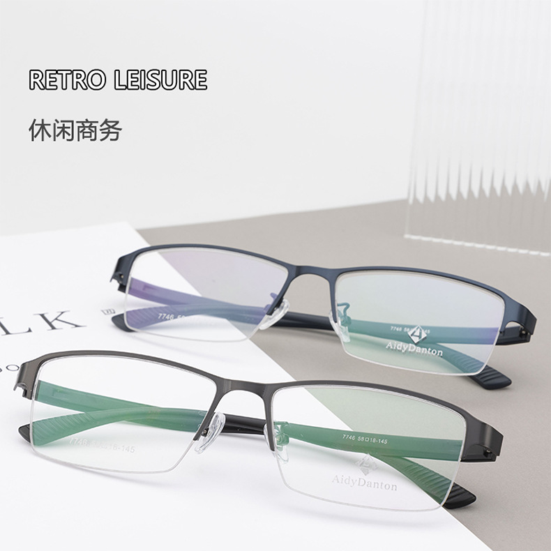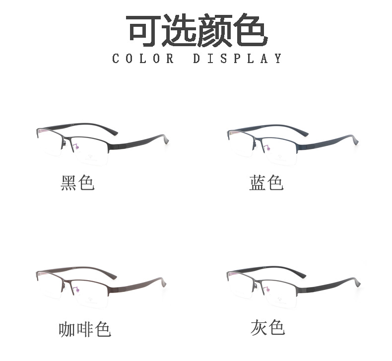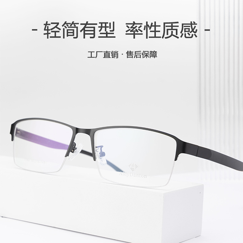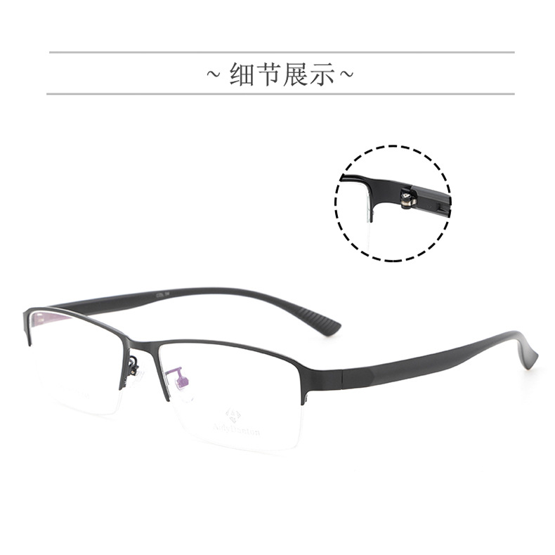 新款金属眼镜框加宽腿丹阳厂家批发半框近视镜架男款钢皮大脸镜框
