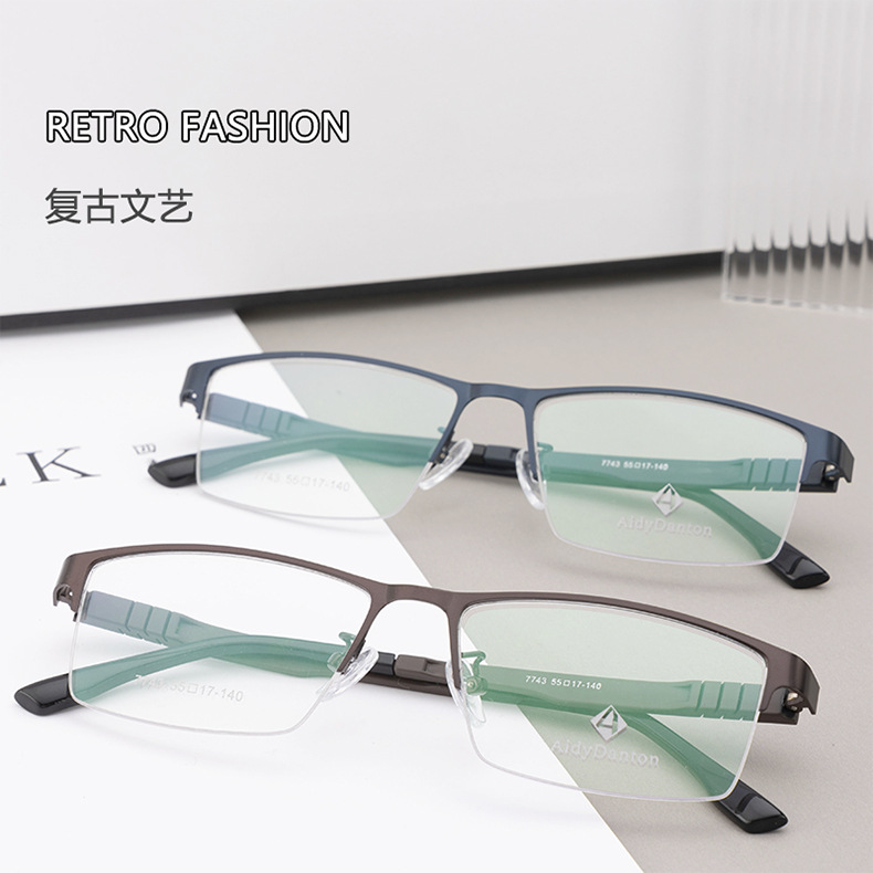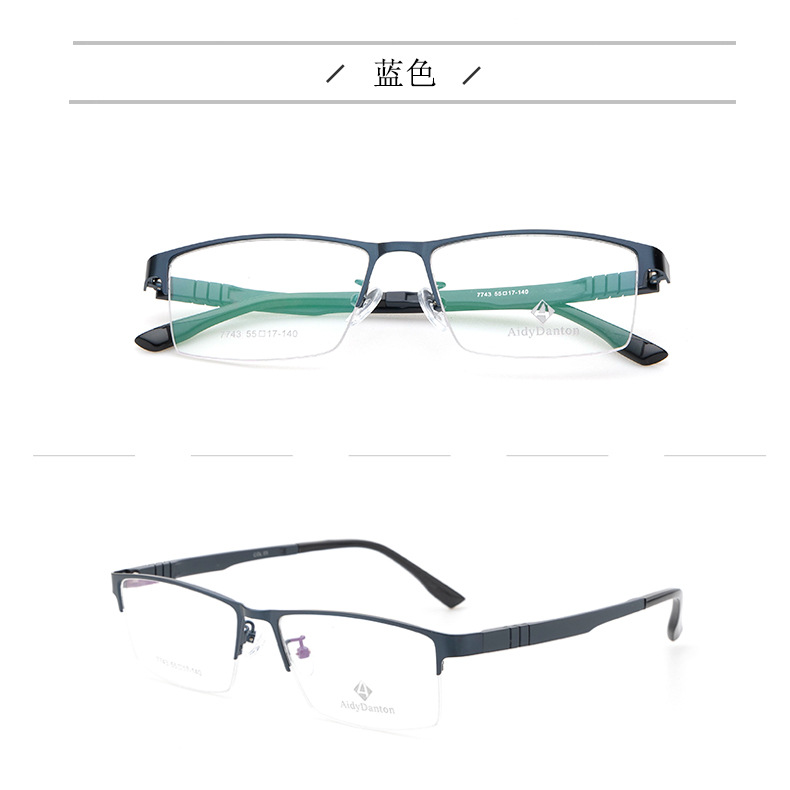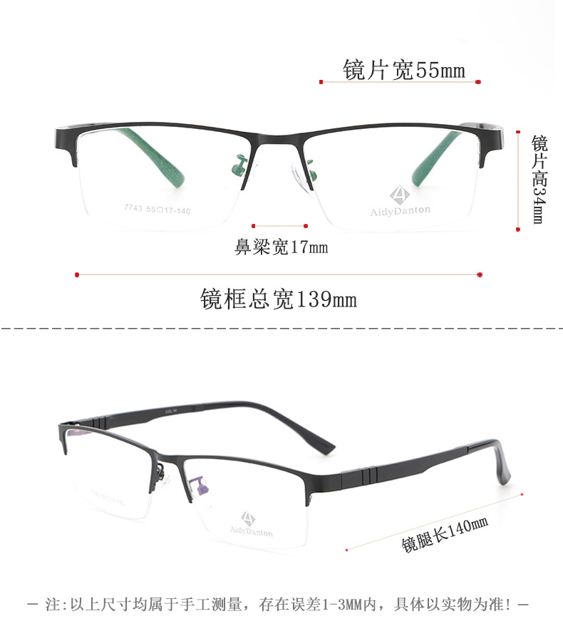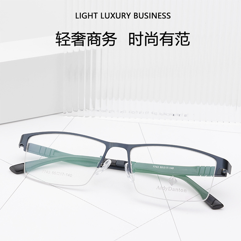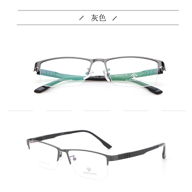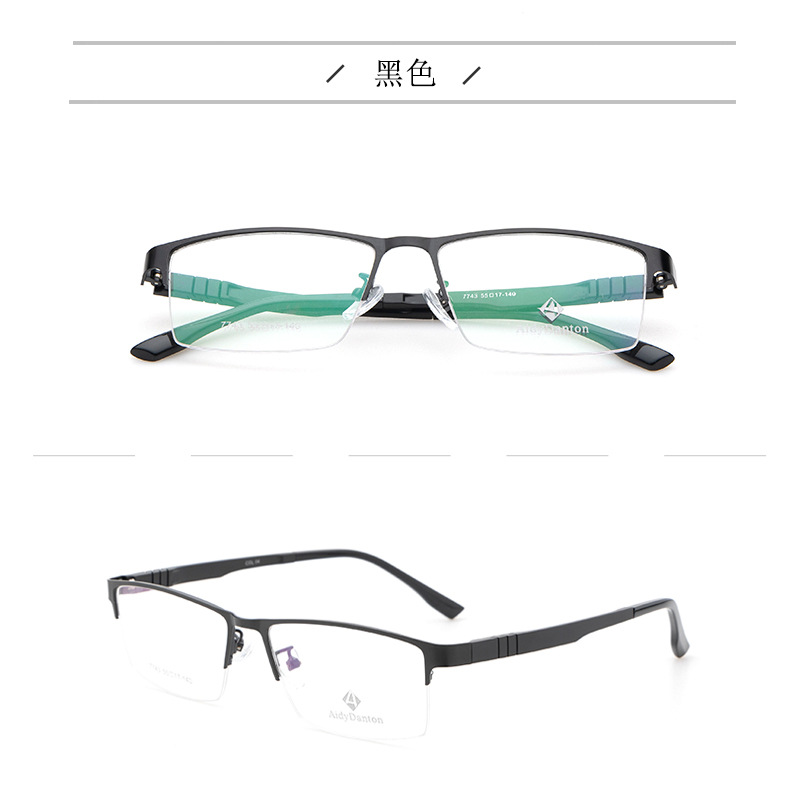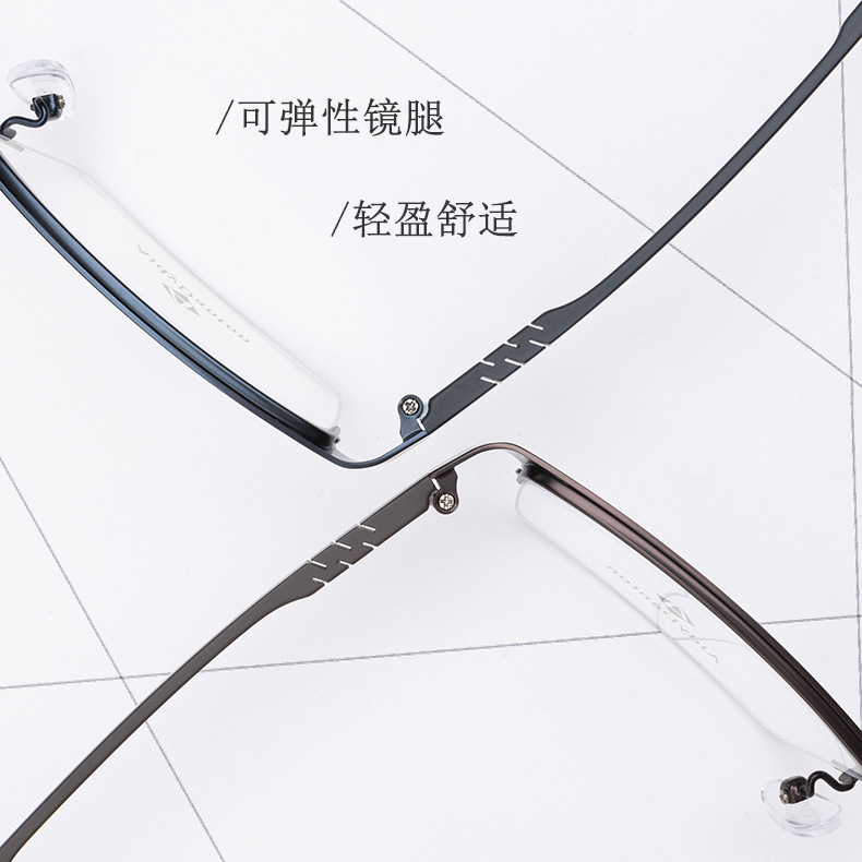 新款不夹脸金属眼镜框丹阳商务男款钢板近视镜架超弹塑钢腿7743