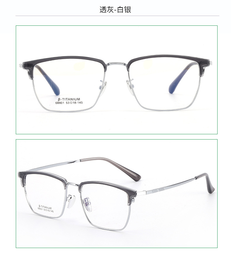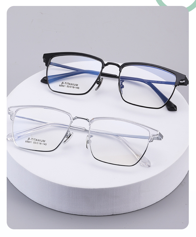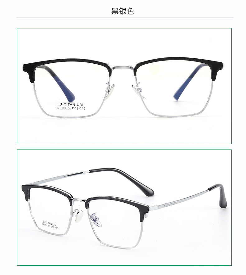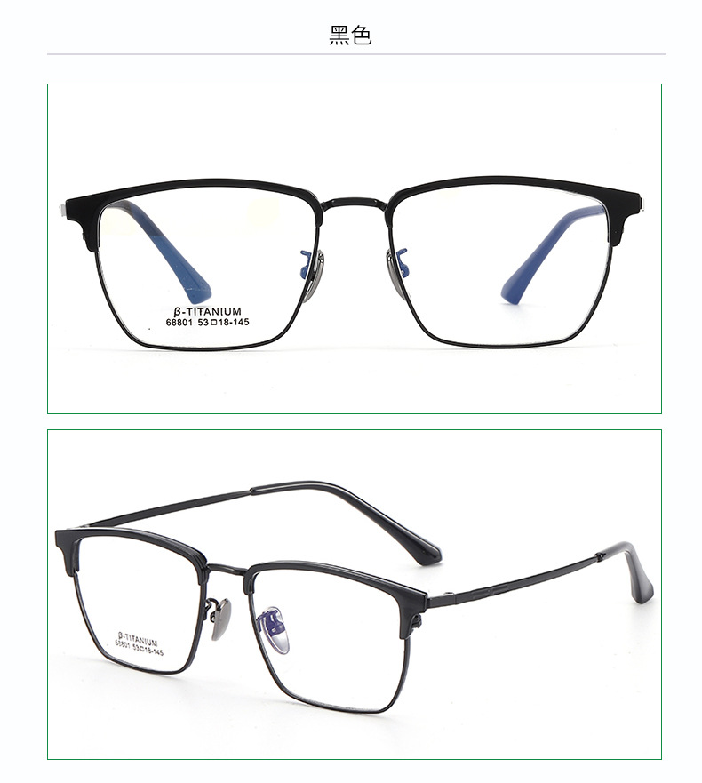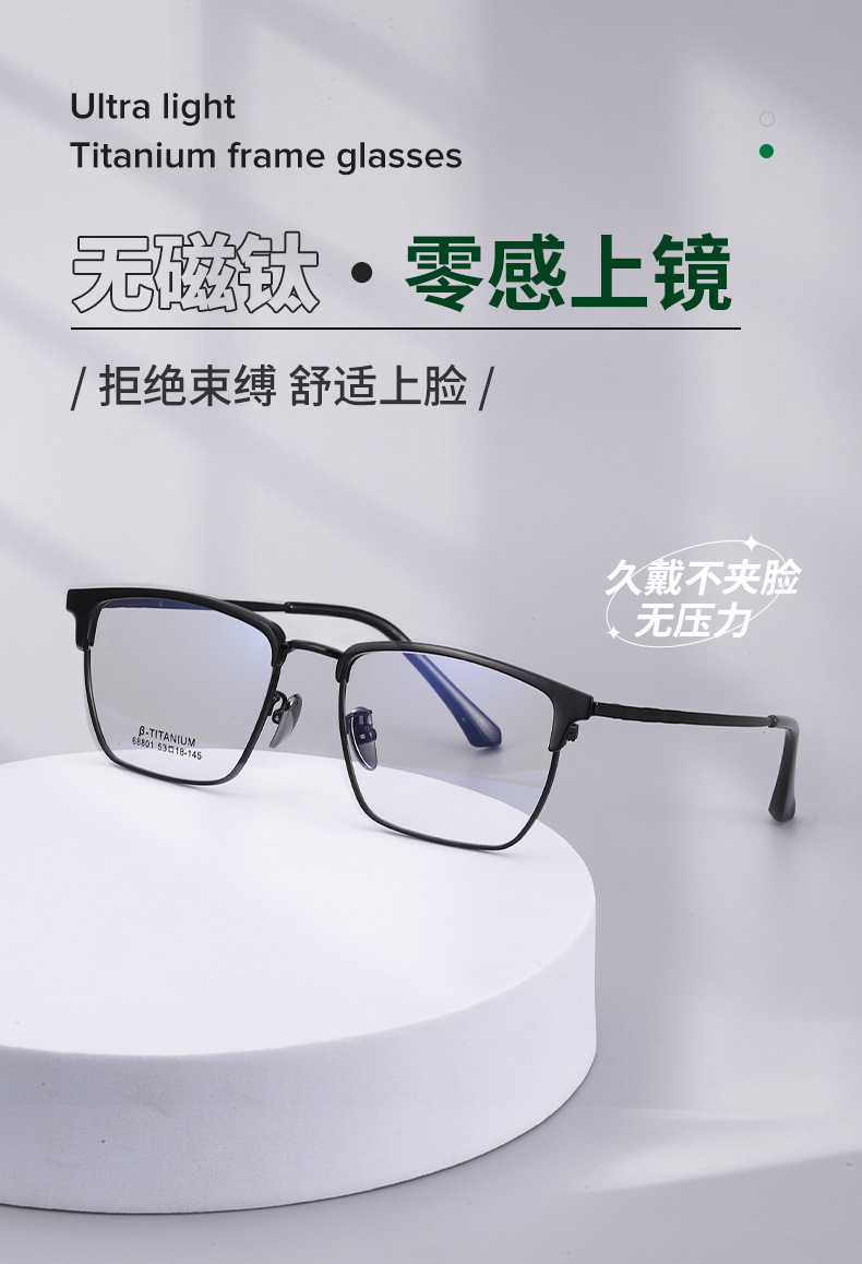时尚无磁钛黑框眼镜架丹阳工厂眉线框小红书潮复古白色眉毛镜架