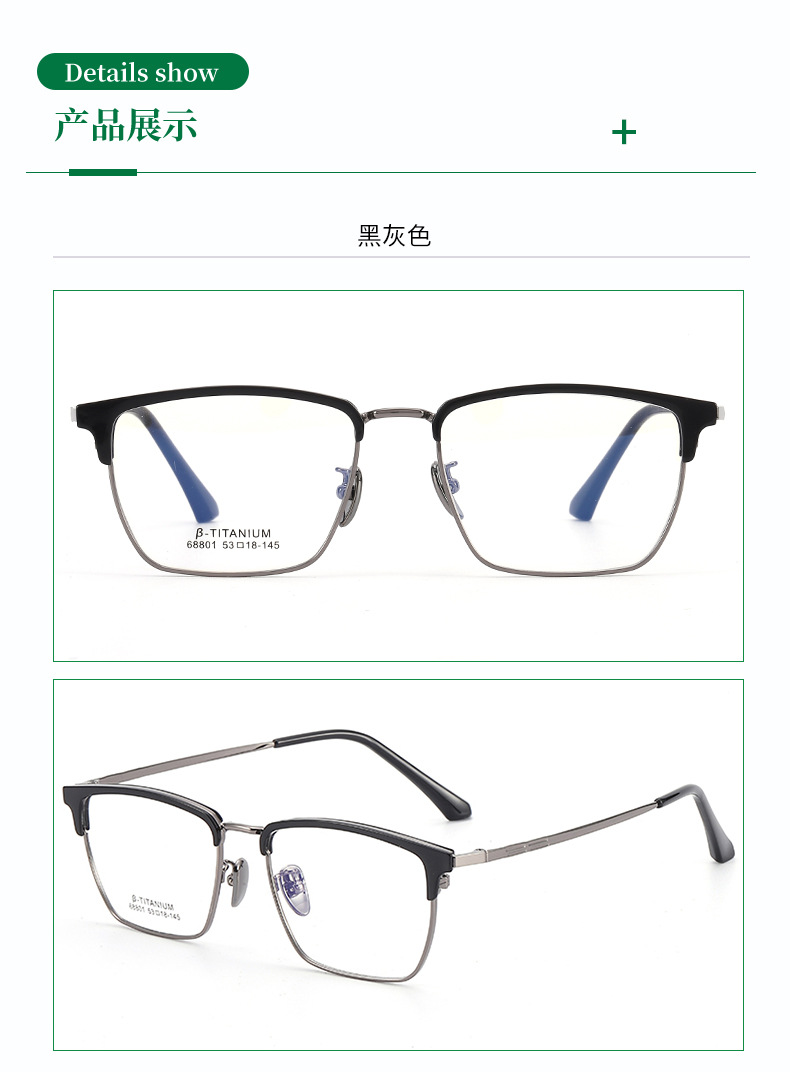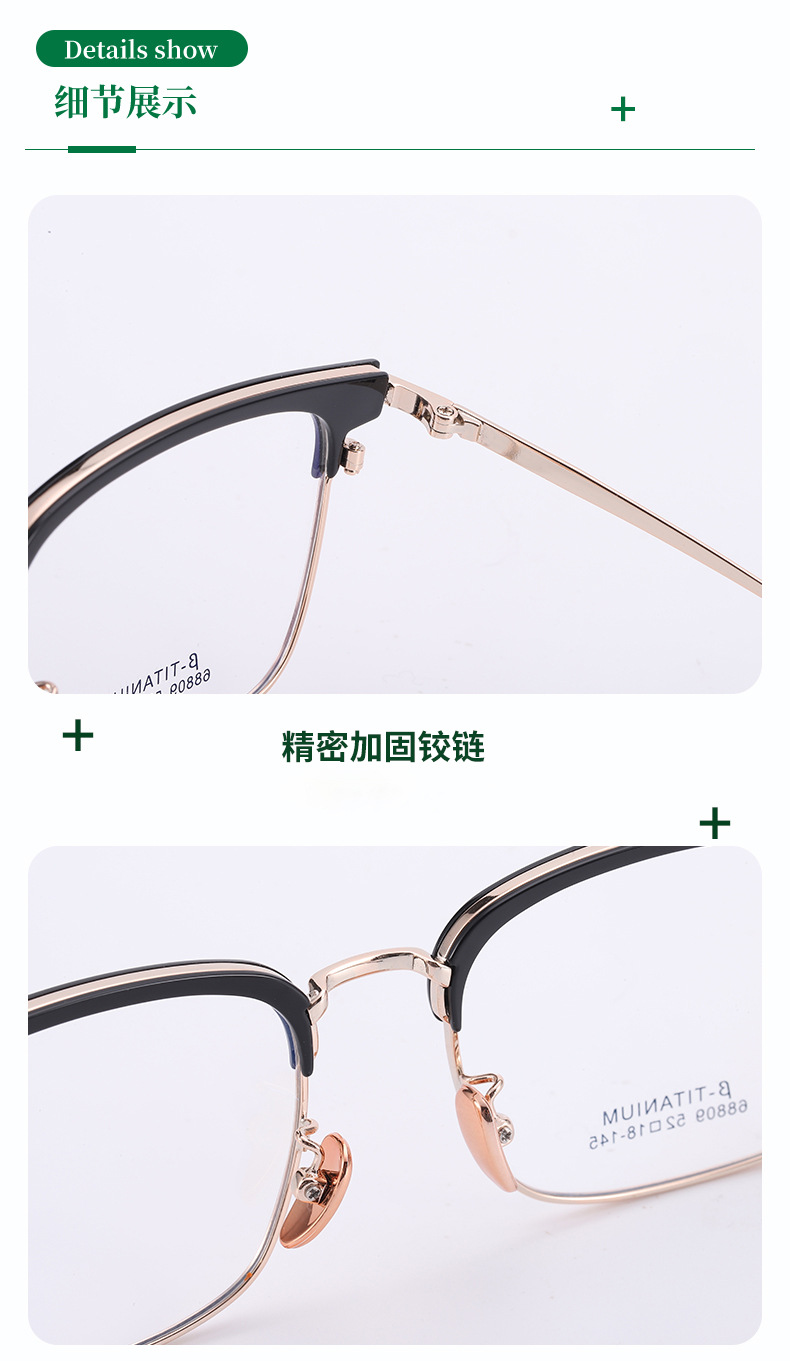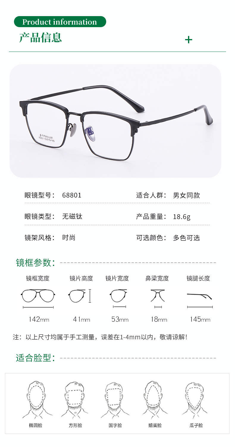 时尚无磁钛黑框眼镜架丹阳工厂眉线框小红书潮复古白色眉毛镜架