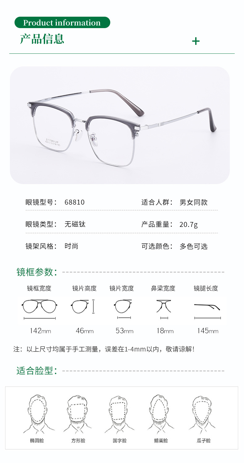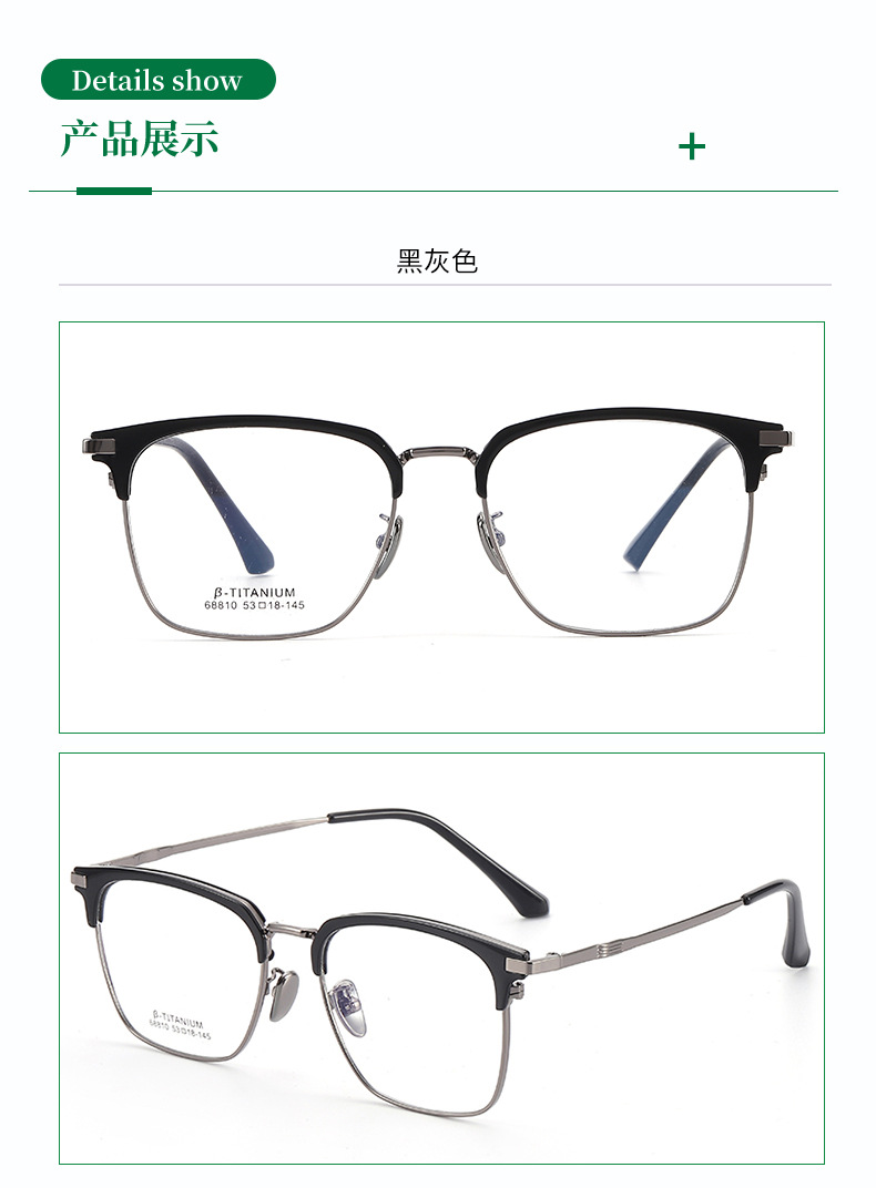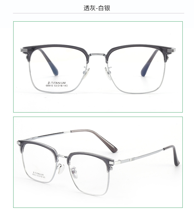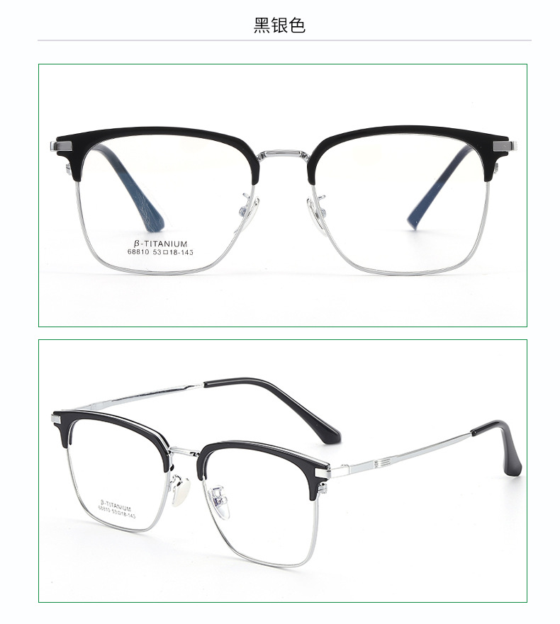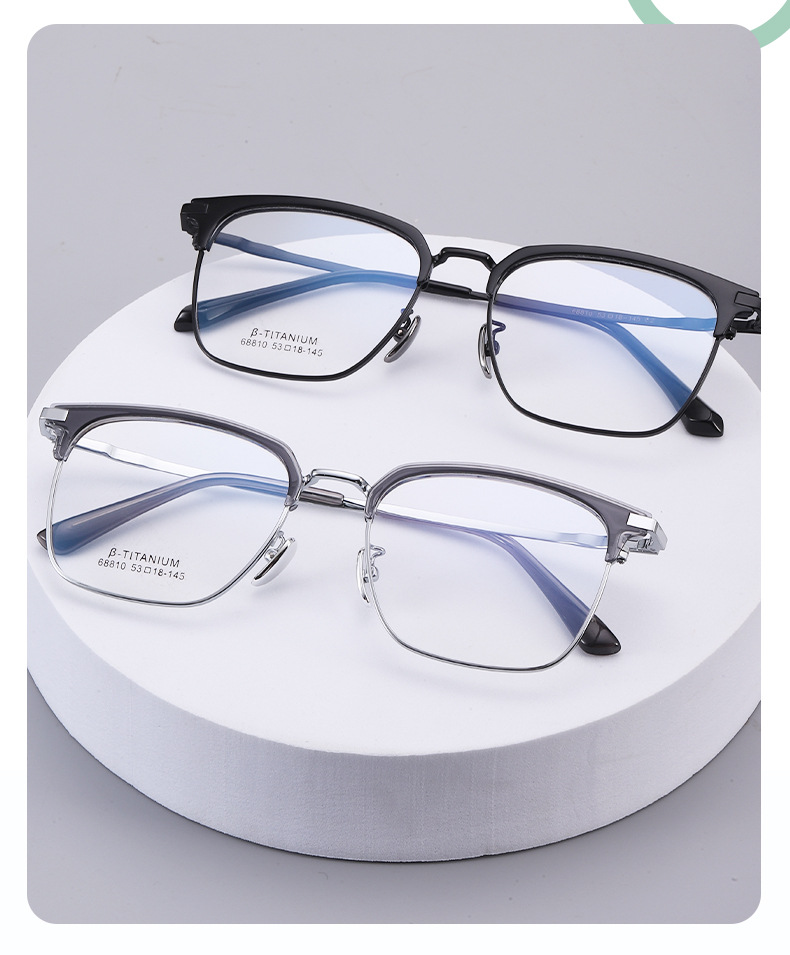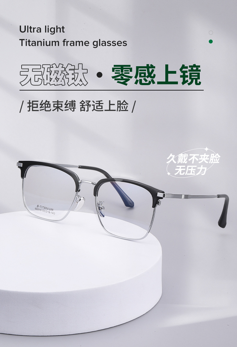 无磁钛合金镜架批发68810时尚眉线框复古平光镜男眉毛架眼镜框