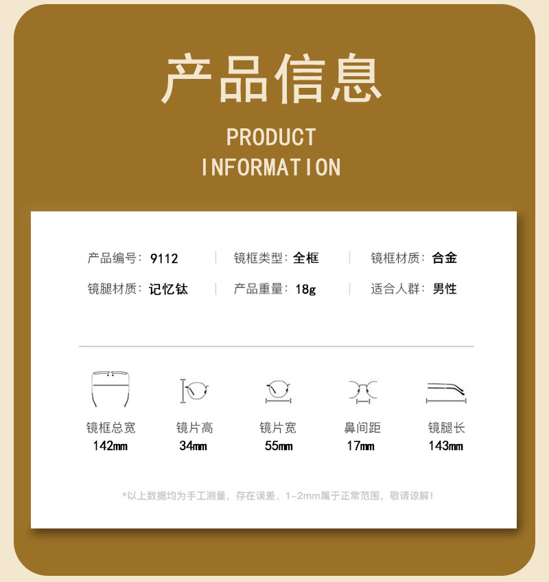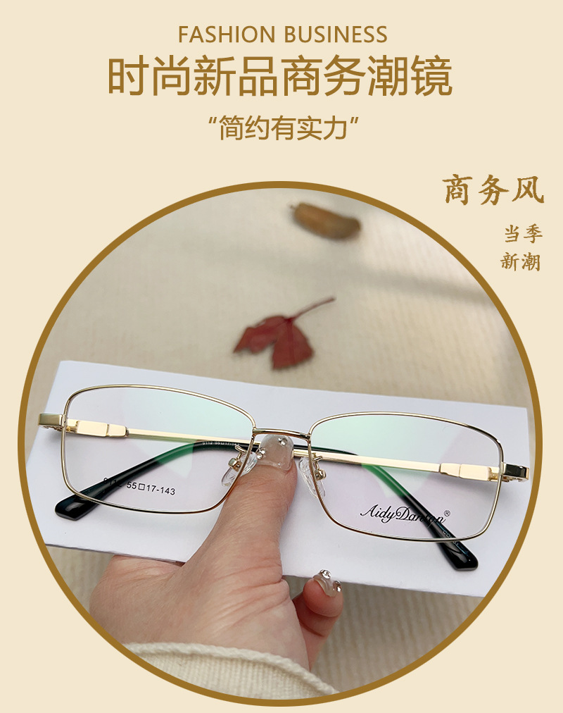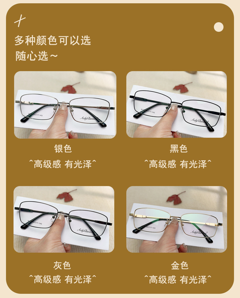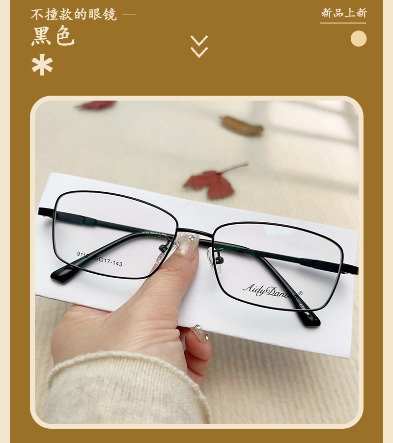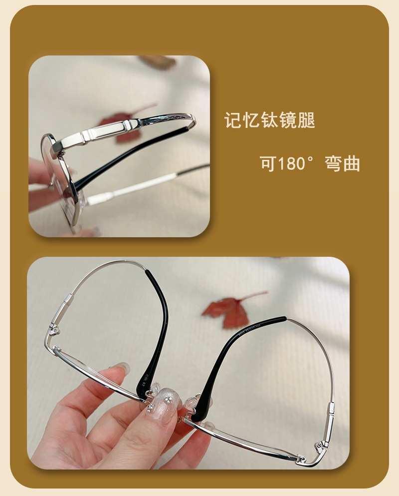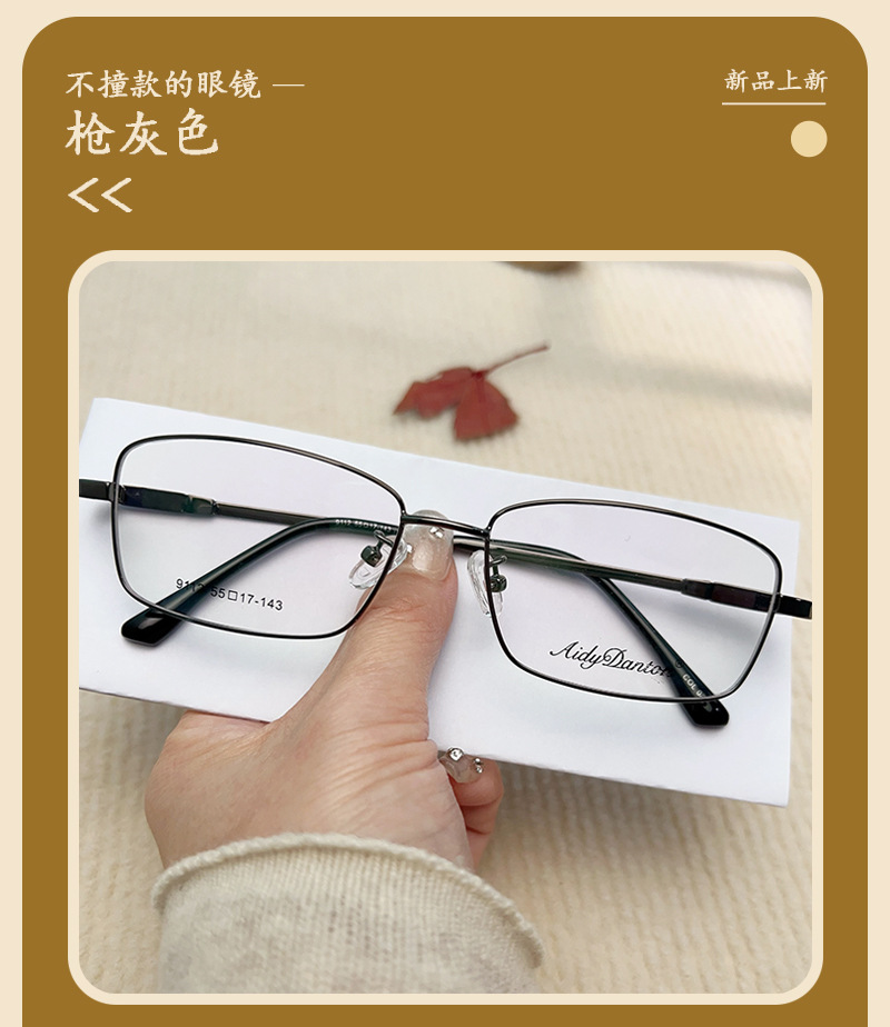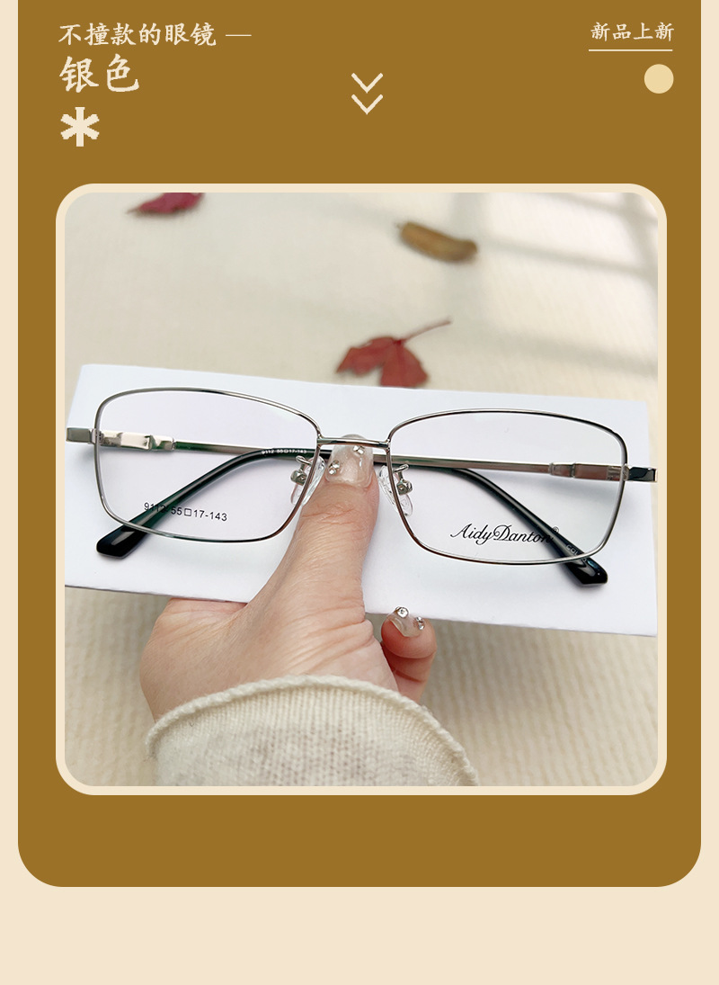 IP金属眼镜框宽边记忆架钛合金 9112镜腿可弯曲男士近视老花镜架