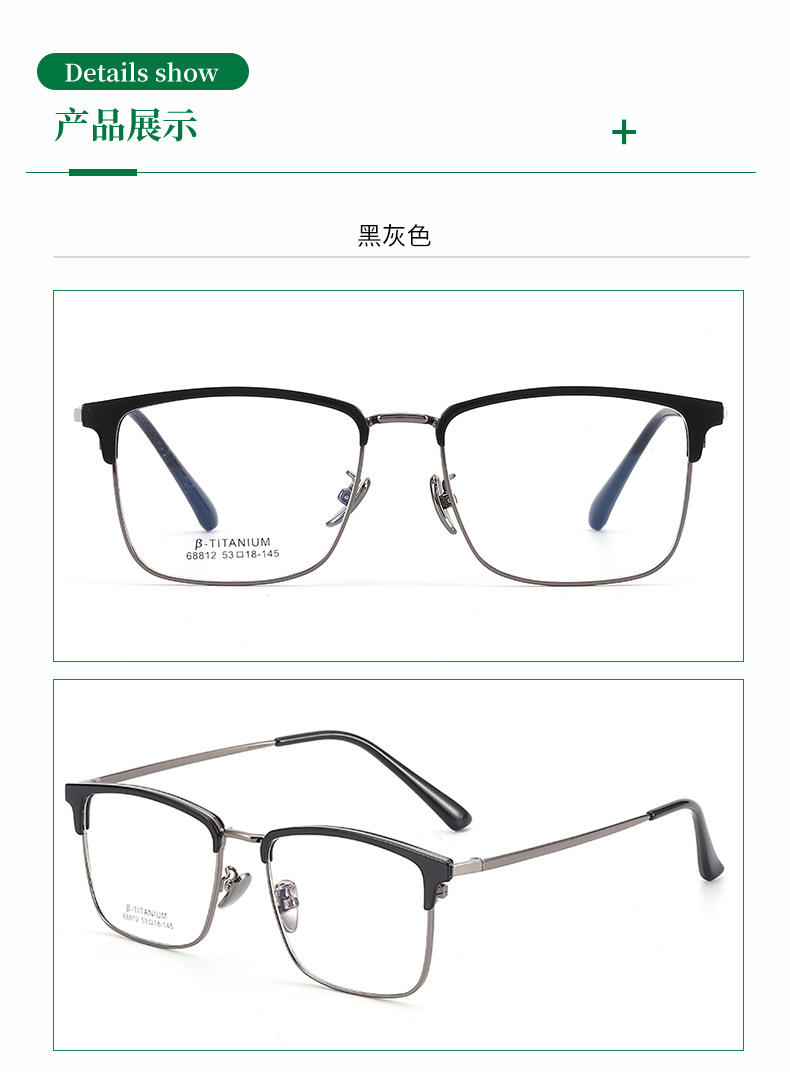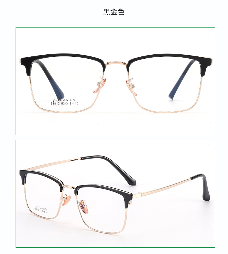 无磁钛眉毛眼镜架批发 68812时尚眉线框小红书潮男复古平光眼镜