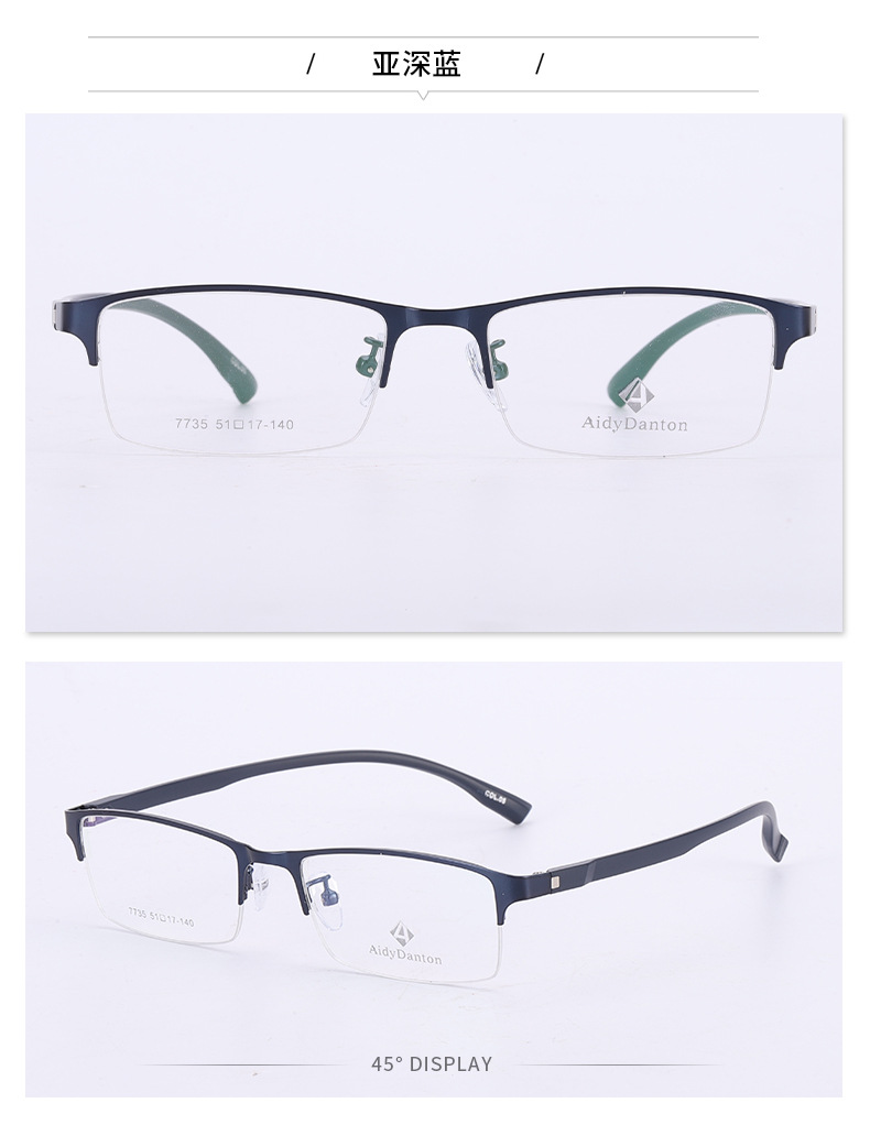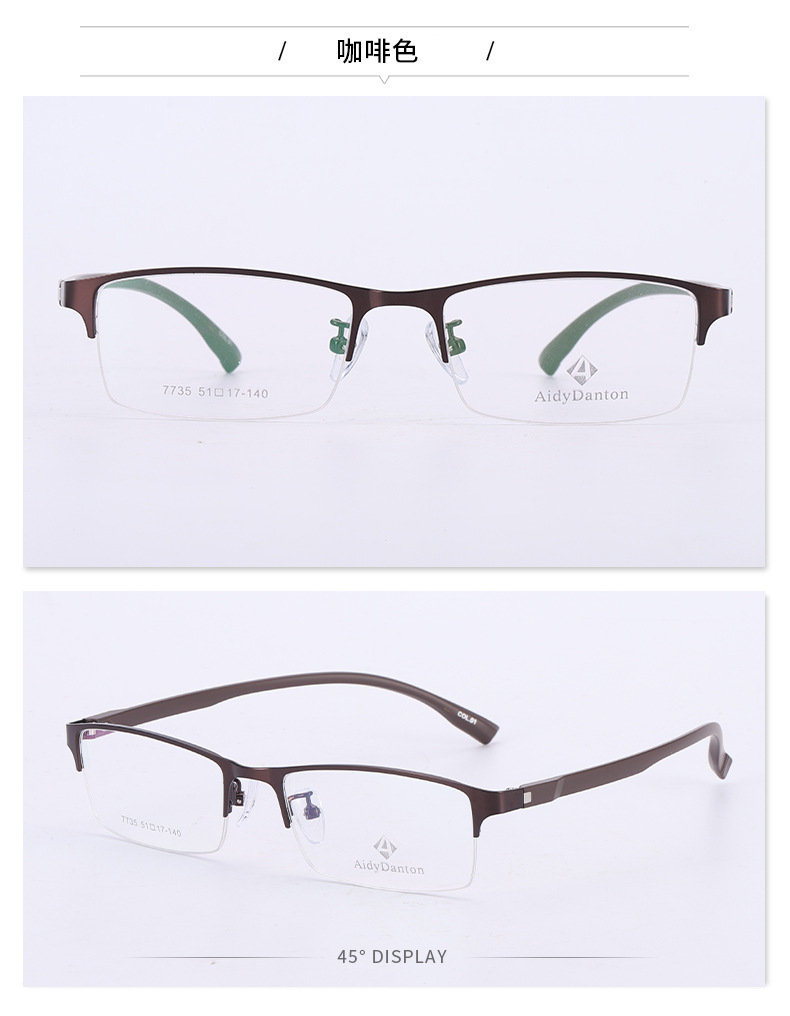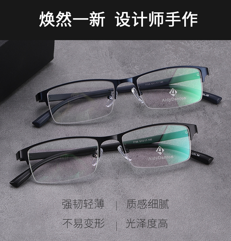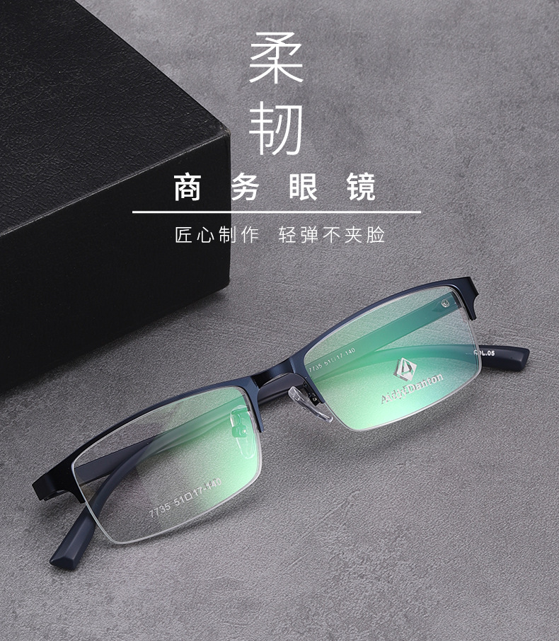 新款金属眼镜框7735半框钢板眉毛框 瘦脸男款塑钢腿近视镜框小框
