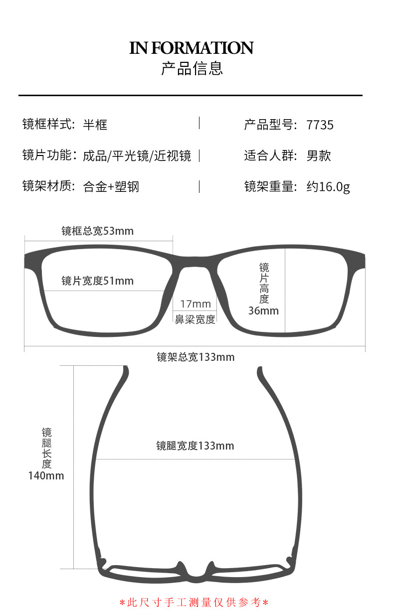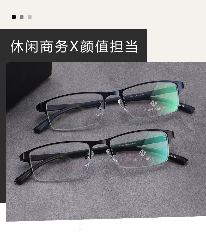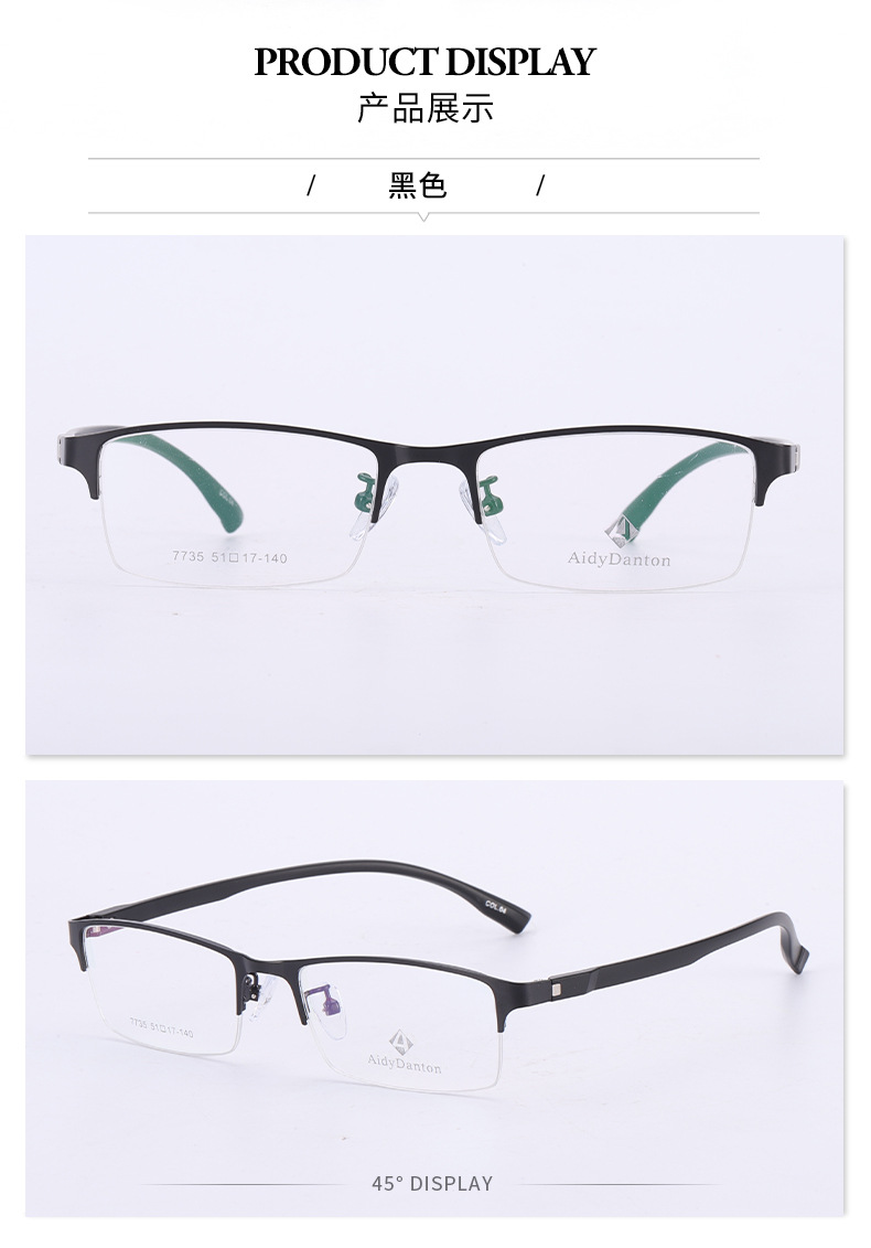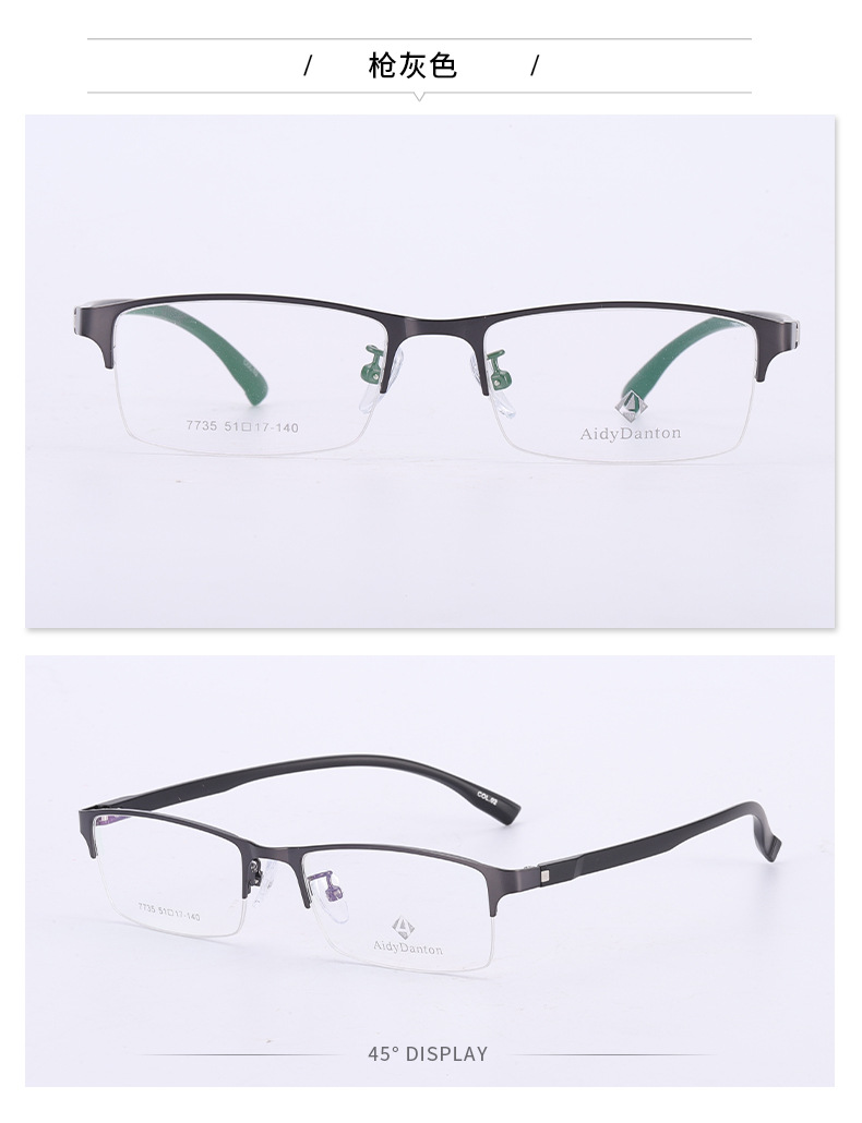 新款金属眼镜框7735半框钢板眉毛框 瘦脸男款塑钢腿近视镜框小框