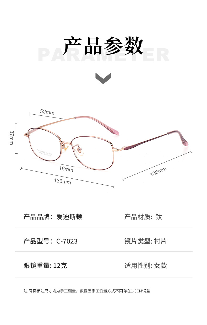 新款小红书超轻镜框全框光学眼镜架7023丹阳钛镜框近视眼镜框女