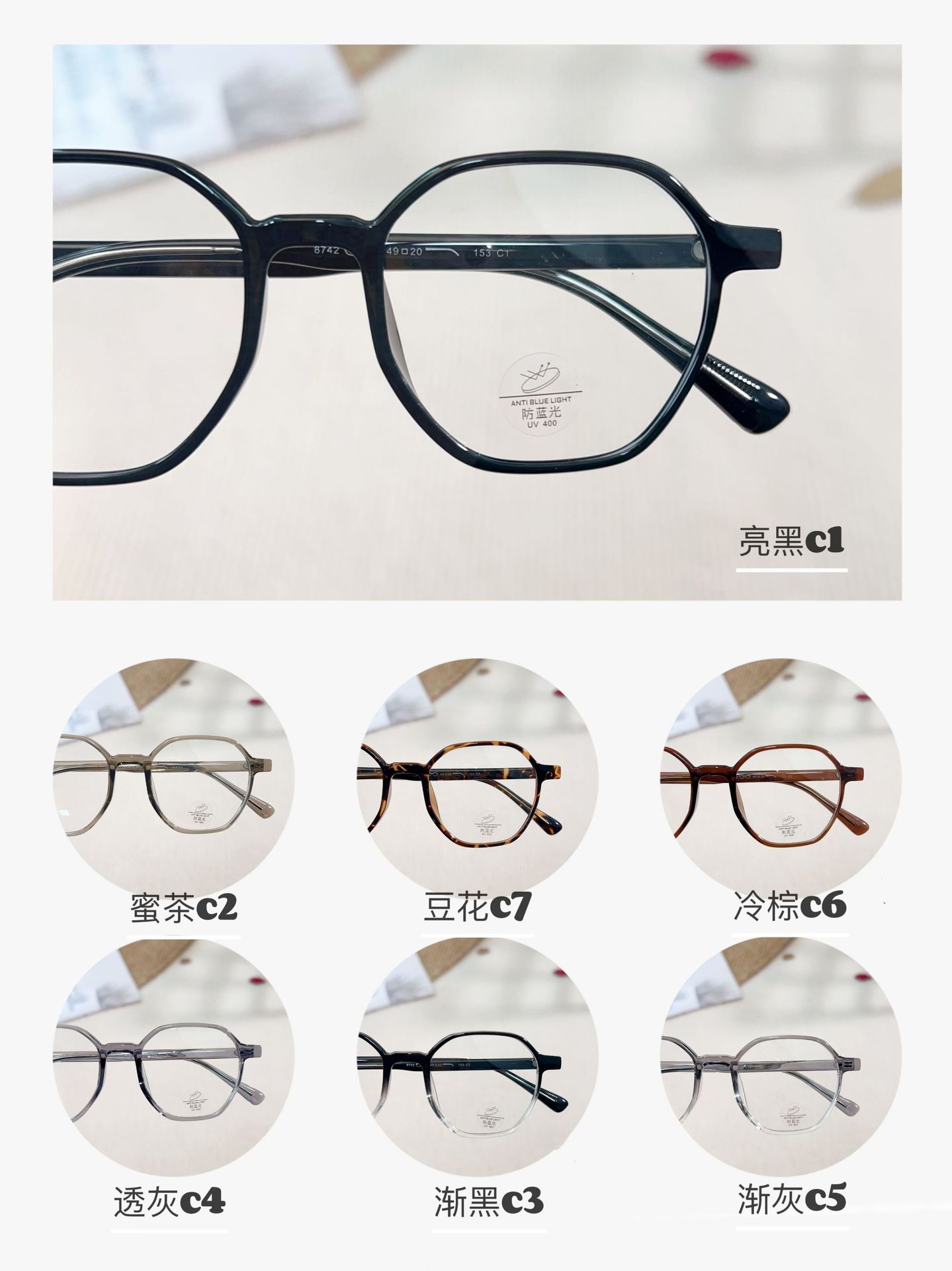 友顺学生潮款平光镜8742电脑护目镜多边形复古近视眼镜 tr90