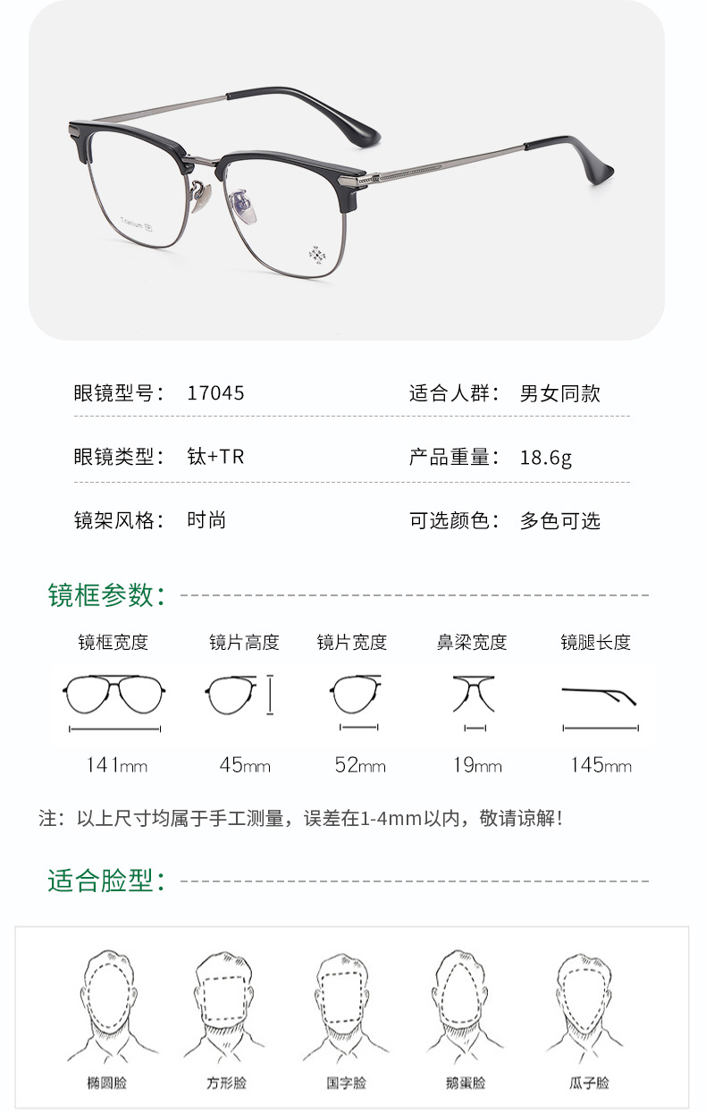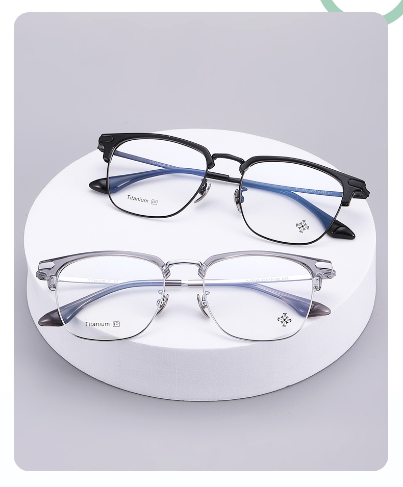 纯钛眉毛眼镜架 工厂批发17045时尚罗心小红书眉线框潮款平光眼镜