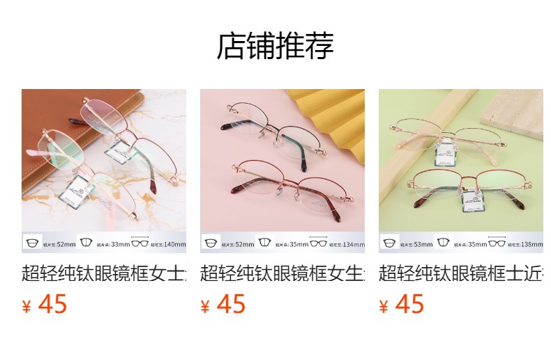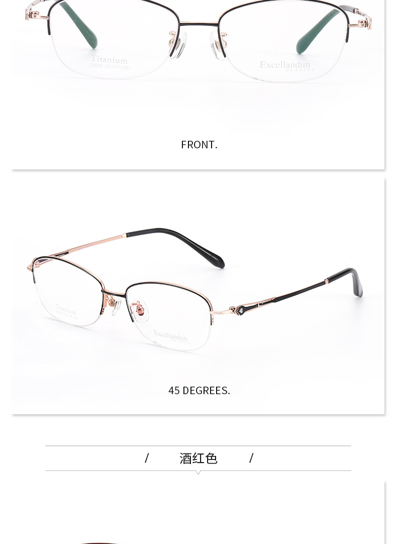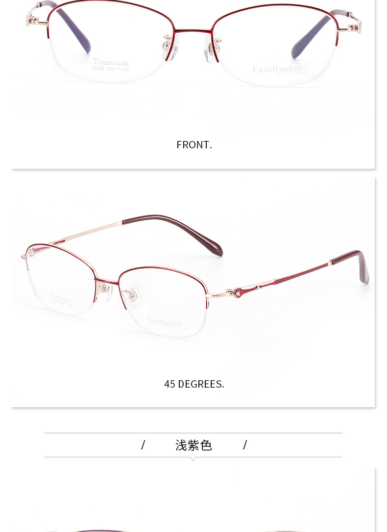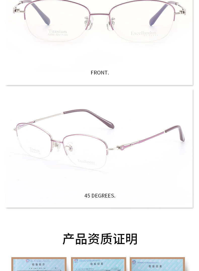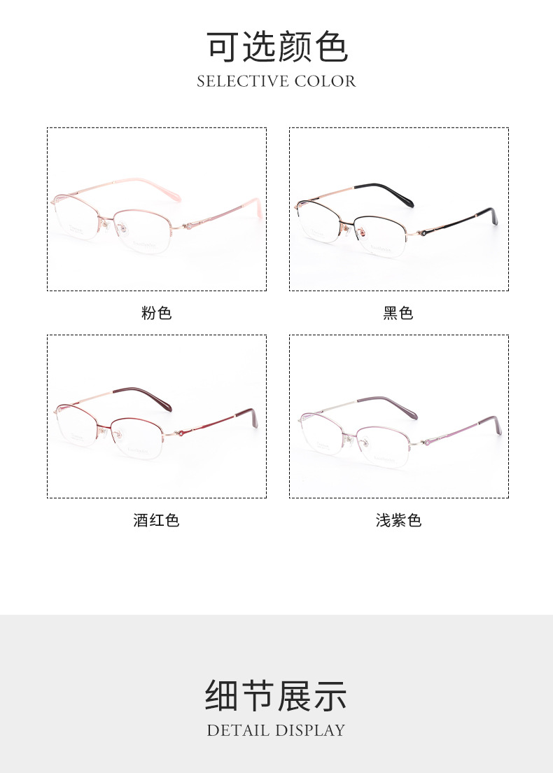 超轻纯钛眼镜框女士近视 时尚商务气质镜框62692正品半框B钛镜架