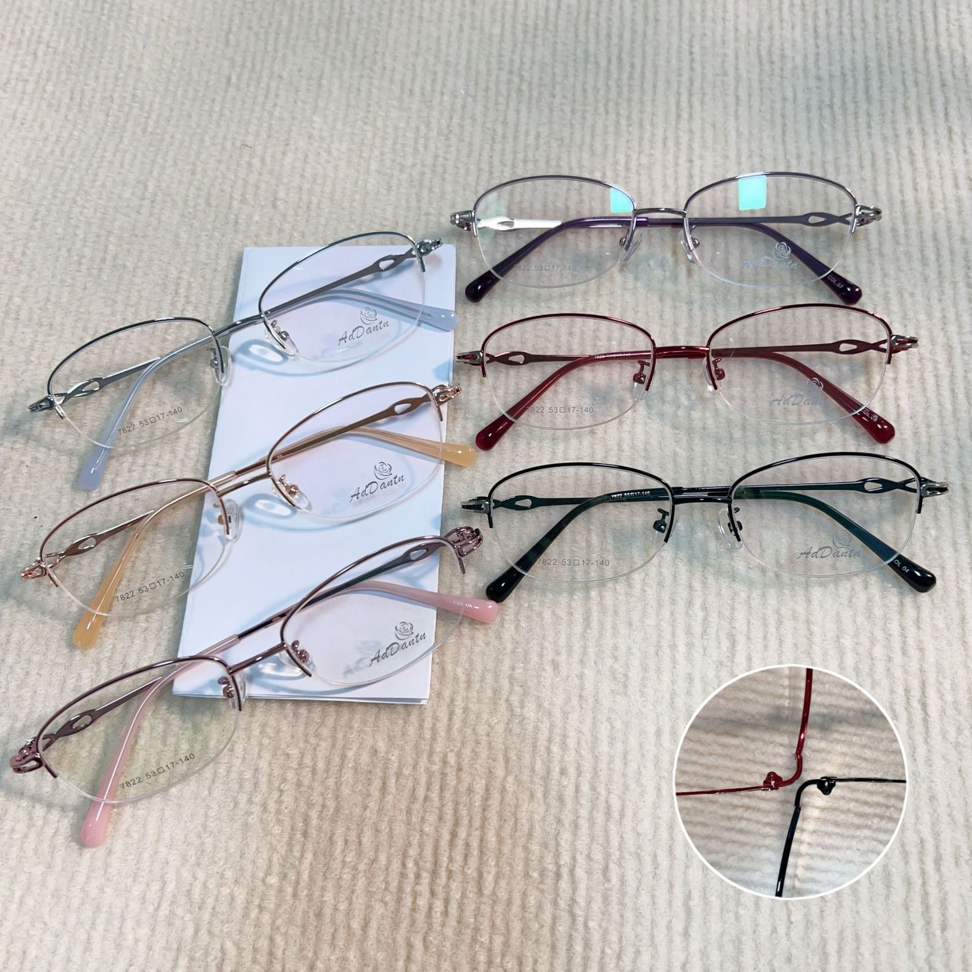 时尚双色新款眼镜近视7822丹阳厂家批发半框女士眼镜商务金属镜架