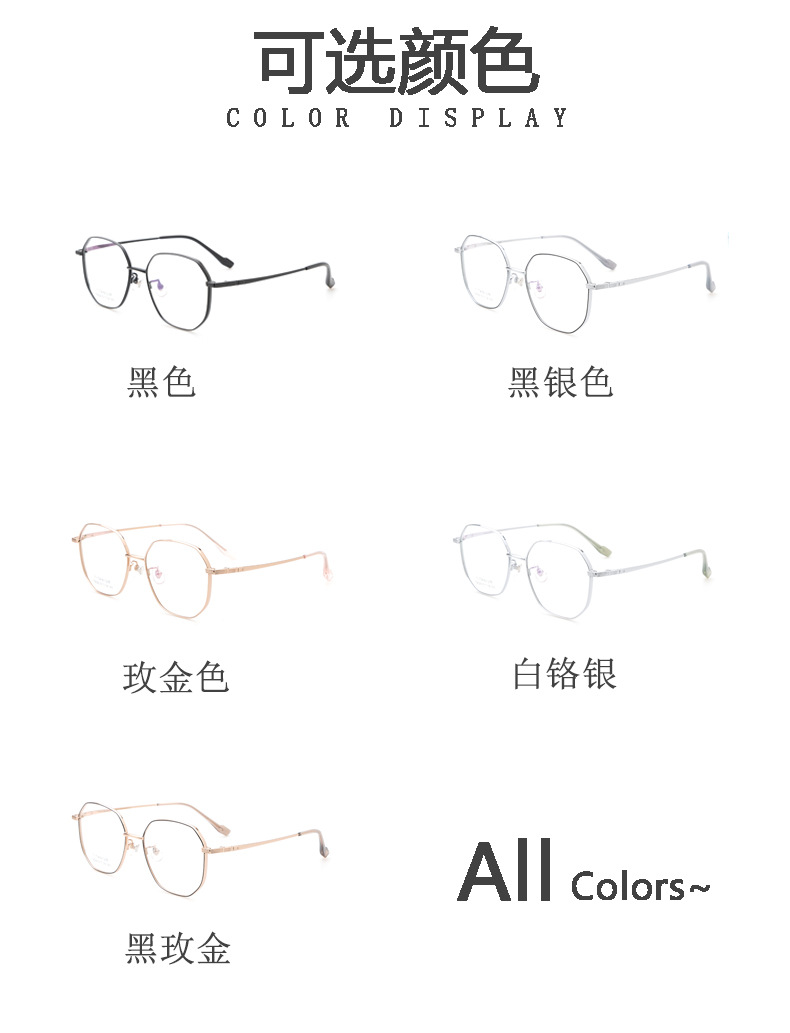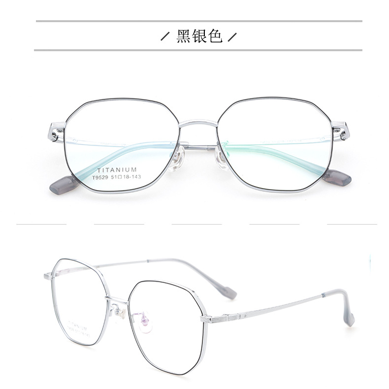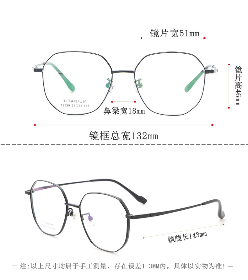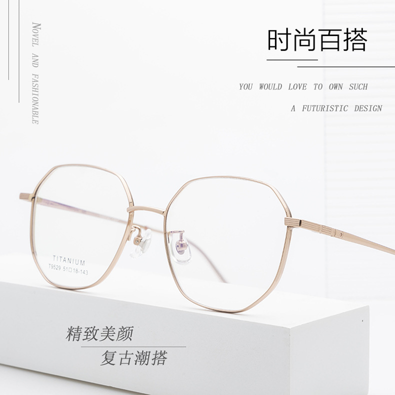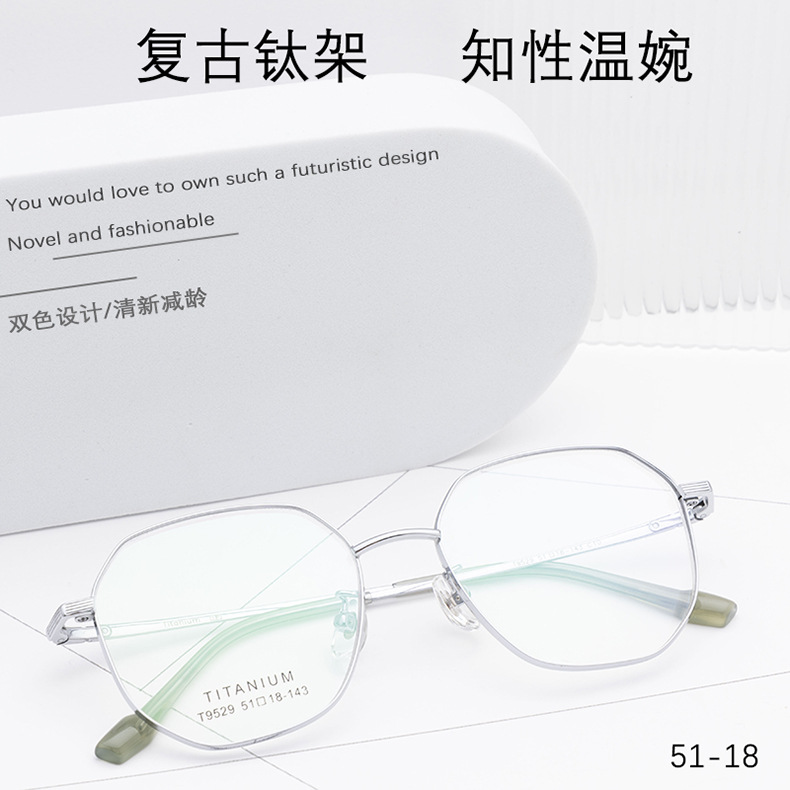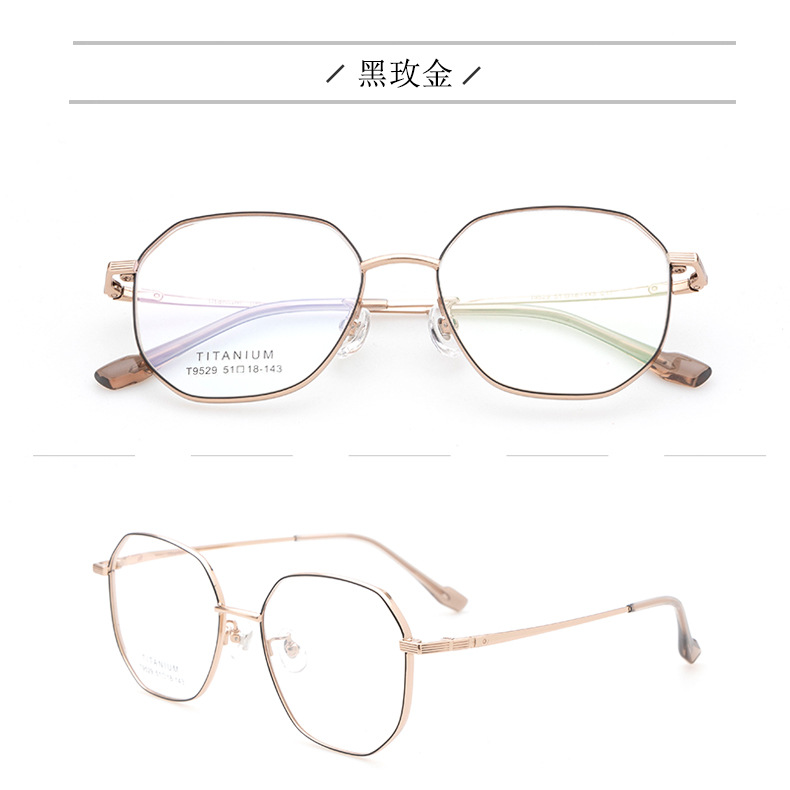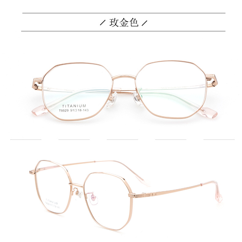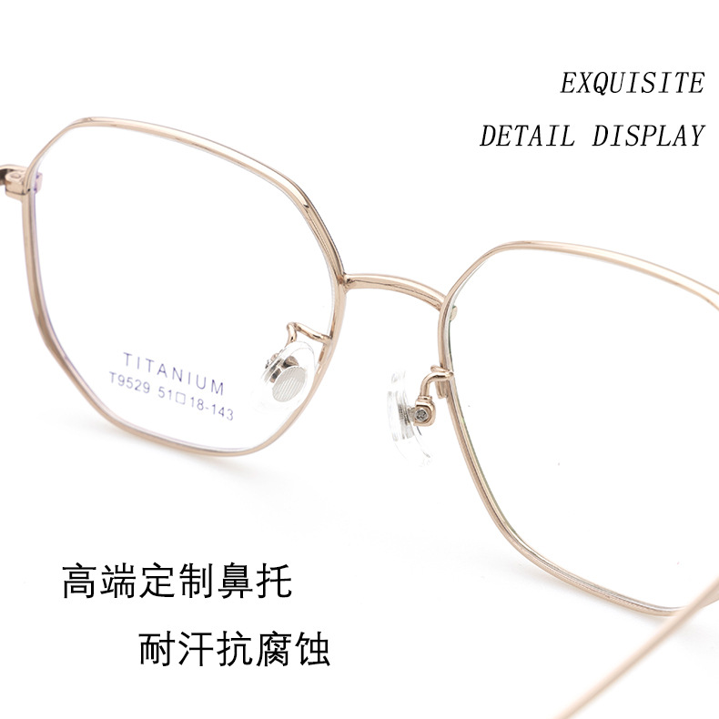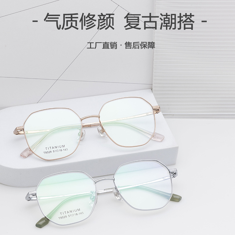 小红书种草复古眼镜 钛架多边形镜框9529 宽边开球配高度近视眼镜