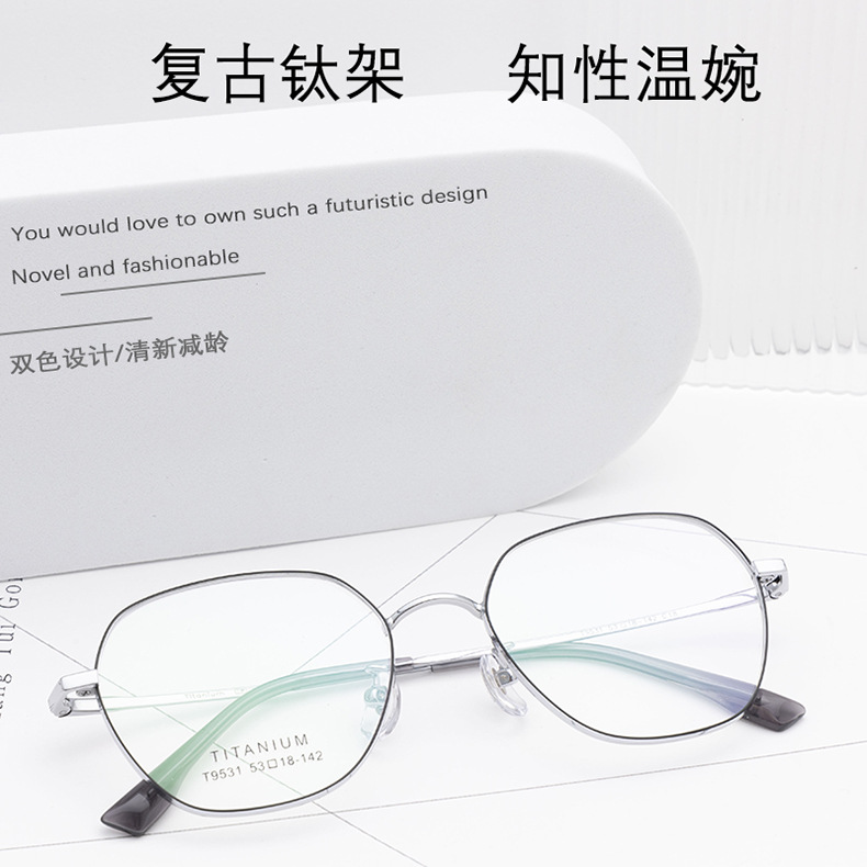 小红书种草复古眼镜女宽边配高度数丹阳近视眼镜男多边形纯钛镜框
